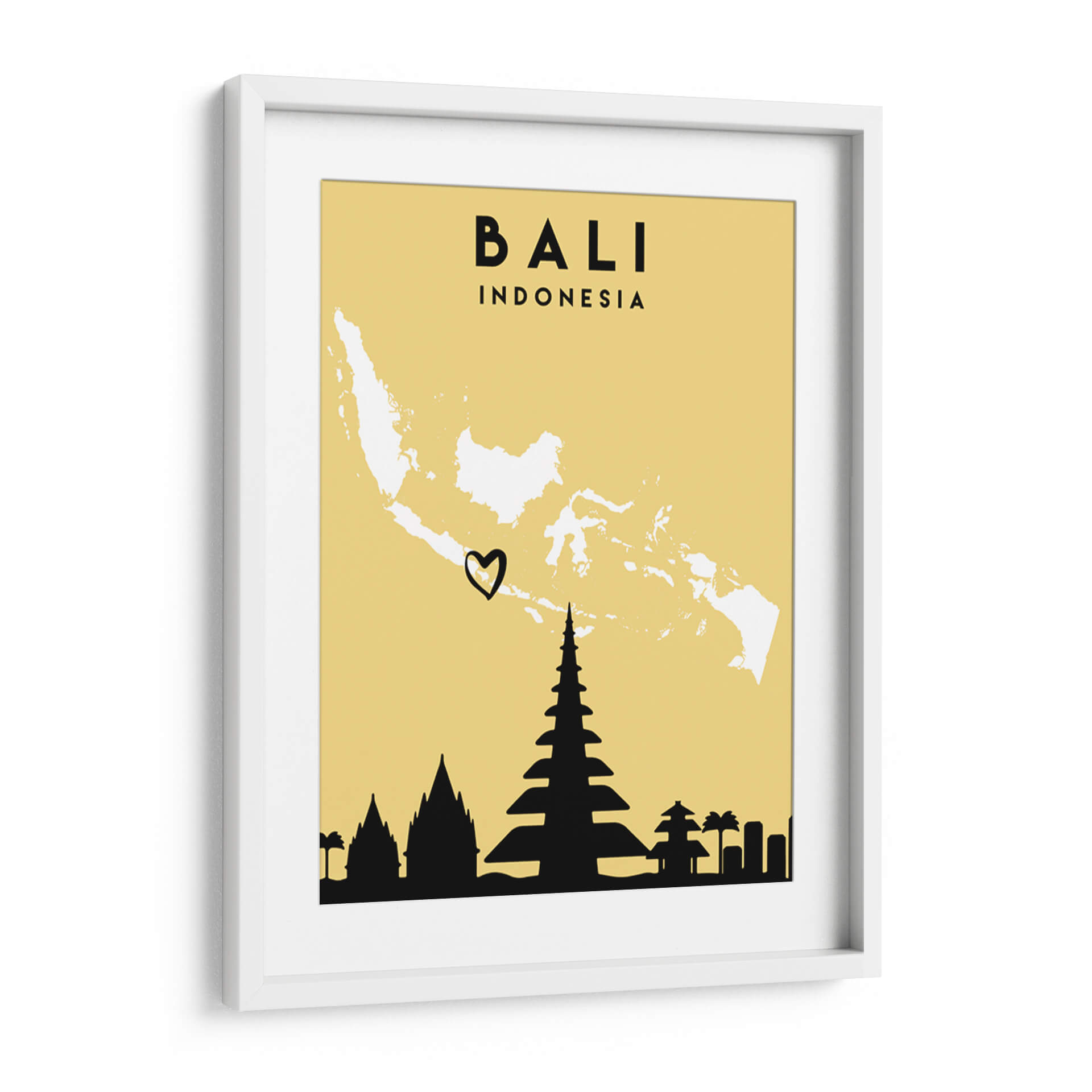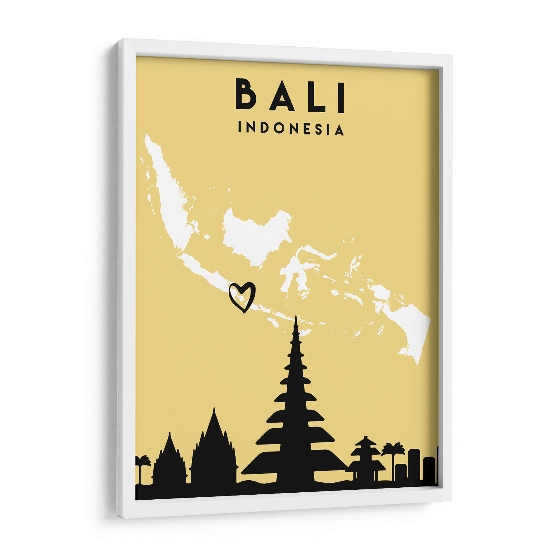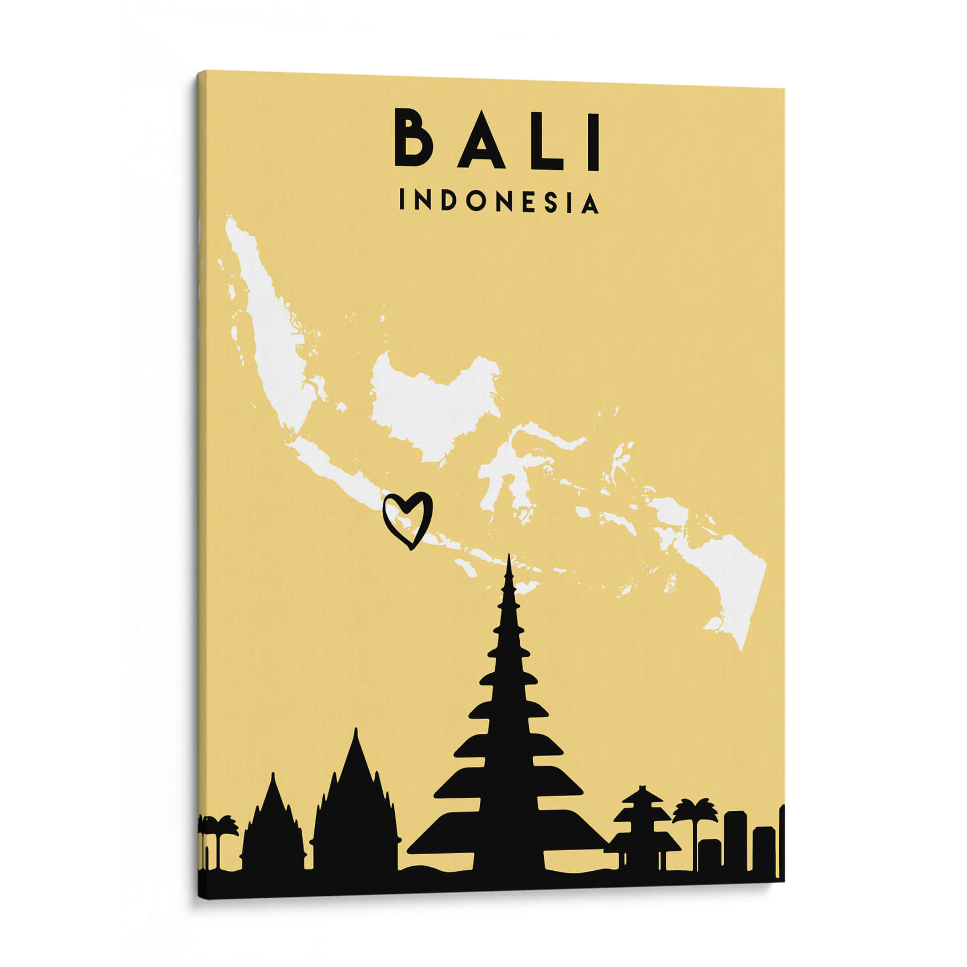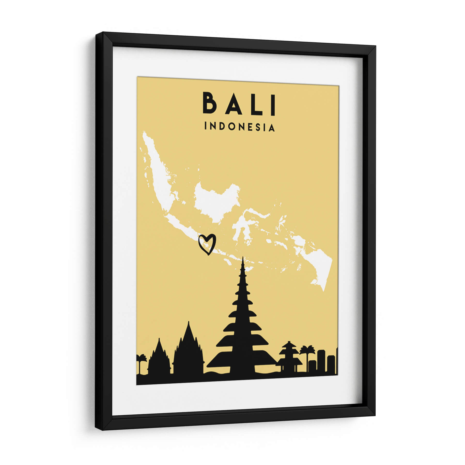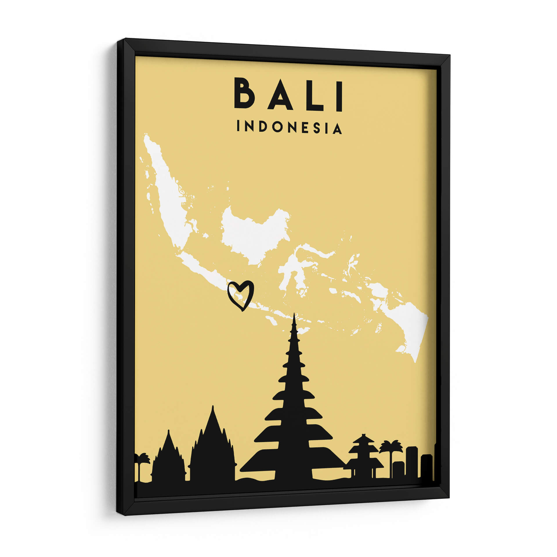 Este cautivador cuadro decorativo, "Bali - Mapas de amor de la ciudad 07" de Emiliano Deificus, te transporta directamente al corazón de Indonesia. La obra presenta un mapa estilizado de Indonesia en blanco sobre un vibrante fondo amarillo pálido, destacando la icónica isla de Bali con un delicado corazón negro. En la base, una silueta urbana en negro captura la esencia de la arquitectura balinesa y palmeras, creando un contraste audaz y moderno. Este diseño minimalista y gráfico es perfecto para añadir un toque de calidez y aventura a cualquier espacio, evocando la belleza exótica y el espíritu acogedor de Bali. Ideal para salas de estar, dormitorios o estudios que buscan un punto focal distintivo y lleno de personalidad. Integra la esencia de tus viajes o sueños de exploración en tu decoración con esta pieza única.