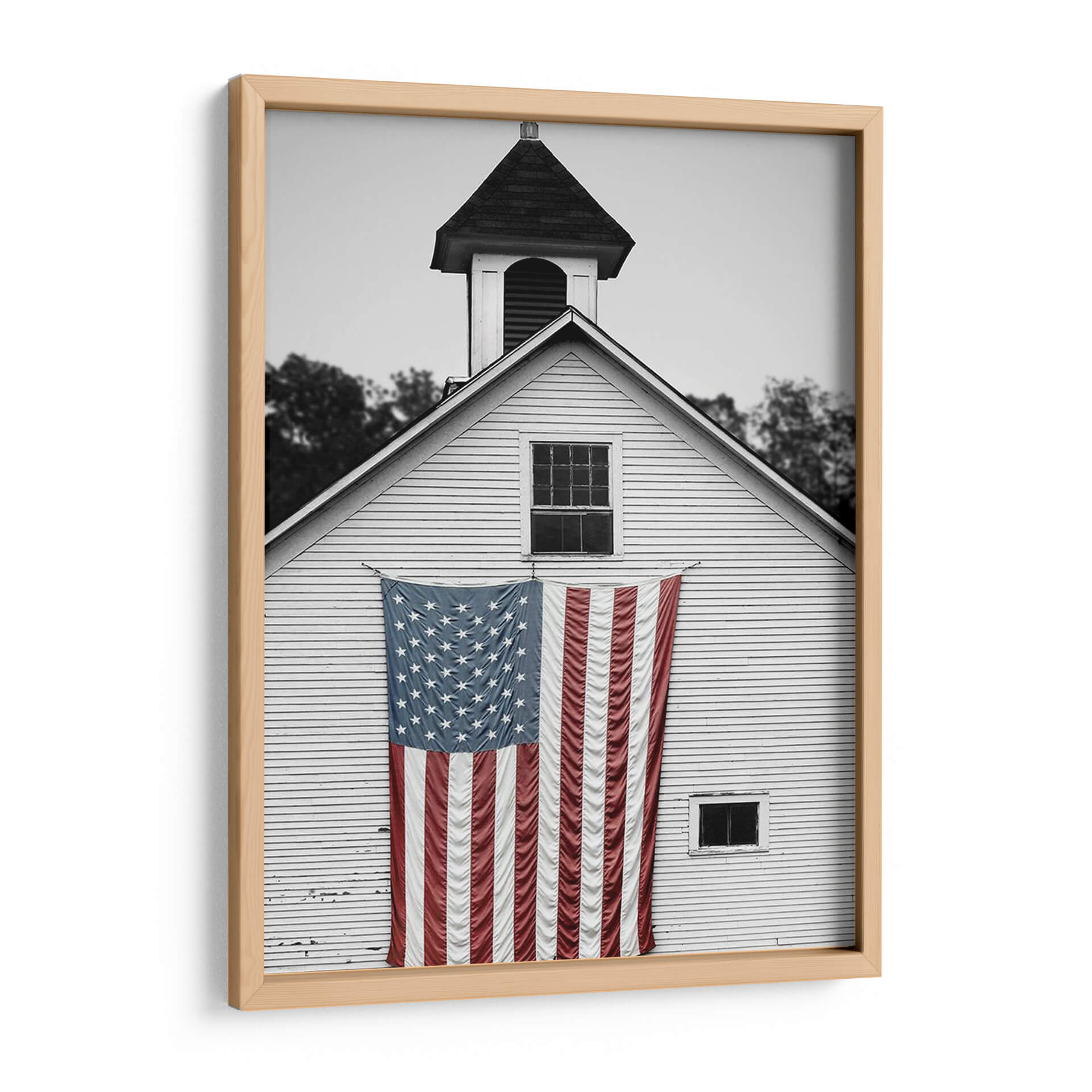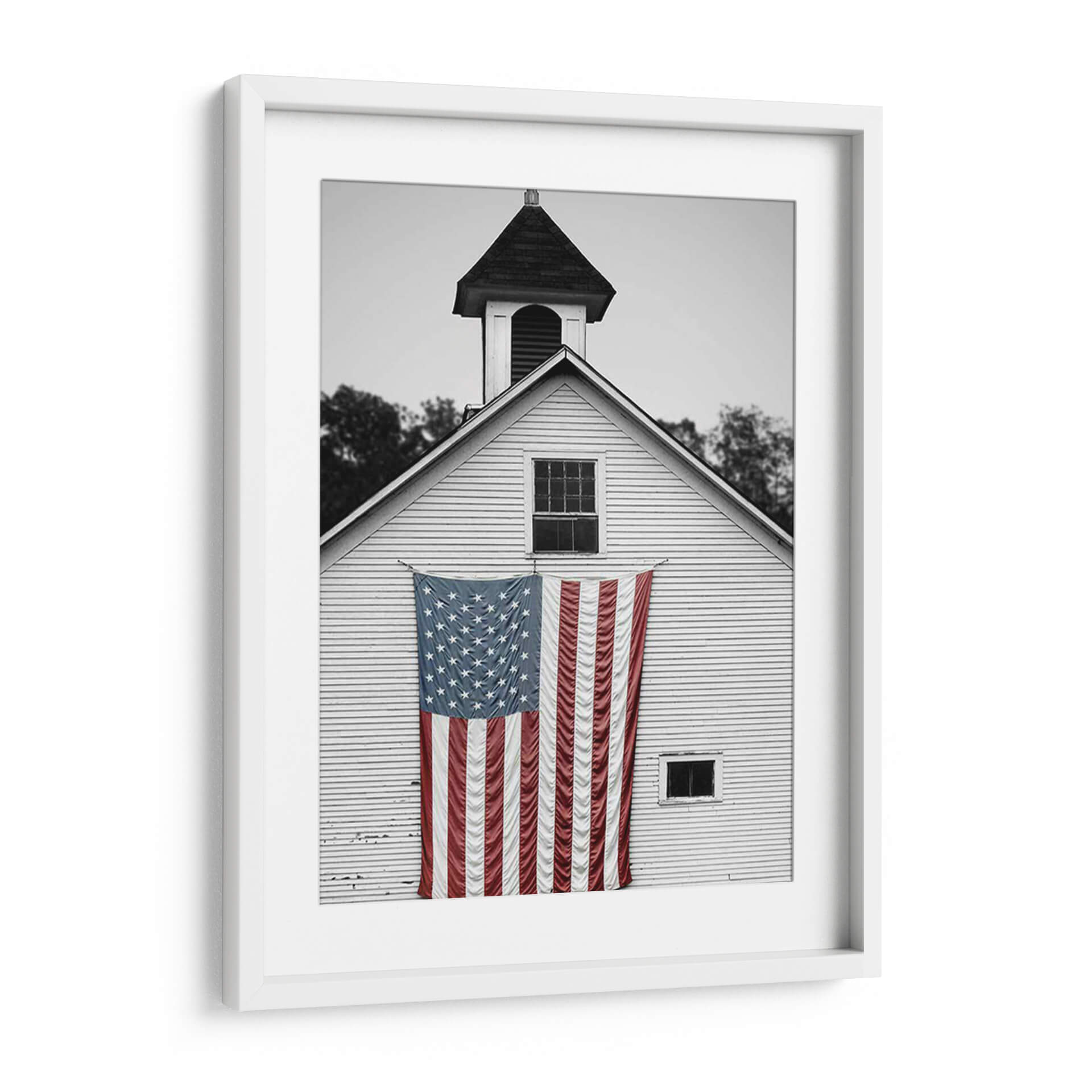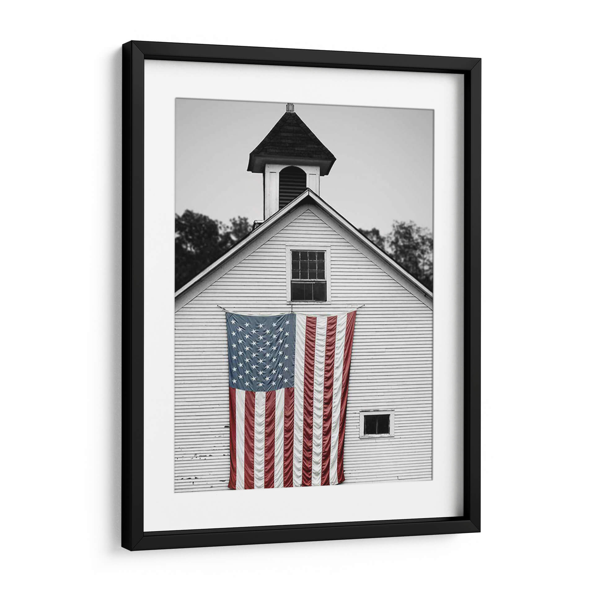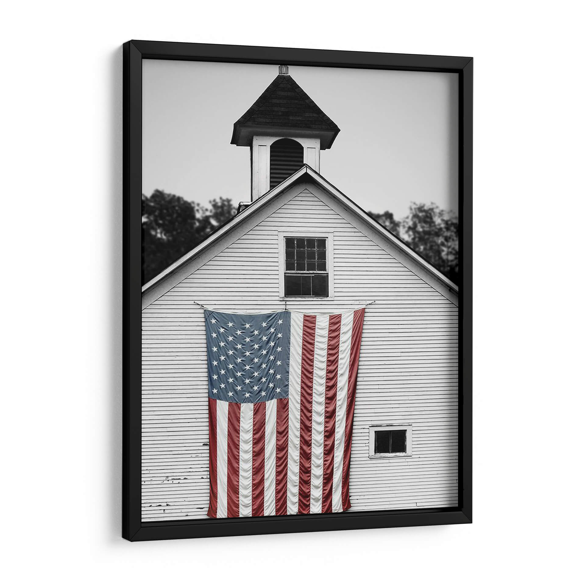 Capture la esencia del patriotismo y la historia con "Banderas De Nuestros Agricultores Xvii", una obra de arte fotográfica en blanco y negro que rinde homenaje al espíritu americano. La imagen presenta una icónica bandera de Estados Unidos colgando orgullosamente de la fachada de un granero blanco, con su arquitectura rústica y una pequeña torre de madera que evoca la nostalgia de tiempos pasados. La elección del blanco y negro resalta las texturas del siding de madera, las sutiles sombras y la forma en que la tela de la bandera se pliega, añadiendo profundidad y dramatismo a la composición. La bandera, con sus estrellas y franjas, se convierte en un símbolo potente de unidad y herencia, contrastando con la simplicidad y la solidez de la estructura que la alberga. Esta pieza es ideal para espacios que buscan una conexión con la identidad nacional, aportando un toque de carácter y conversación a salones, estudios u oficinas. Es una representación artística que habla de tradición, orgullo y la belleza perdurable de los símbolos patrios, perfecta para aquellos que aprecian la fotografía con una narrativa rica y emotiva.