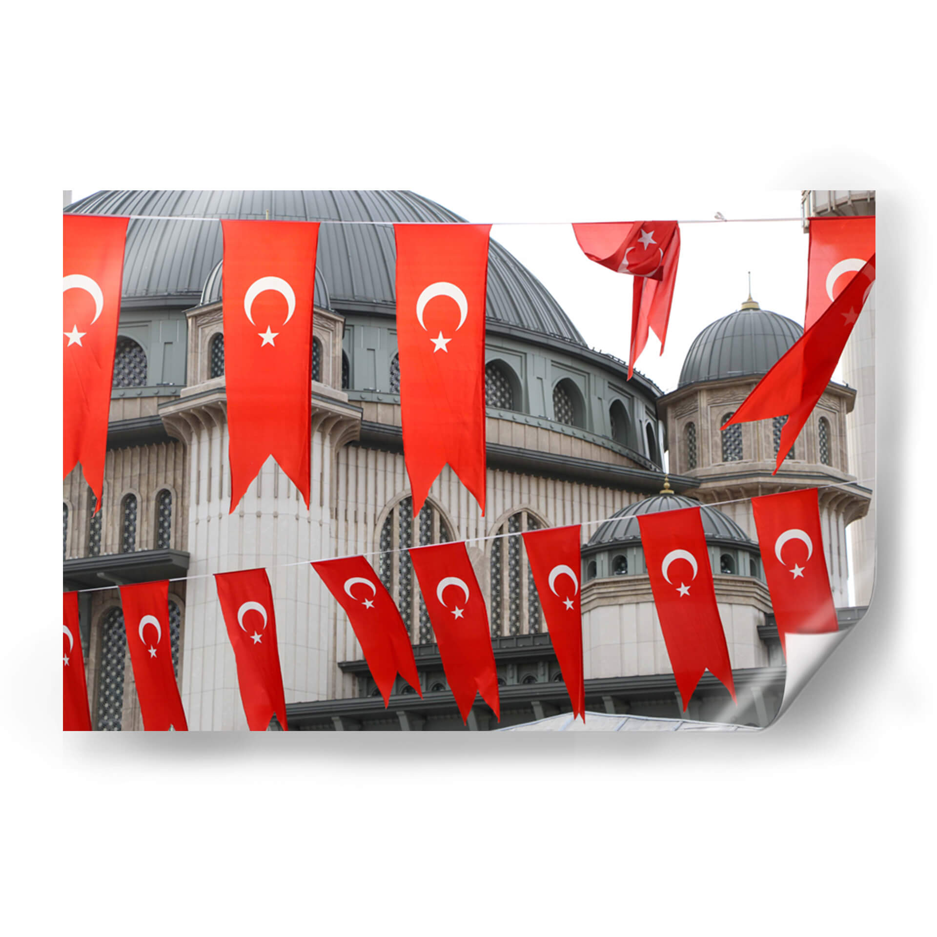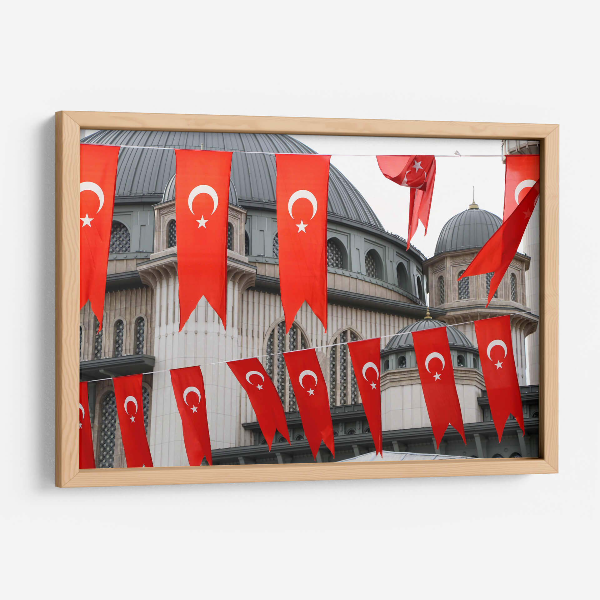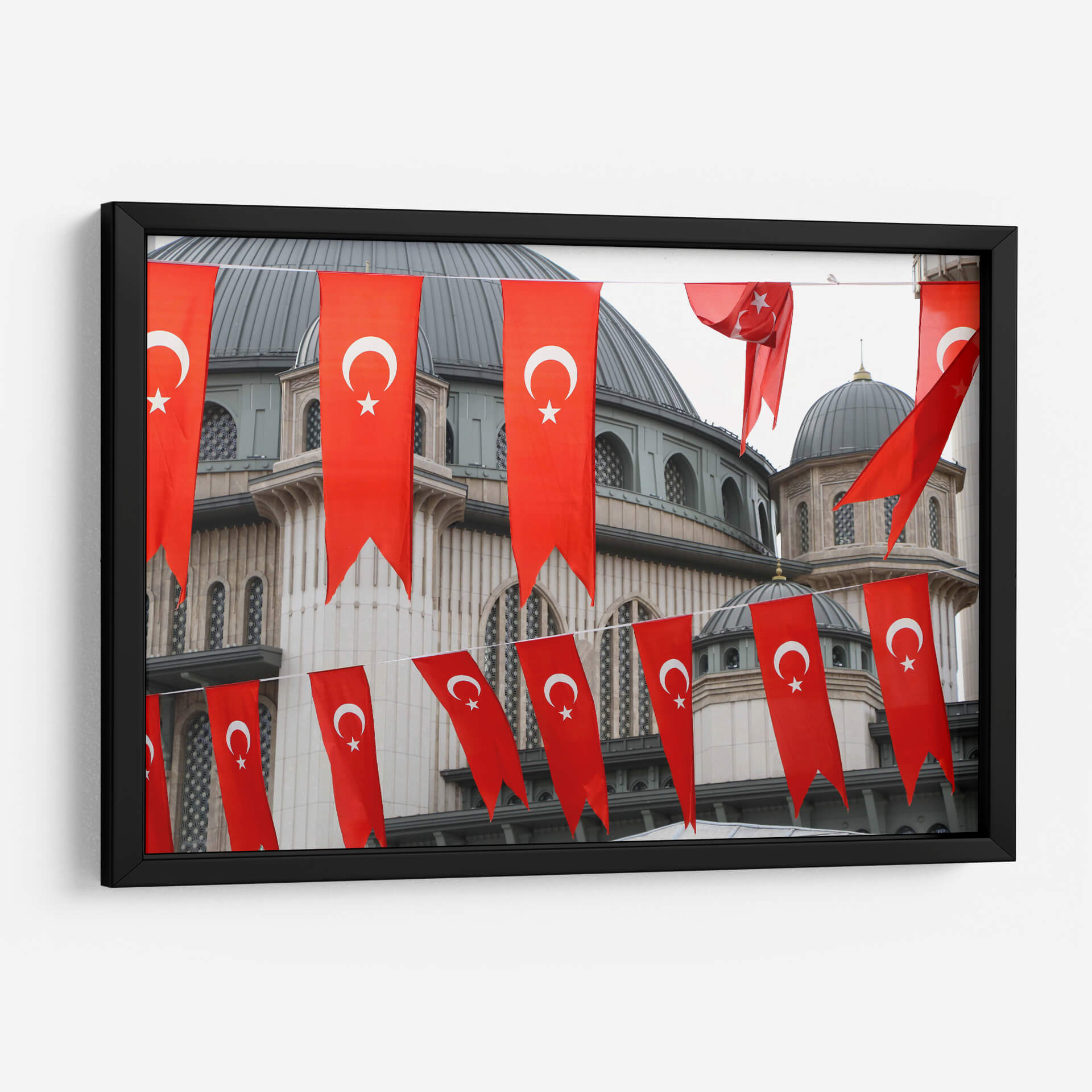 Captura la esencia vibrante de Turquía con este impresionante cuadro decorativo de las banderas otomanas ondeando con orgullo frente a la majestuosa arquitectura de Estambul. La obra presenta una composición dinámica donde las icónicas banderas rojas con la luna creciente y la estrella blanca se entrelazan con las cúpulas y minaretes de un imponente edificio religioso, evocando una atmósfera de orgullo nacional y herencia cultural. Los colores intensos del rojo de las banderas contrastan sutilmente con los tonos neutros y grises de la arquitectura, creando un punto focal cautivador. Este cuadro es ideal para añadir un toque de historia y carácter a tu hogar u oficina, transportándote a las bulliciosas calles de Estambul. Su estilo realista y la cuidada composición lo convierten en una pieza versátil, perfecta para salas de estar, comedores o espacios que busquen una conexión con la cultura turca y su rica historia. Inspírate con esta vista emblemática y llena tus espacios con la energía y el espíritu de Turquía.