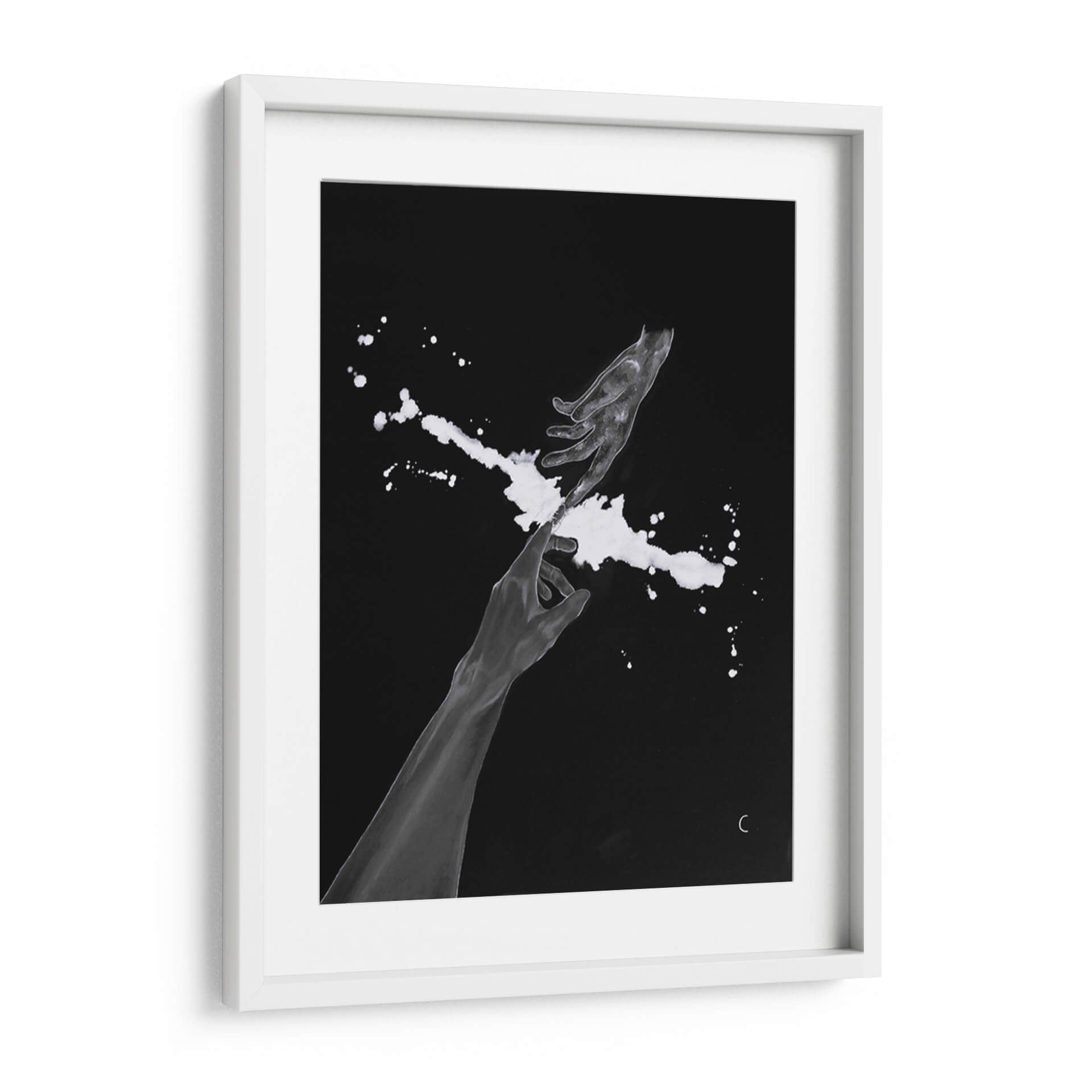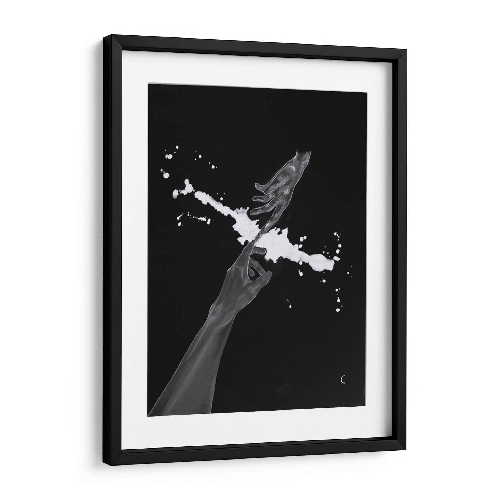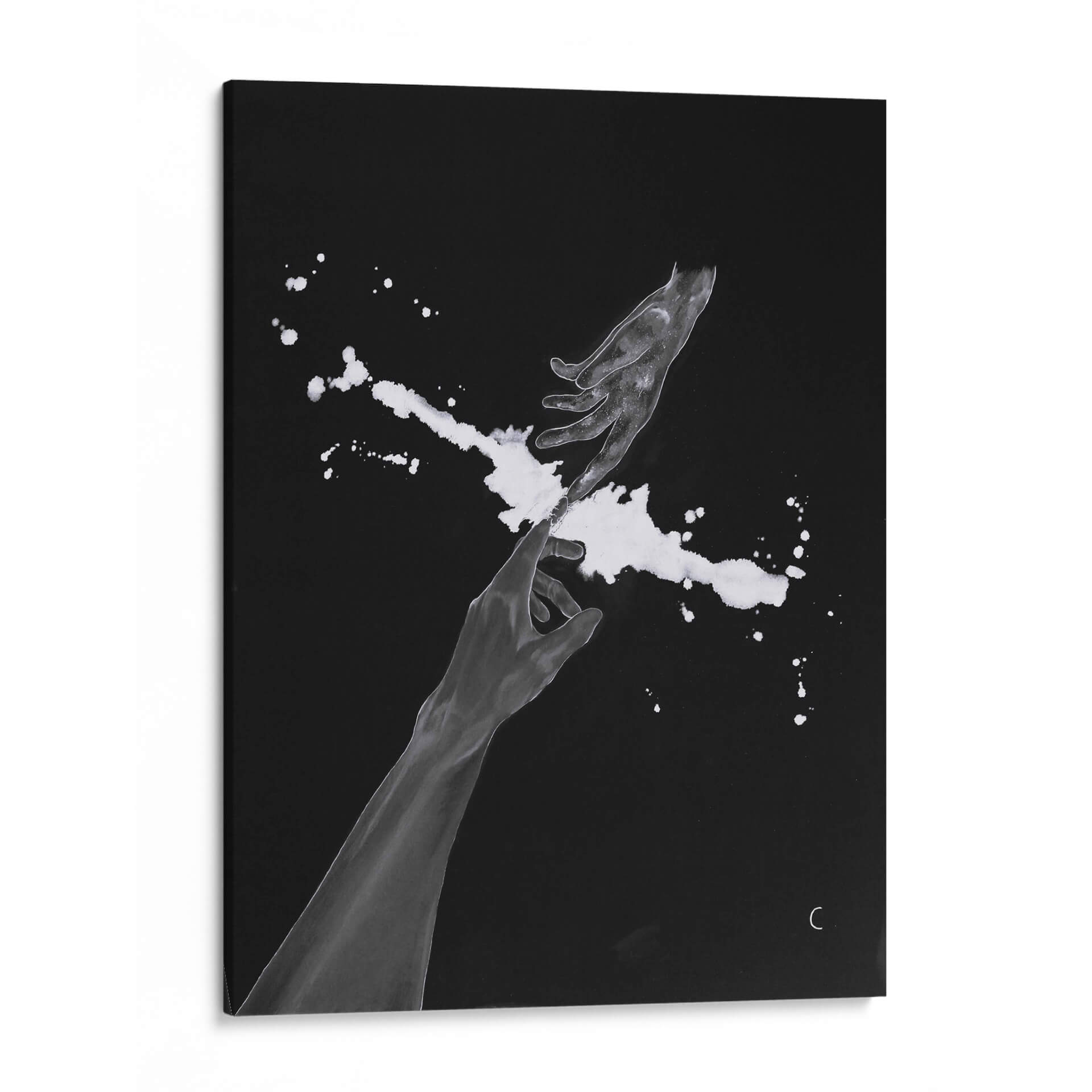 Sumérgete en la emotividad del cuadro decorativo "Bang" de Christian Morales, una obra que captura la esencia de la conexión y el instante efímero. Esta pieza se distingue por su dramático contraste entre el negro profundo del fondo y las figuras etéreas de dos manos que se extienden, a punto de tocarse. Las salpicaduras de pintura blanca añaden un dinamismo inesperado, sugiriendo el estallido de una idea, una emoción o un momento crucial. La composición minimalista, centrada en la delicadeza de los gestos y la tensión del espacio intermedio, evoca sentimientos de anhelo, posibilidad y la belleza de lo inalcanzable. Ideal para espacios que buscan un toque de sofisticación y misterio, como salones modernos, estudios de diseño o dormitorios serenos. "Bang" no es solo una obra de arte, sino una invitación a la reflexión sobre las conexiones humanas y los momentos decisivos de la vida, convirtiéndose en un punto focal cautivador en cualquier decoración.