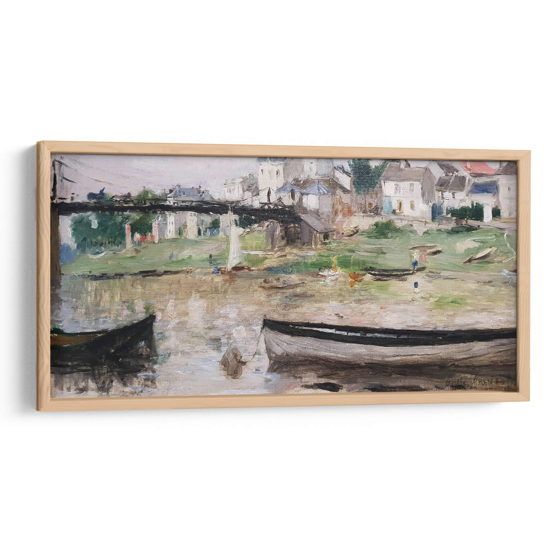 Sumérgete en la serenidad del Sena con "Barcas sobre el Sena" de Berthe Morisot. Esta obra maestra impresionista captura la atmósfera tranquila de un río pintoresco, con barcas meciéndose suavemente y una orilla salpicada de arquitectura encantadora y vegetación exuberante. La paleta de colores, dominada por tonos suaves de azul, verde y ocre, evoca una sensación de paz y contemplación. Los trazos de pincel visibles y la luz natural reflejada en el agua son característicos del estilo de Morisot, invitando al espectador a experimentar la escena con una intimidad palpable. "Barcas sobre el Sena" es ideal para infundir calma y sofisticación en cualquier espacio, desde una sala de estar acogedora hasta un estudio tranquilo. Añade un toque de arte clásico francés a tu decoración y transforma tu hogar en una galería personal. Perfecta para amantes del arte impresionista y paisajes fluviales, esta pieza resonará con quienes buscan belleza y serenidad en su entorno.