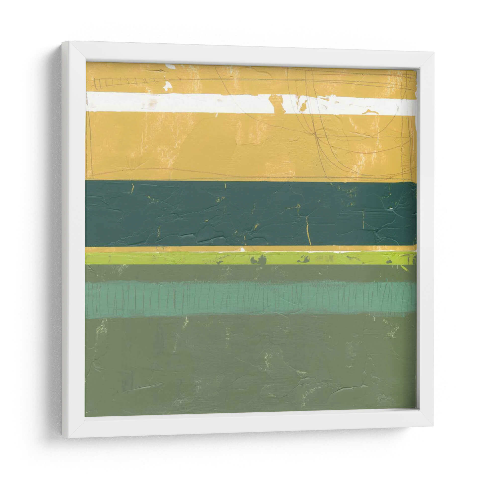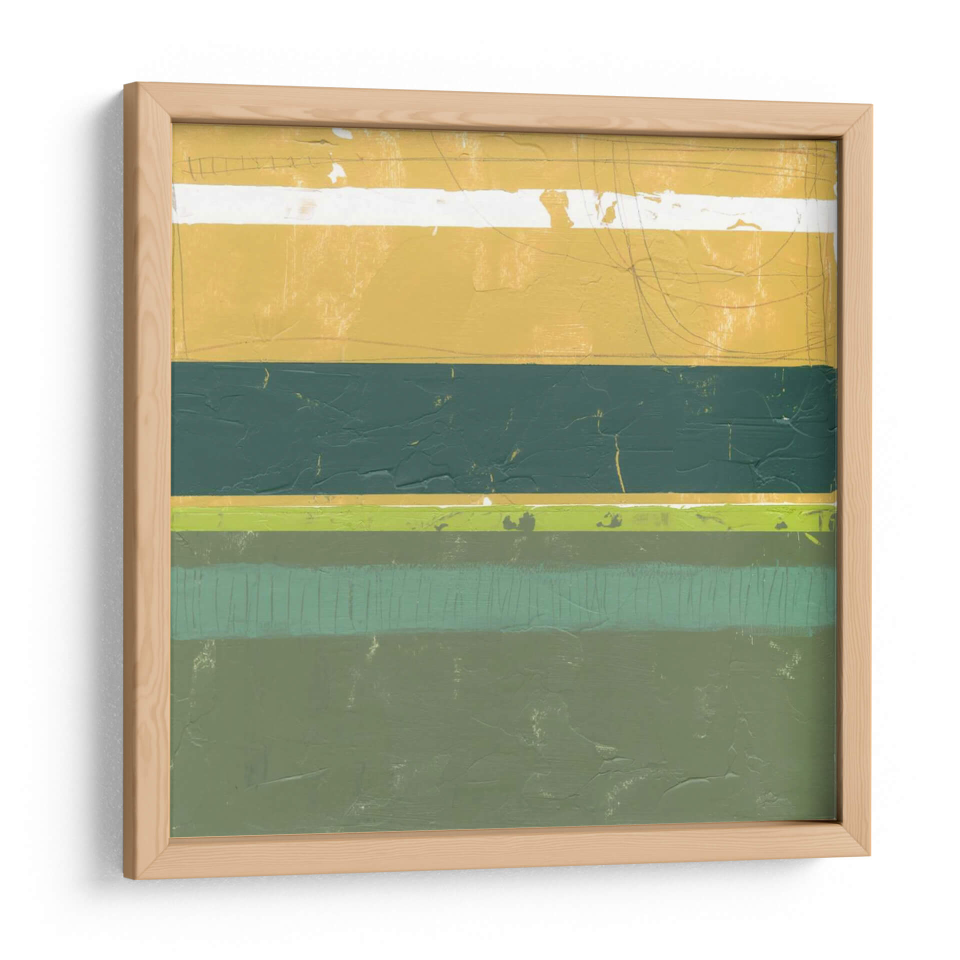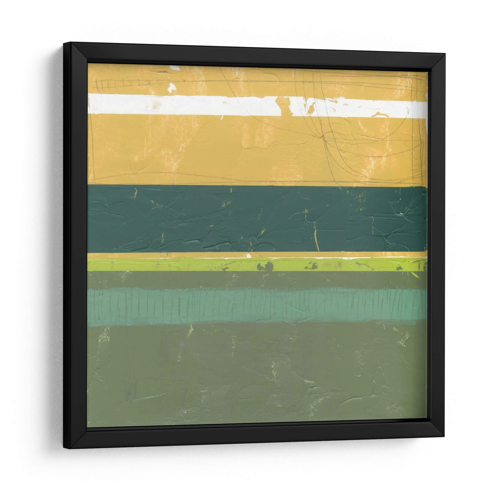 Sumérgete en la serenidad y la profundidad de "Barranco III", una cautivadora obra de arte abstracto de Jennifer Goldberger. Este cuadro decorativo presenta una composición audaz de líneas horizontales en una rica paleta de colores que evoca la tierra y la naturaleza. Las texturas visuales, con sus sutiles imperfecciones y el uso de trazos que sugieren movimiento, invitan a la contemplación. Los tonos verdes profundos y los ocres cálidos se entrelazan con acentos de blanco y lima, creando un equilibrio visual armonioso y moderno. "Barranco III" es perfecto para infundir calma y sofisticación en cualquier espacio, ya sea una sala de estar, un estudio o una oficina. Su diseño abstracto y contemporáneo lo convierte en un punto focal ideal para interiores que buscan un toque de arte con carácter y una conexión sutil con el paisaje natural. Añade esta pieza única a tu colección y transforma tu hogar en una galería personal.