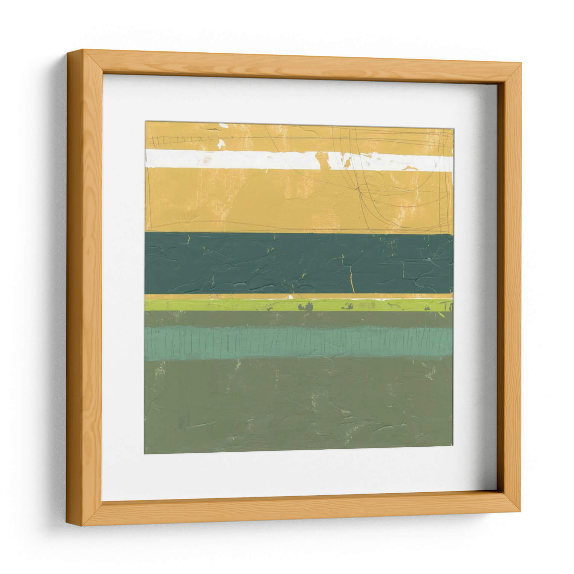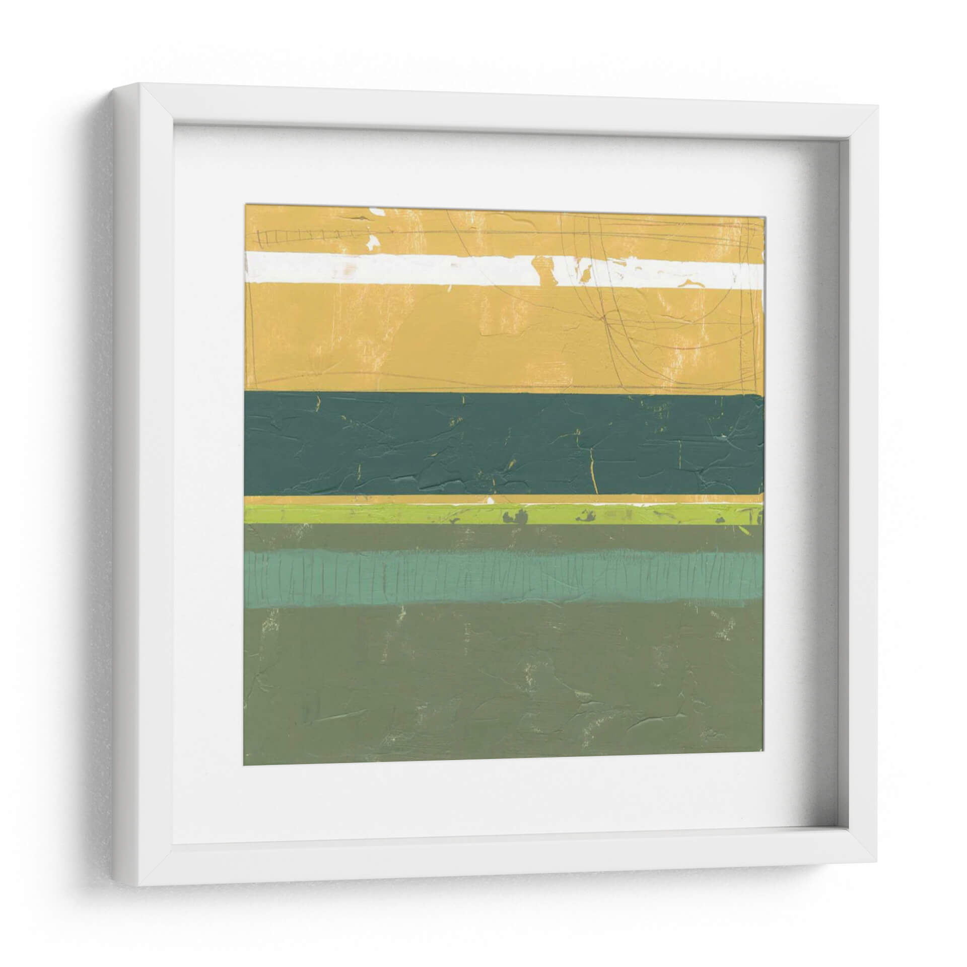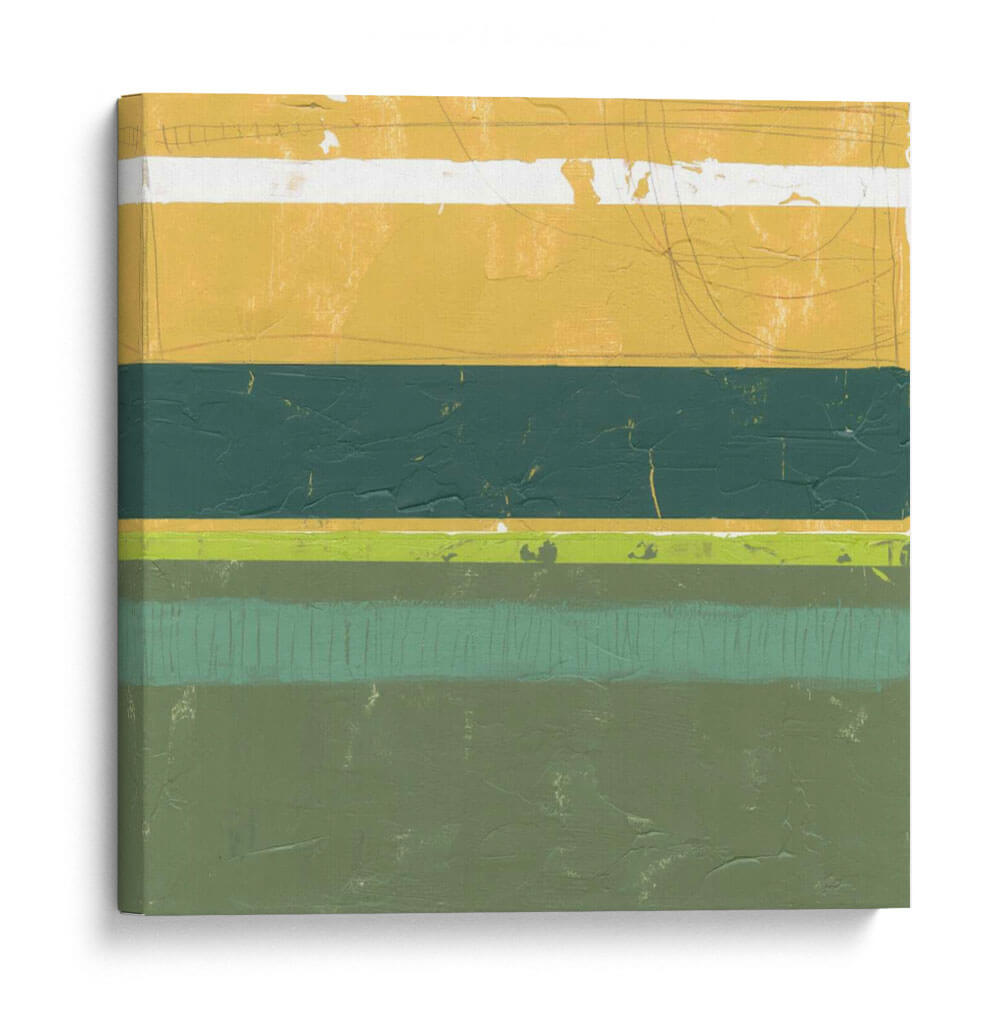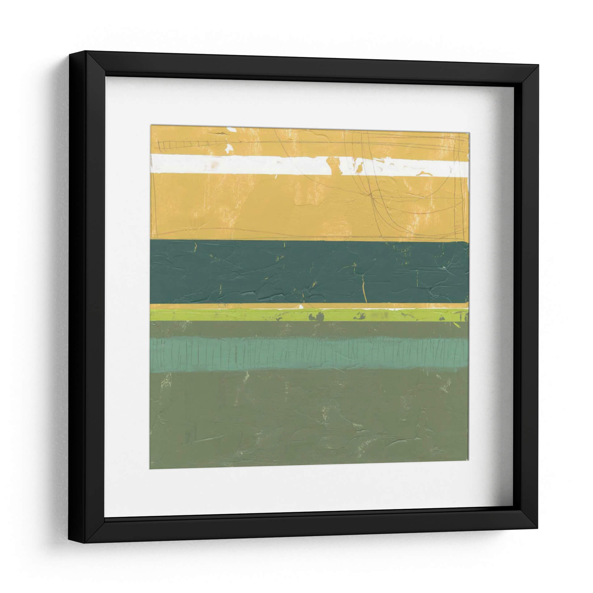 Sumérgete en la serenidad y la profundidad de "Barranco III", una cautivadora obra de arte abstracto de Jennifer Goldberger. Este cuadro decorativo presenta una composición audaz de líneas horizontales en una rica paleta de colores que evoca la tierra y la naturaleza. Las texturas visuales, con sus sutiles imperfecciones y el uso de trazos que sugieren movimiento, invitan a la contemplación. Los tonos verdes profundos y los ocres cálidos se entrelazan con acentos de blanco y lima, creando un equilibrio visual armonioso y moderno. "Barranco III" es perfecto para infundir calma y sofisticación en cualquier espacio, ya sea una sala de estar, un estudio o una oficina. Su diseño abstracto y contemporáneo lo convierte en un punto focal ideal para interiores que buscan un toque de arte con carácter y una conexión sutil con el paisaje natural. Añade esta pieza única a tu colección y transforma tu hogar en una galería personal.