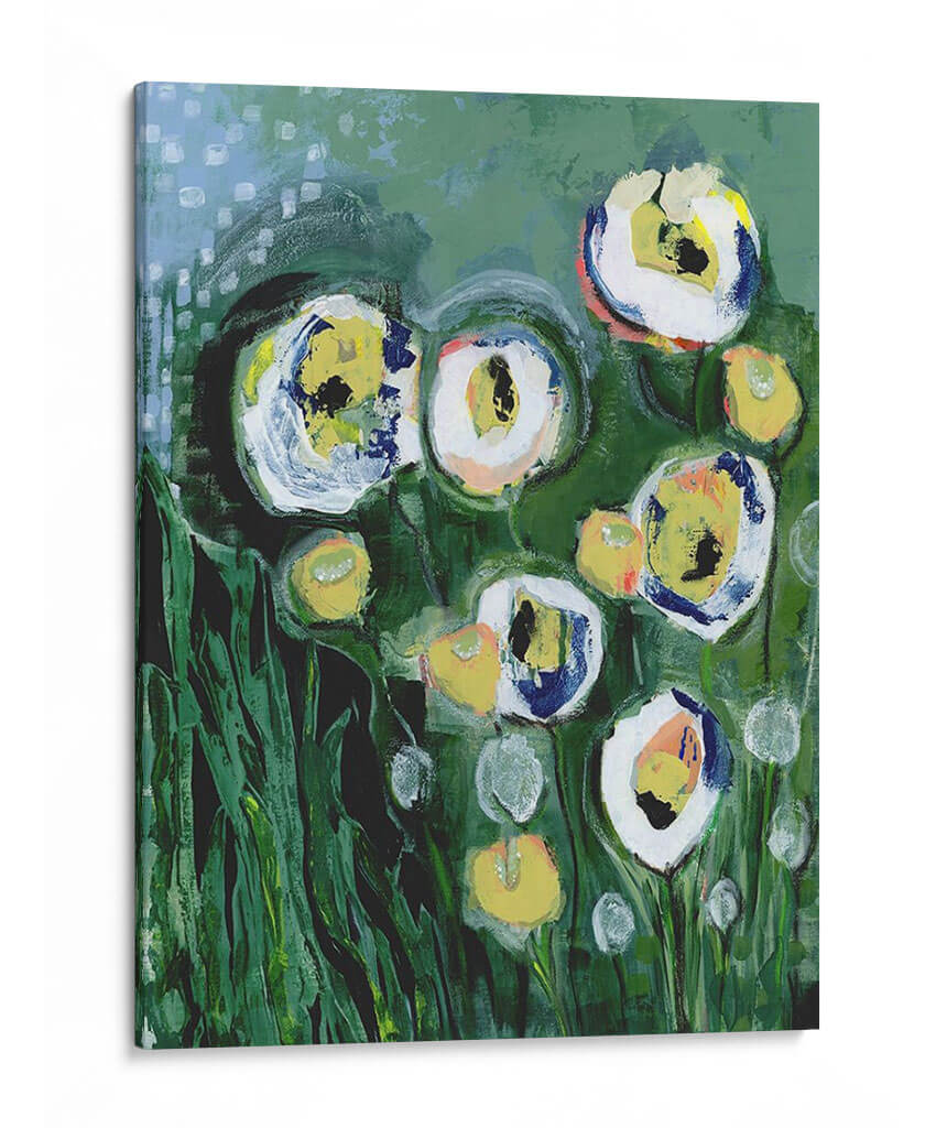 Sumérgete en la vibrante belleza de 'Blanco Moderno Floral III', una cautivadora obra de arte floral que trae la frescura de un jardín abstracto a tu hogar u oficina. Creada por la talentosa artista Tara Daavettila, esta pieza captura la esencia de las flores modernas con una explosión de colores y texturas. Los pétalos blancos y amarillos contrastan audazmente con los profundos verdes del follaje, creando un efecto visual dinámico y lleno de vida. La composición, con sus formas circulares y toques de azul y naranja, sugiere un enfoque contemporáneo y artístico de la naturaleza, invitando a la contemplación y la alegría. Cada pincelada evoca movimiento y vitalidad, haciendo de este cuadro decorativo una pieza central perfecta para cualquier espacio que busque un toque de elegancia natural y un aire de sofisticación moderna. Ideal para salas de estar, dormitorios o incluso como un acento inspirador en una oficina, 'Blanco Moderno Floral III' es una celebración de la forma y el color que transformará tu decoración.