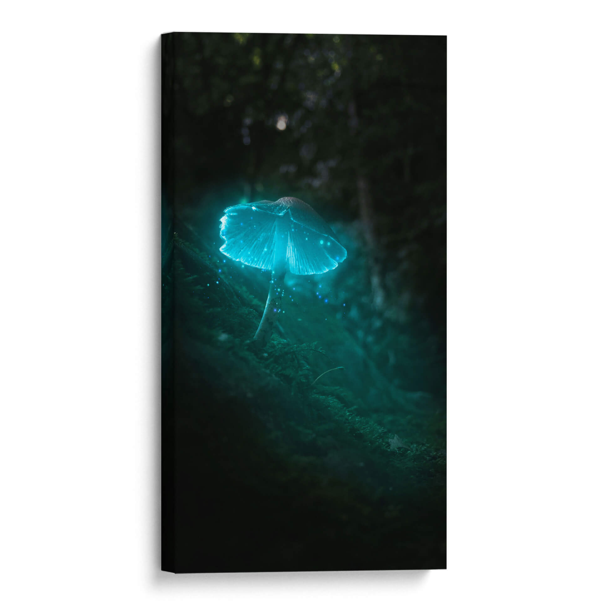 Sumérgete en la magia del bosque con nuestro cautivador cuadro decorativo "Blue Mushroom" del artista Davossm. Esta obra de arte digital captura un hongo bioluminiscente que irradia una luz azul etérea, emergiendo de un entorno oscuro y boscoso. Los detalles sutiles y las partículas brillantes que flotan en el aire crean una atmósfera de ensueño y misterio, transportándote a un reino de fantasía. La paleta de colores, dominada por profundos tonos verdes y azules, junto con el resplandor vibrante del hongo, genera un contraste hipnotizante que atraerá todas las miradas. Su composición vertical y el enfoque en la figura central lo convierten en una pieza ideal para añadir un toque de encanto natural y misticismo a cualquier espacio. Perfecto para salones modernos, dormitorios acogedores o incluso como un punto focal en una oficina, este cuadro decorativo es una invitación a la contemplación y la maravilla. Deja que la luz suave y los colores profundos de "Blue Mushroom" transformen tu hogar en un santuario de tranquilidad y belleza inspirada en la naturaleza.