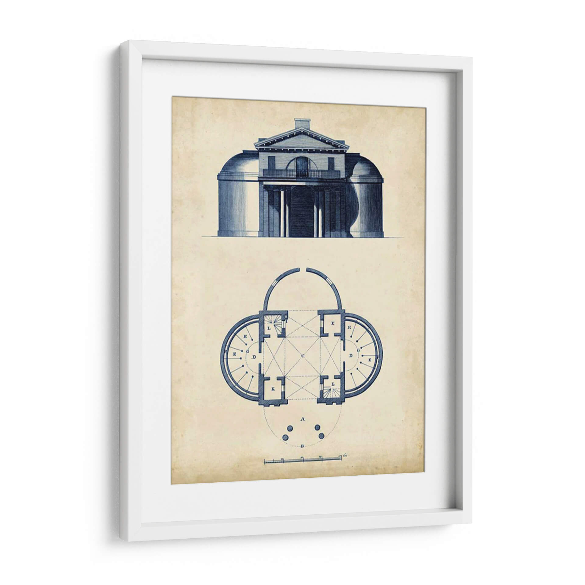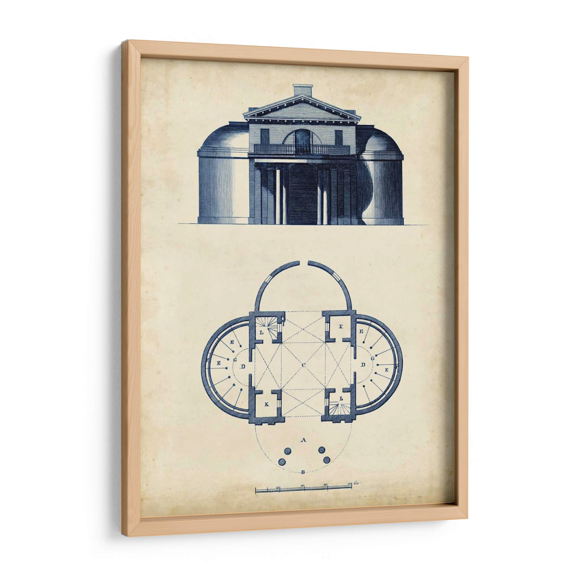 Embellece tu espacio con 'Blueprint Architectural IV', una obra de arte que combina la precisión de los planos arquitectónicos con una estética atemporal. Este cuadro decorativo presenta una detallada elevación y planta de un edificio de diseño clásico, ejecutado en un elegante tono azul sobre un fondo que evoca el papel envejecido. La composición maestra de Andrew Cook George captura la esencia de la arquitectura neoclásica, con sus columnas imponentes, cúpulas simétricas y una distribución espacial intrigante. La paleta de colores, dominada por el contraste entre el azul profundo y el beige sutil, aporta una sensación de calma y sofisticación, ideal para cualquier rincón de tu hogar u oficina que necesite un toque de refinamiento intelectual. Perfecto para estudios, bibliotecas o salas de estar, este lienzo es una invitación a la contemplación y al aprecio por el diseño y la historia. Transforma tus paredes con este diseño arquitectónico que no solo decora, sino que también inspira y dialoga con el entorno, aportando un aire de erudición y buen gusto a tu decoración.