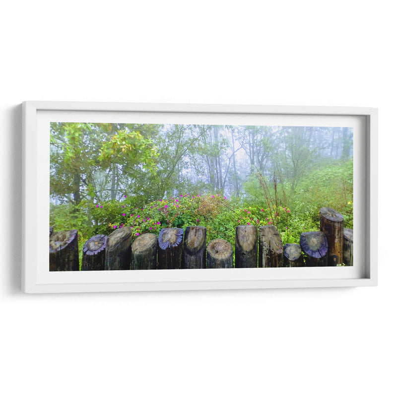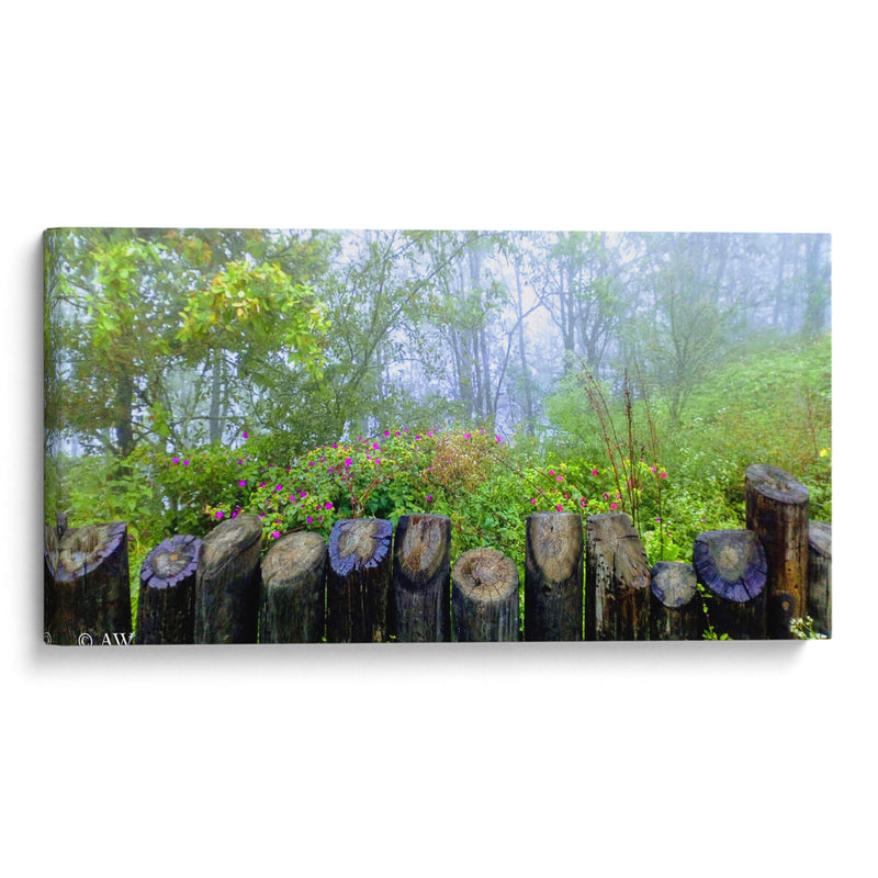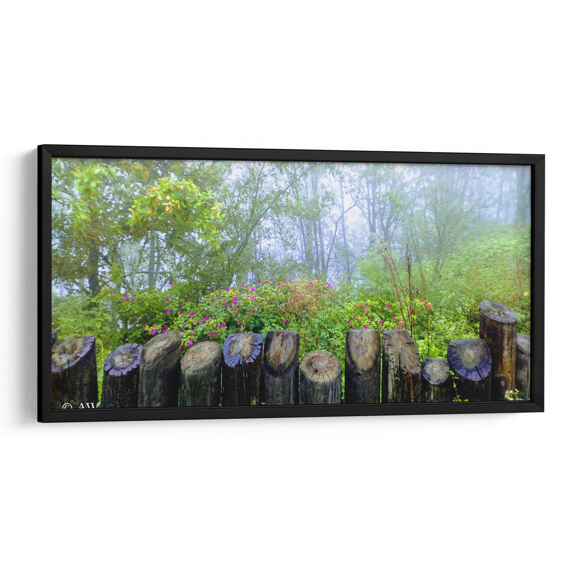 Sumérgete en la serena belleza de "Bosque Silvestre", una cautivadora obra de arte de Aimee Wilde que te transportará a un remanso de paz natural. Este cuadro decorativo captura la esencia etérea de un bosque envuelto en una suave niebla, donde la luz se filtra a través de las hojas creando un ambiente de ensueño. La composición se centra en una rústica valla de troncos, cuyos cortes transversales revelan patrones orgánicos y matices de color violeta, contrastando con la exuberante vegetación y las delicadas flores silvestres de tonos rosados que se abren paso. La paleta de verdes vibrantes, suaves azules y toques de rosa evoca una sensación de frescura y vitalidad, mientras que la atmósfera brumosa añade un toque de misterio y tranquilidad. "Bosque Silvestre" es ideal para añadir un aire de sofisticación natural a tu salón, un rincón de lectura o incluso un espacio de oficina, invitando a la contemplación y a la conexión con la naturaleza. Esta pieza contemporánea es perfecta para quienes buscan un refugio visual, un recordatorio de la belleza serena que se encuentra en los rincones más tranquilos del mundo natural. Transforma tu hogar en un santuario de calma con este evocador cuadro decorativo.