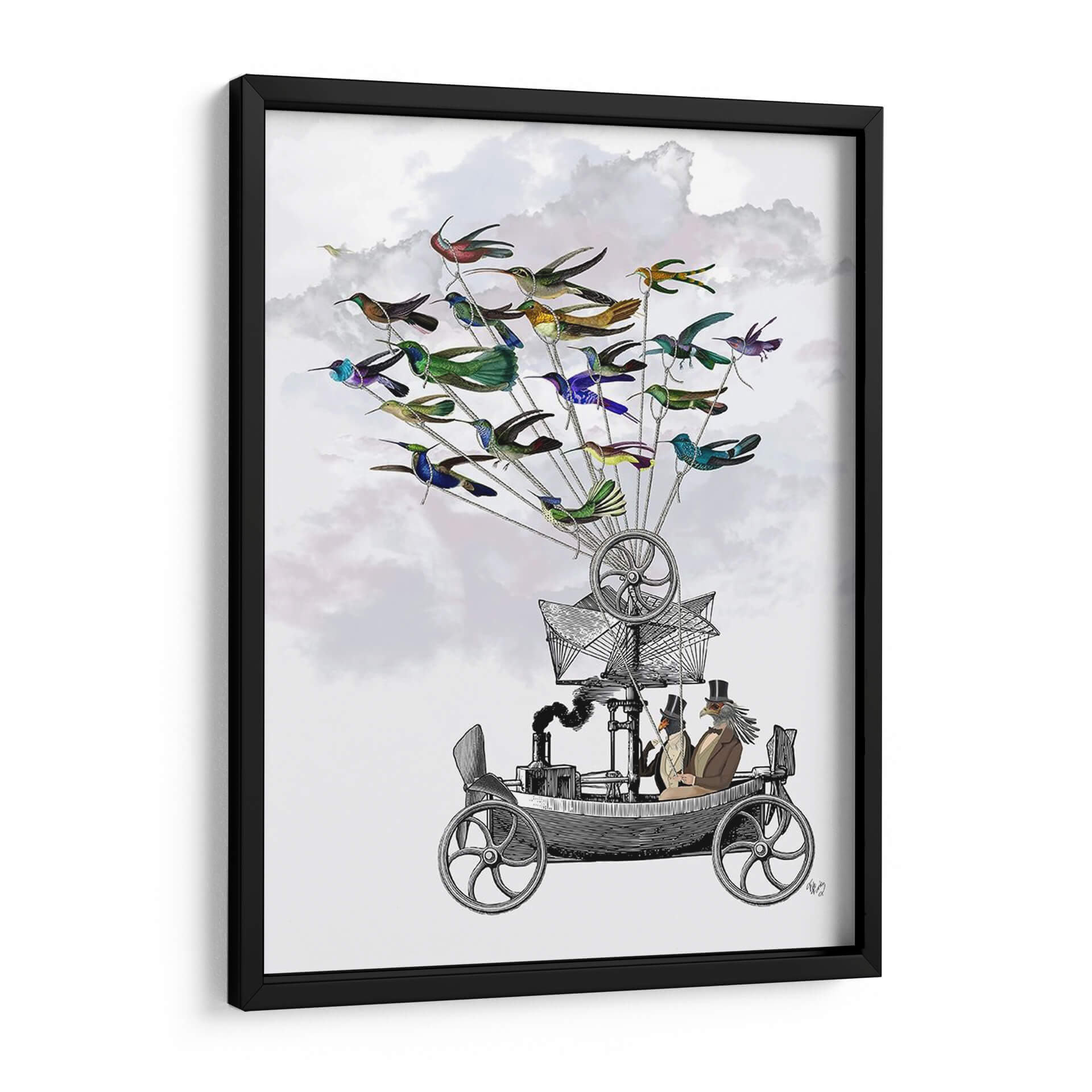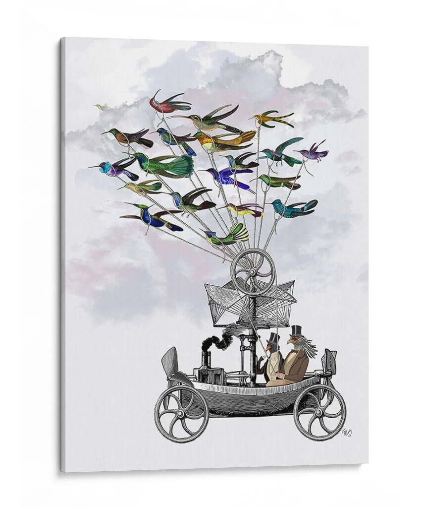 Embárcate en un viaje imaginativo con "Bote De Aves", una obra de arte cautivadora que desafía las convenciones. Esta pieza, creada por Fab Funky, presenta un singular vehículo de estilo steampunk transportando a dos personajes antropomórficos con cabeza de ave, adornados con sombreros de copa, a través de un cielo etéreo. El singular transporte está suspendido por una multitud de coloridos pájaros, que parecen ser el motor de esta fantástica máquina voladora. La paleta de colores es vibrante pero equilibrada, con los intensos tonos de los pájaros que contrastan maravillosamente con el suave fondo de nubes rosadas y grises. La detallada ilustración en blanco y negro del vehículo añade un toque de elegancia victoriana y complejidad mecánica, mientras que las aves aportan una explosión de vida y color. "Bote De Aves" es una pieza que evoca asombro, curiosidad y un espíritu aventurero. Es un cuadro decorativo perfecto para añadir un toque de originalidad y fantasía a cualquier espacio, ya sea una sala de estar, una oficina o un dormitorio. Su estética única la convierte en un punto focal intrigante que invita a la conversación y estimula la imaginación, ideal para quienes buscan una decoración de pared que sea tanto artística como conceptualmente rica.