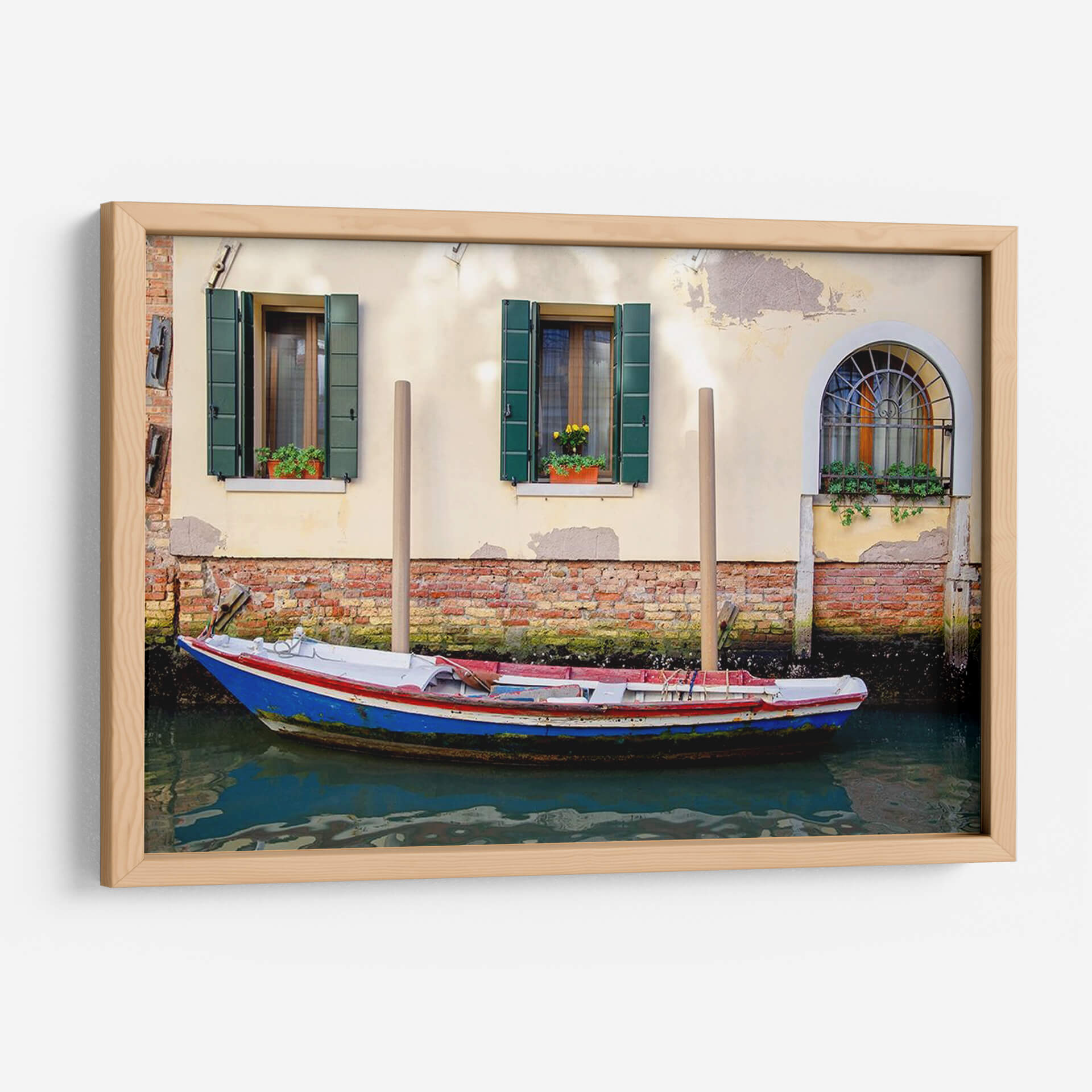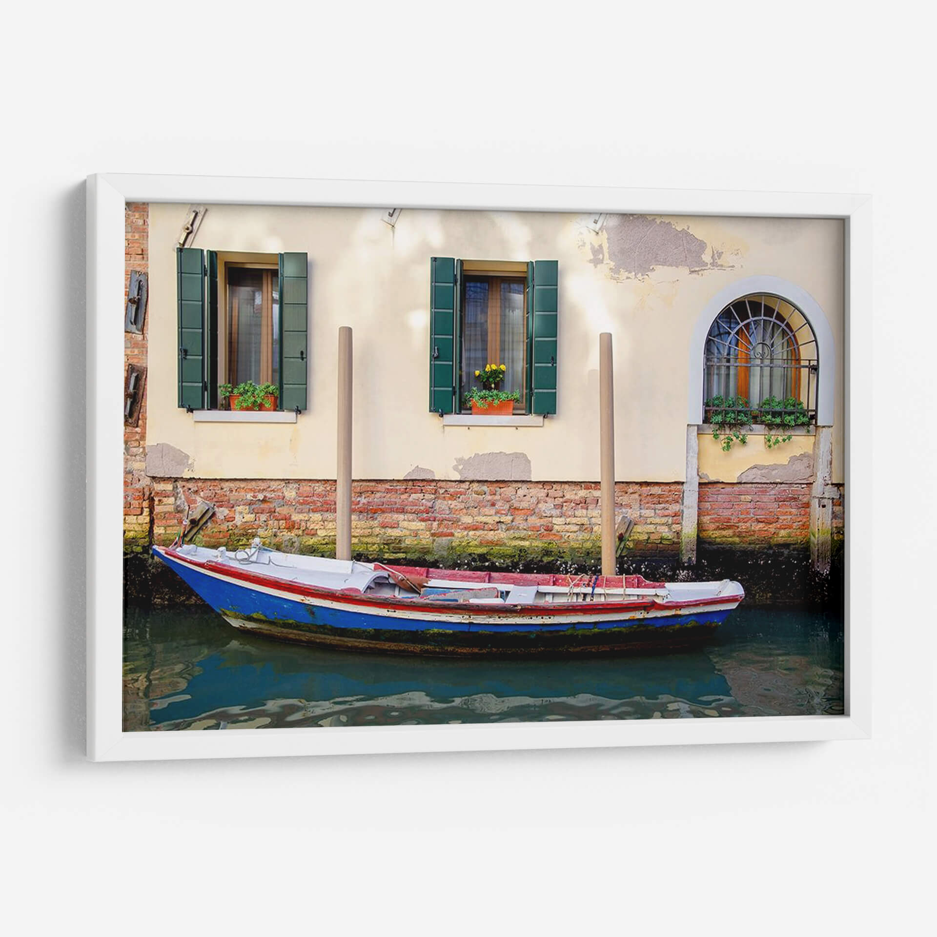 Transporte a las encantadoras calles de Venecia con este evocador cuadro decorativo que captura la esencia de la vida junto al canal. La obra presenta una embarcación tradicional, pintada en vibrantes tonos de azul, blanco y rojo, meciéndose serenamente sobre las aguas turquesas. Detrás, la arquitectura veneciana se despliega con fachadas de color crema y ladrillo visto, adornadas con contraventanas verdes y macetas rebosantes de flores, creando una escena llena de carácter y encanto histórico. La luz suave que baña la composición y el sutil reflejo del agua añaden una atmósfera de tranquilidad y cotidianidad. Este lienzo es ideal para infundir un toque de la belleza italiana en cualquier hogar u oficina, evocando la atmósfera romántica y la rica historia de una de las ciudades más icónicas del mundo. Perfecto para amantes de los viajes y la fotografía urbana, este cuadro decorativo 'Botones De Trabajo De Venecia Ii' de Laura DeNardo se convertirá en un punto focal que invita a la contemplación y al ensueño.