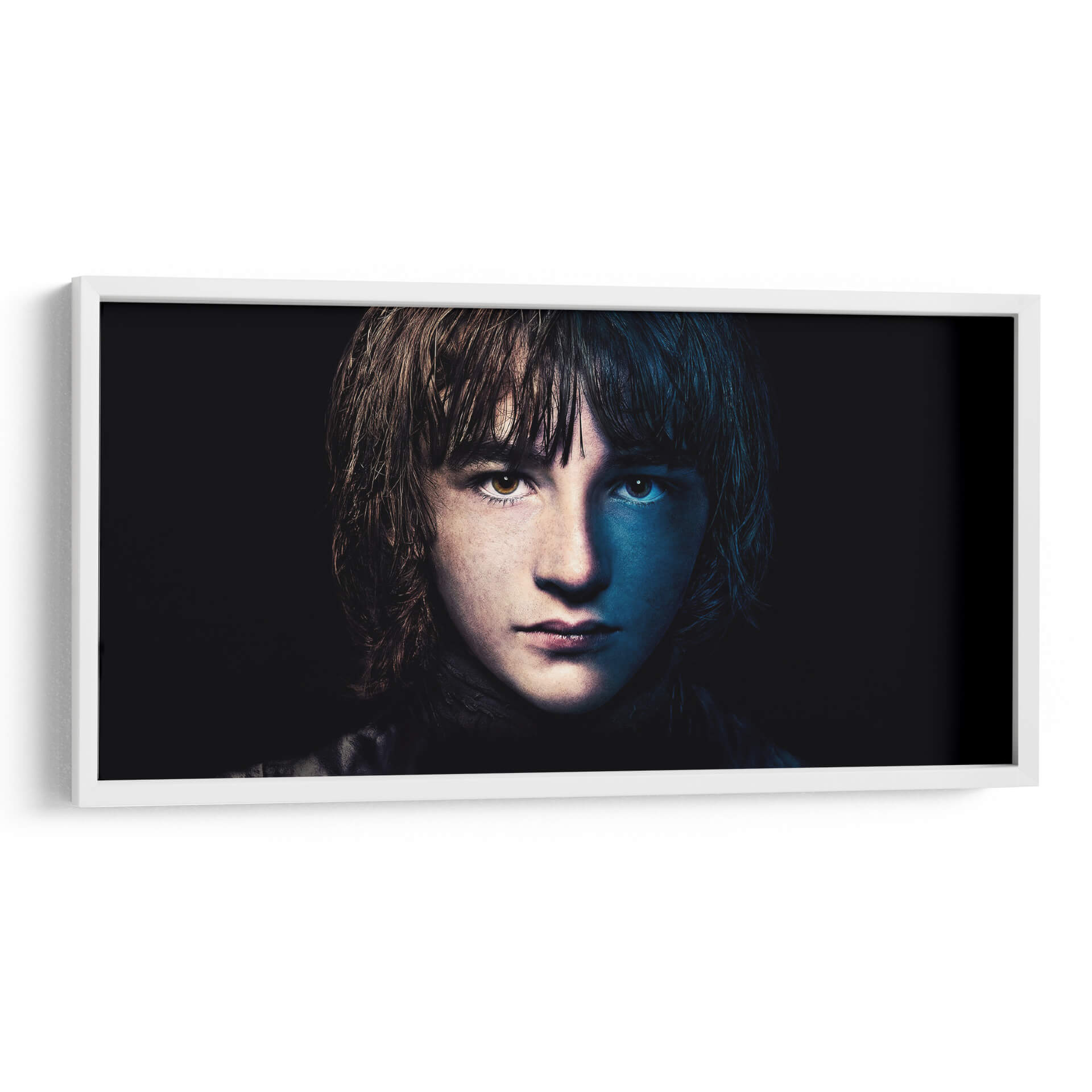 Sumérgete en la enigmática mirada de 'Bran Stark en azul', un cuadro decorativo que trasciende la simple imagen para convertirse en una declaración de estilo y carácter. Esta obra captura la esencia de un personaje joven, con una iluminación dramática que divide su rostro en dos mitades contrastantes: una bañada en cálidos tonos naturales y la otra, sumergida en un misterioso azul eléctrico. La composición es un primer plano íntimo, centrado en la expresión del rostro, que evoca una profunda introspección y un sentido de dualidad. Los detalles sutiles en el cabello y la textura de la piel, junto con el fondo oscuro y minimalista, realzan la intensidad del personaje. Ideal para añadir un toque de intriga y sofisticación a cualquier espacio, este cuadro decorativo es perfecto para salones modernos, estudios o dormitorios que busquen un punto focal que invite a la reflexión. Su estética contemporánea y su paleta de colores contrastantes lo convierten en una pieza versátil, capaz de complementar una decoración minimalista o añadir profundidad a ambientes más audaces. Transforma tu hogar u oficina con este retrato cautivador que combina arte, misterio y una innegable presencia.