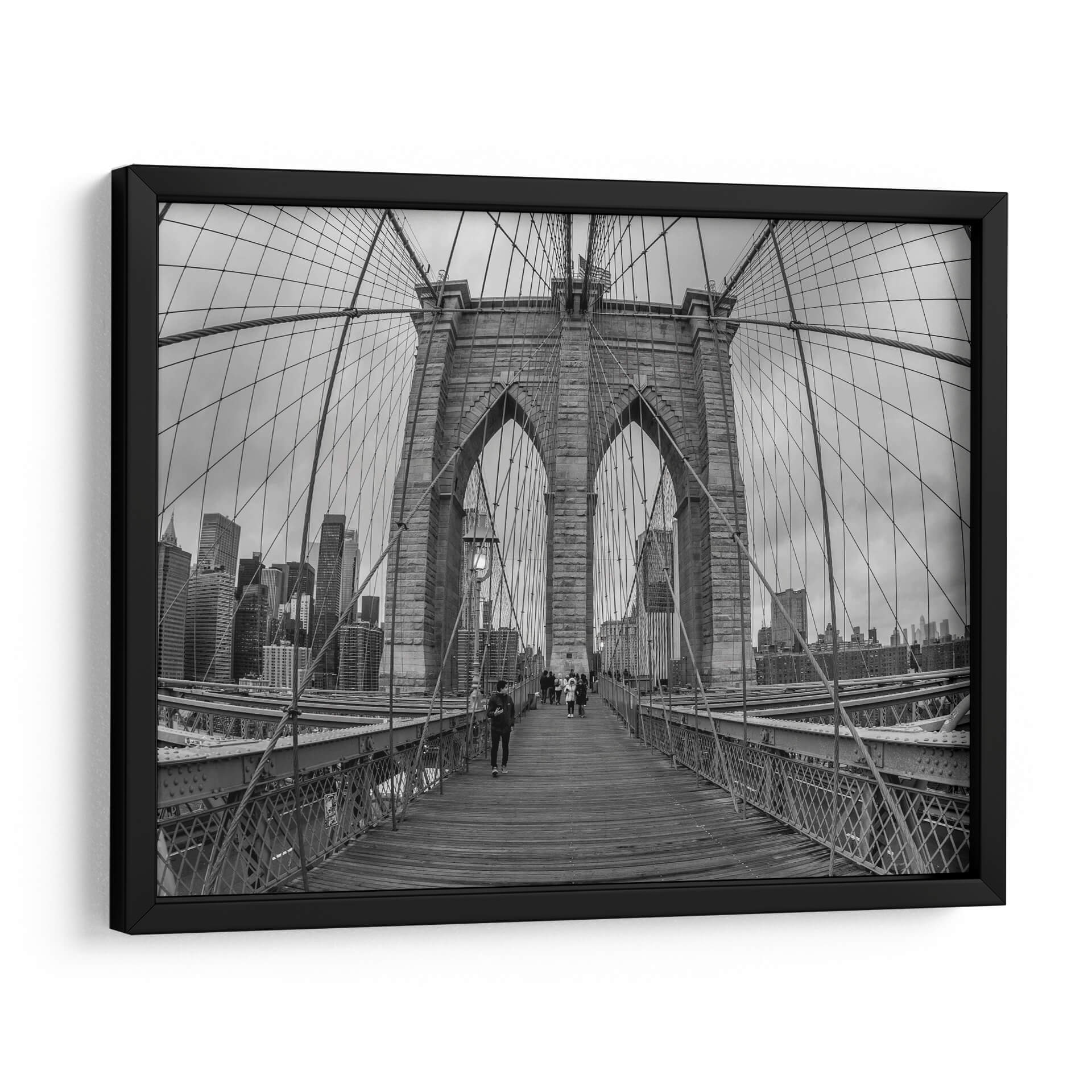 Sumérgete en la majestuosidad icónica de Nueva York con este cautivador cuadro decorativo del Puente de Brooklyn. Capturada en una impresionante fotografía en blanco y negro, esta obra de arte evoca la grandeza arquitectónica y el dinamismo urbano de la ciudad que nunca duerme. La perspectiva inmersiva te transporta al corazón del puente, permitiéndote apreciar los detalles intrincados de sus torres de piedra, los robustos cables de acero que se extienden hacia el cielo y la pasarela de madera que invita a pasear. El contraste entre las luces y sombras, realzado por la paleta monocromática, añade profundidad y dramatismo a la escena, creando una atmósfera atemporal y sofisticada. El horizonte de Manhattan se perfila en la distancia, recordándonos la escala monumental de esta metrópolis. Este cuadro decorativo es perfecto para añadir un toque de elegancia cosmopolita a tu sala de estar, estudio u oficina. Su diseño clásico pero impactante lo convierte en un punto focal ideal para espacios que buscan transmitir una sensación de fuerza, conexión y aspiración. Una pieza que celebra la ingeniería, la historia y el espíritu vibrante de Brooklyn.