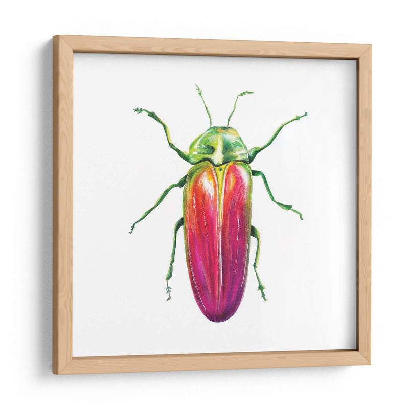 Captura la belleza intrincada de la naturaleza con "Buggin Fuera II", una obra de arte digital que celebra la fascinación por los insectos. Esta pieza presenta un escarabajo detallado, con su caparazón iridiscente brillando en tonos vibrantes de rojo, rosa y morado, contrastando maravillosamente con el verde esmeralda de su cabeza y patas. La composición minimalista, con el sujeto aislado sobre un fondo blanco puro, permite que la exquisitez del insecto sea el único foco de atención. El estilo realista y la delicadeza en el trazo evocan una sensación de asombro ante las maravillas del mundo natural. "Buggin Fuera II" es ideal para añadir un toque de color y un punto de conversación a cualquier espacio, ya sea una sala de estar moderna, un estudio personal o una oficina. Su vibrante paleta de colores puede complementar decoraciones contemporáneas, aportando vida y energía a las paredes. Esta obra es una invitación a apreciar la complejidad y el diseño orgánico, perfecta para amantes de la entomología, el arte figurativo o simplemente para quienes buscan una pieza decorativa única y llamativa que despierte la curiosidad y el aprecio por los detalles.