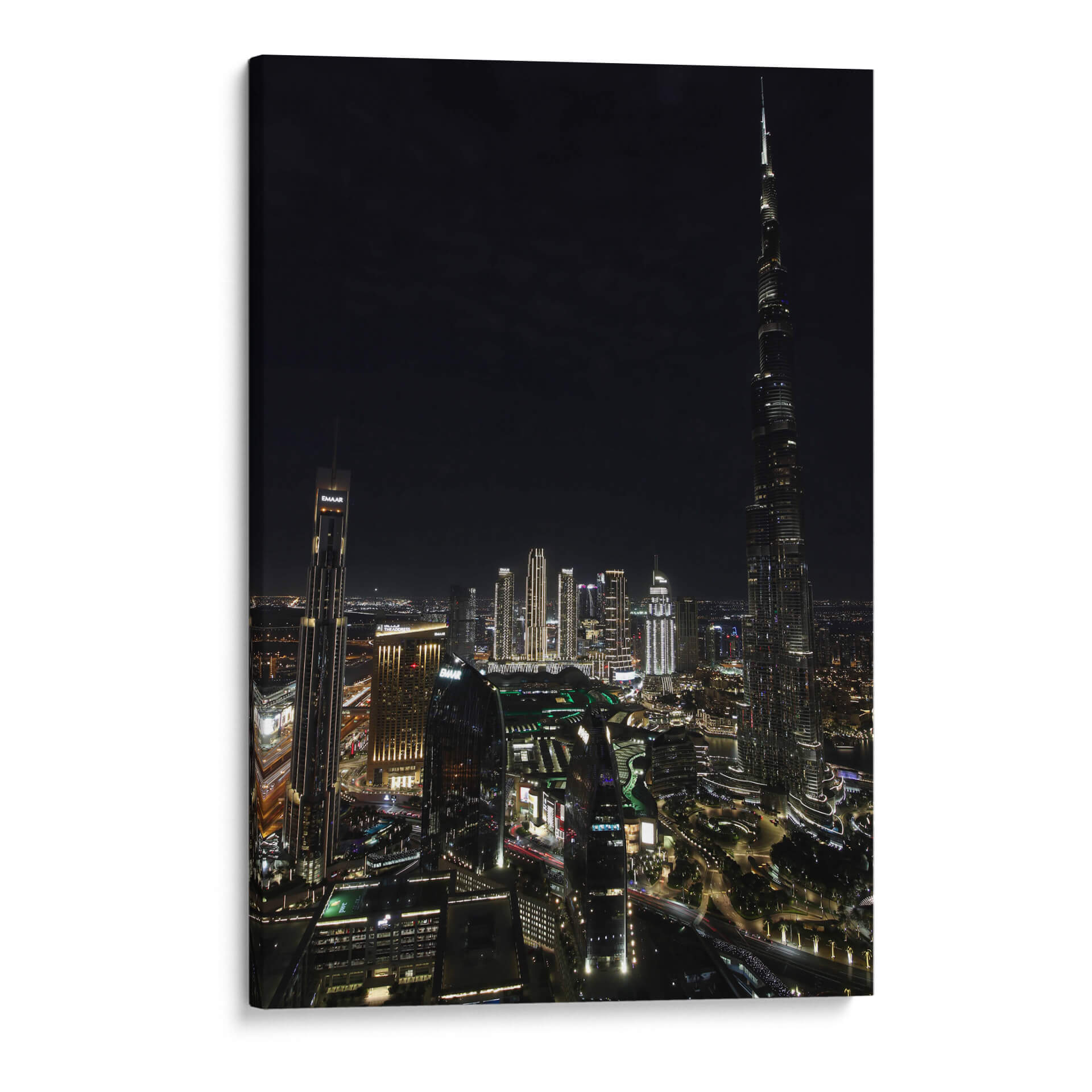 Captura la majestuosidad de Dubai con este impresionante cuadro decorativo de "Burj Khalifa y Dubai Mall al Anochecer". La obra maestra de Luis Rodrigo Magaña Andrade te transporta a una noche vibrante en la metrópolis, destacando la silueta icónica del Burj Khalifa y el bullicio del Dubai Mall. La paleta de colores, dominada por oscuros profundos y el resplandor cálido de las luces urbanas, crea una atmósfera de elegancia moderna y energía cosmopolita. Cada detalle, desde las luces que parpadean en los rascacielos hasta la vastedad del cielo nocturno, está representado con una maestría que evoca la grandiosidad y el dinamismo de la ciudad. Este cuadro decorativo es la pieza ideal para añadir un toque de sofisticación y un recordatorio visual de las maravillas arquitectónicas y el estilo de vida de una de las ciudades más deslumbrantes del mundo. Perfecto para salas de estar, oficinas o cualquier espacio que busque una declaración de estilo contemporáneo y un toque de inspiración global. Transforma tu hogar en un santuario de modernidad y lujo con esta cautivadora vista nocturna.