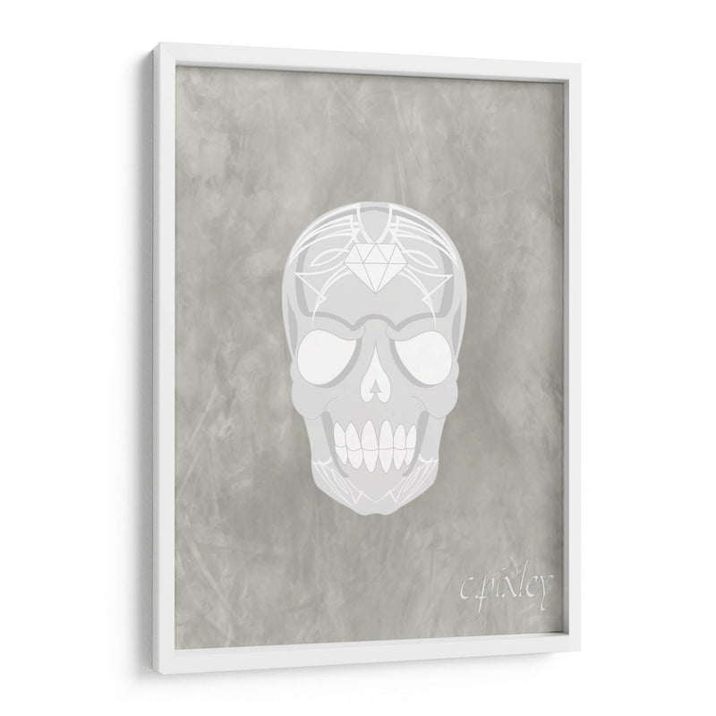 Embárcate en un viaje visual con "Calavera Blanca" de Carlos Pixley, una obra de arte contemporáneo que redefine el simbolismo clásico con un toque moderno y audaz. Esta pieza cautivadora presenta una calavera estilizada, representada en tonos blancos y grises, sobre un fondo texturizado que evoca la sutileza del cemento o el lienzo. La composición se centra en la icónica forma de la calavera, adornada con intrincados detalles geométricos y un diamante brillante en la frente, añadiendo un elemento de lujo y sofisticación. La paleta de colores monocromática y apagada, dominada por el gris, confiere a la obra una atmósfera de misterio, elegancia y contemplación, perfecta para espacios que buscan un toque de intriga sin abrumar. Su diseño minimalista y la claridad de sus líneas la hacen versátil, ideal para complementar la decoración de un salón moderno, un estudio de diseño o incluso un dormitorio con estilo. "Calavera Blanca" no es solo una imagen, es una declaración de intenciones, un reflejo de la dualidad entre la vida y la muerte, lo efímero y lo eterno, invitando a la reflexión y al diálogo en cualquier ambiente. Añade un toque de arte contemporáneo con profundidad a tu hogar u oficina.