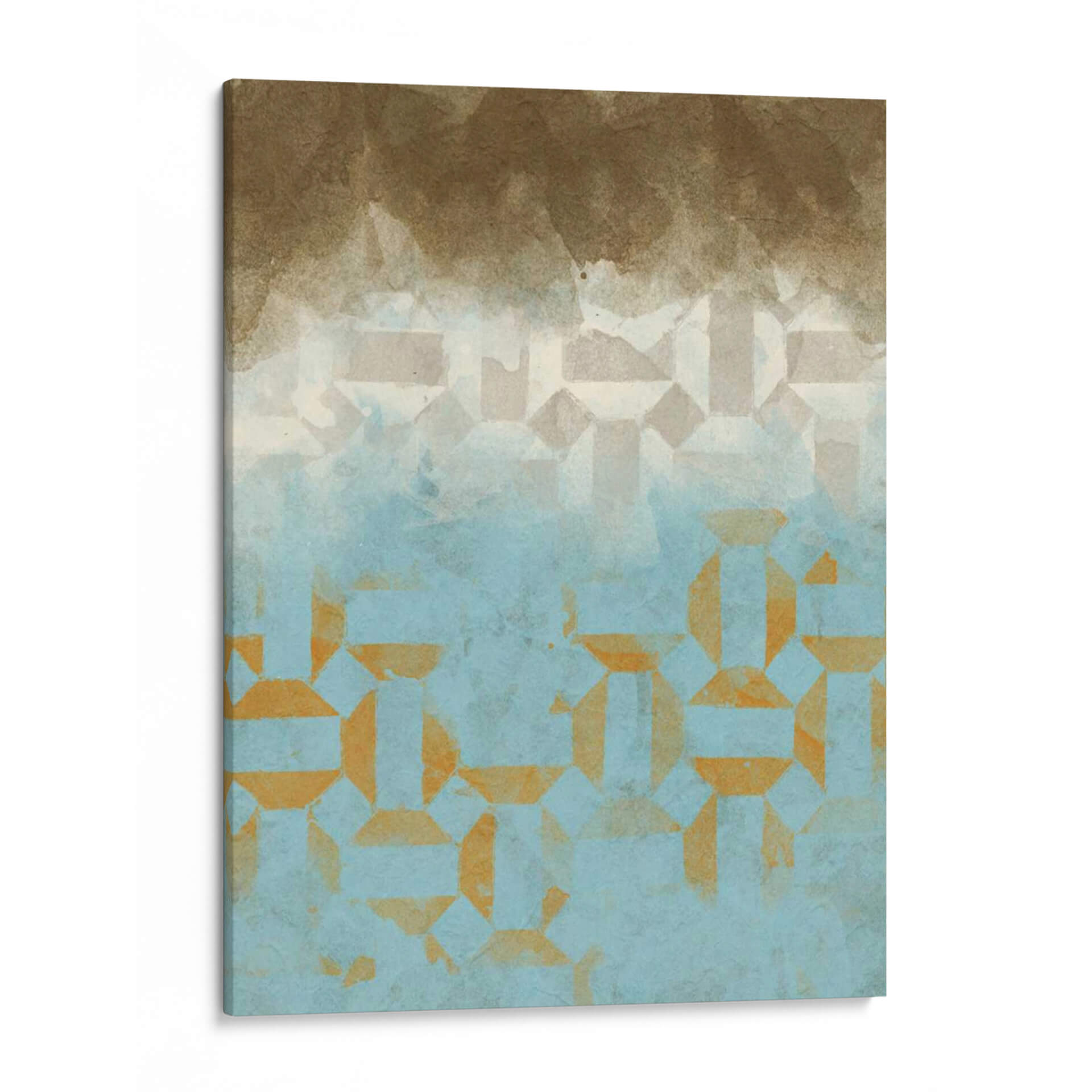 Sumérgete en la evocadora obra de Alonzo Saunders, "Cambio Cambio I", un cuadro decorativo que fusiona la abstracción geométrica con texturas orgánicas. La paleta de colores se despliega en un degradado sereno, transitando de un marrón terroso en la parte superior a un vibrante azul aguamarina, salpicado con sutiles toques de ocre anaranjado en sus intrincados patrones geométricos. La composición presenta un delicado equilibrio entre formas definidas y pinceladas sueltas, creando una sensación de profundidad y movimiento. "Cambio Cambio I" irradia una atmósfera de tranquilidad contemplativa, ideal para aquellos que buscan infundir calma y sofisticación en su hogar u oficina. Este cuadro decorativo es perfecto para complementar espacios modernos, minimalistas o de inspiración nórdica, añadiendo un punto focal de interés visual sin abrumar. Imagina cómo sus tonos armoniosos pueden transformar un rincón de lectura en un santuario de paz o dar vida a una pared vacía en tu sala de estar. Descubre la belleza del arte abstracto contemporáneo que invita a la reflexión y al disfrute estético.