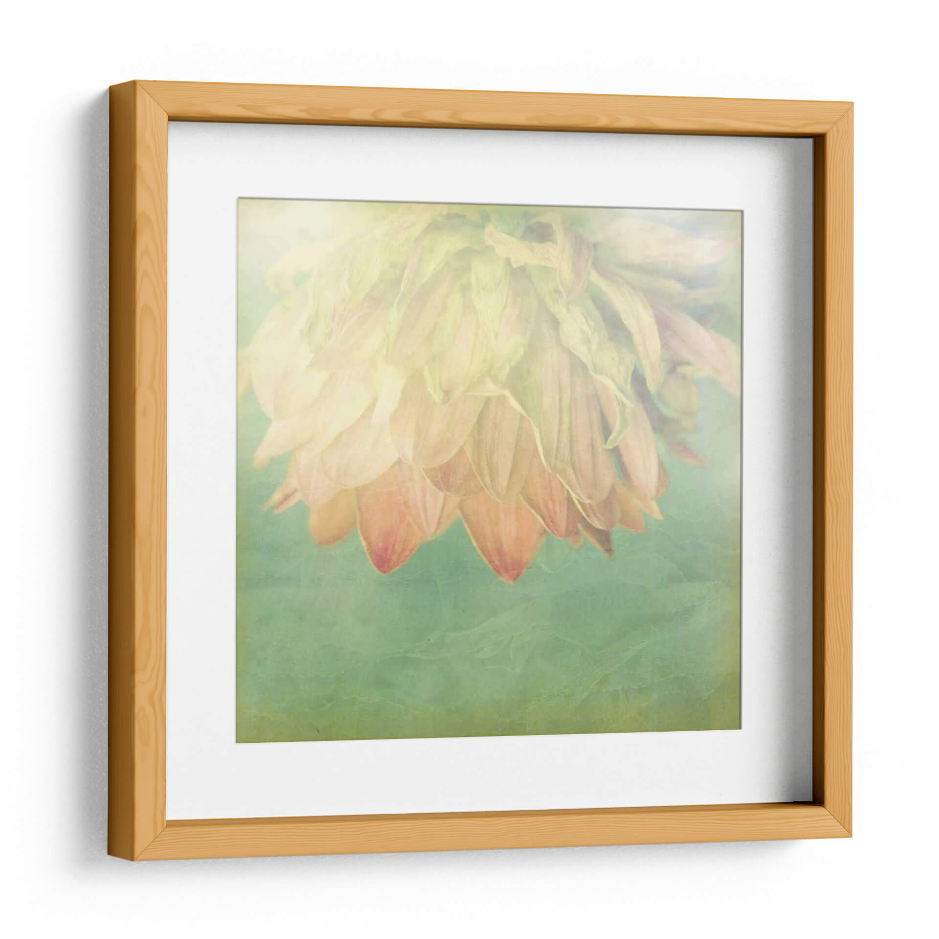 Sumérgete en la delicada belleza de "Caminos Pastel II", una obra de arte que captura la esencia efímera de una flor en tonos pastel. La pieza presenta una composición cercana de pétalos suaves en tonalidades melocotón y crema, suspendidos sobre un fondo texturizado de verde mar acuático. La iluminación difusa y los bordes etéreos otorgan a este cuadro decorativo una cualidad onírica, invitando a la contemplación y la serenidad. El estilo, que combina elementos de fotografía macro con un toque pictórico, crea una atmósfera de calma y dulzura. Es la elección perfecta para añadir un toque de suavidad y color sutil a un dormitorio, un tocador o un espacio de meditación. Este cuadro decorativo moderno es ideal para quienes buscan infundir paz y armonía en su hogar, fusionando la naturaleza con un arte contemporáneo y evocador. La obra, de Jennifer Jorgensen, es una oda a la fragilidad y la belleza intrínseca de las formas florales, presentada de una manera que resalta su textura y volumen de forma delicada y artística.
