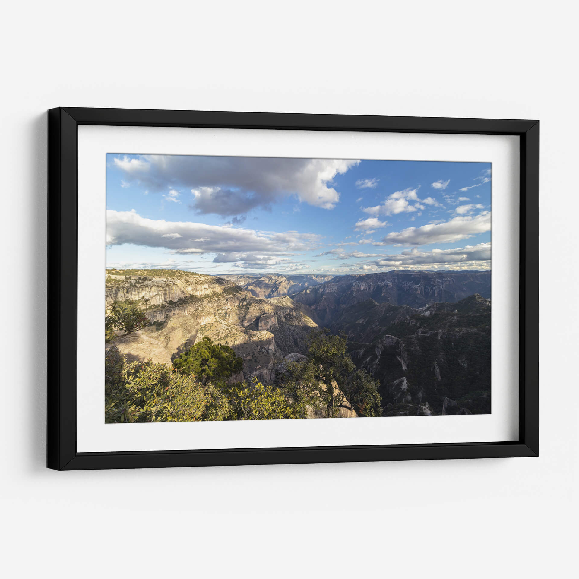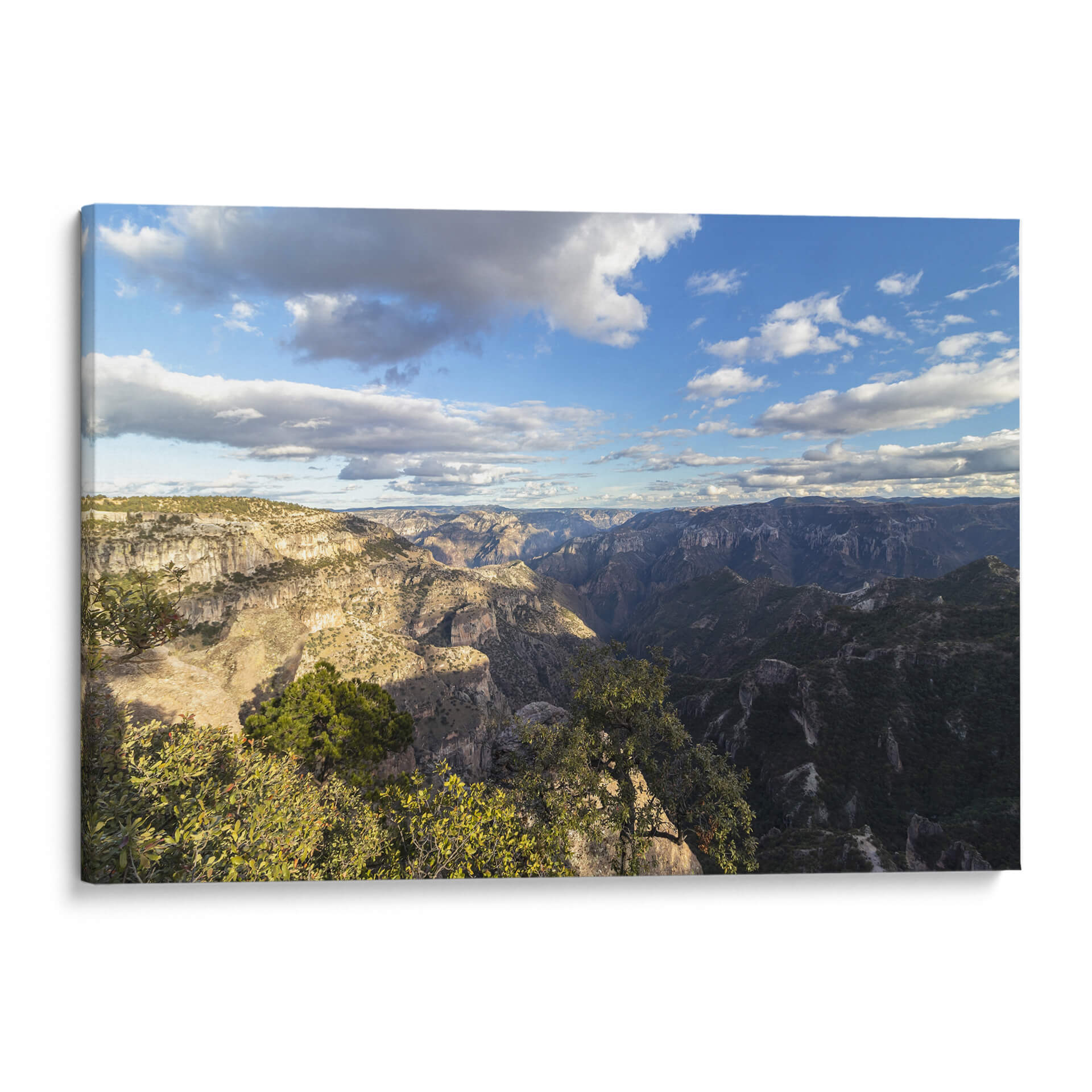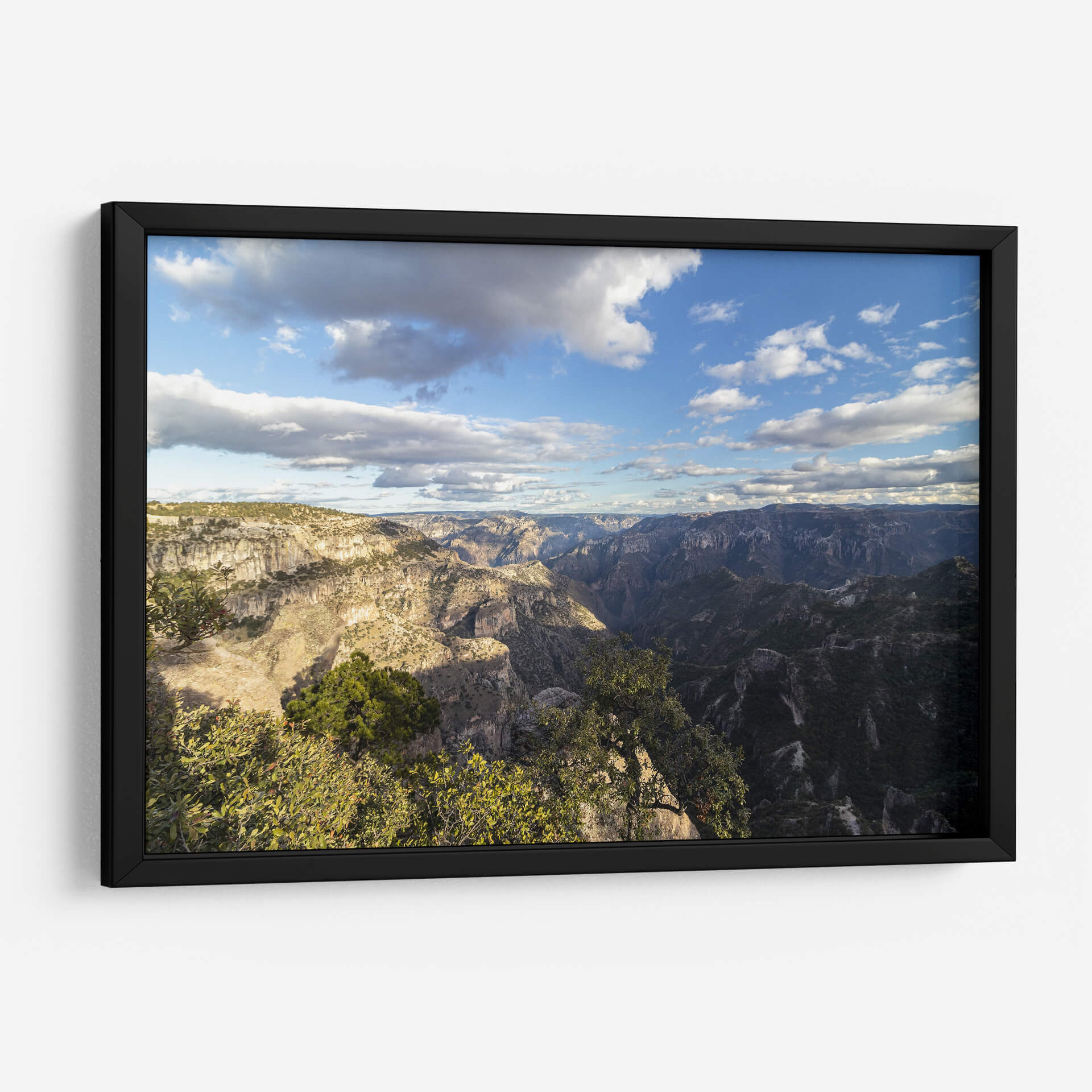 Sumérgete en la majestuosidad de 'Cañones y Sombras' de Bernardo Miranda, una obra de arte que captura la inmensidad y el misterio de paisajes agrestes. Este cuadro decorativo te transporta a la profundidad de cañones escarpados, donde la luz del sol juega creando contrastes dramáticos entre las zonas iluminadas y las sombras profundas. La paleta de colores, dominada por tonos tierra, ocres y verdes oscuros, evoca una sensación de naturaleza salvaje y serena, perfecta para quienes buscan una conexión con el exterior. La composición panorámica se extiende hasta el horizonte, invitando a la contemplación y a la reflexión sobre la escala de la naturaleza frente a la presencia humana. Las formaciones rocosas y la vegetación agreste, capturadas con un realismo que casi se puede sentir, otorgan a esta pieza una textura visual rica y cautivadora. Ideal para un salón moderno, una oficina con carácter o cualquier espacio que desee un toque de aventura y tranquilidad profunda. 'Cañones y Sombras' no es solo una decoración, es una ventana a la magnificencia del mundo natural, una invitación a explorar la belleza cruda y atemporal. Transforma tu entorno con esta impactante representación de la geografía, infundiendo a tu hogar o lugar de trabajo una atmósfera de paz y asombro.