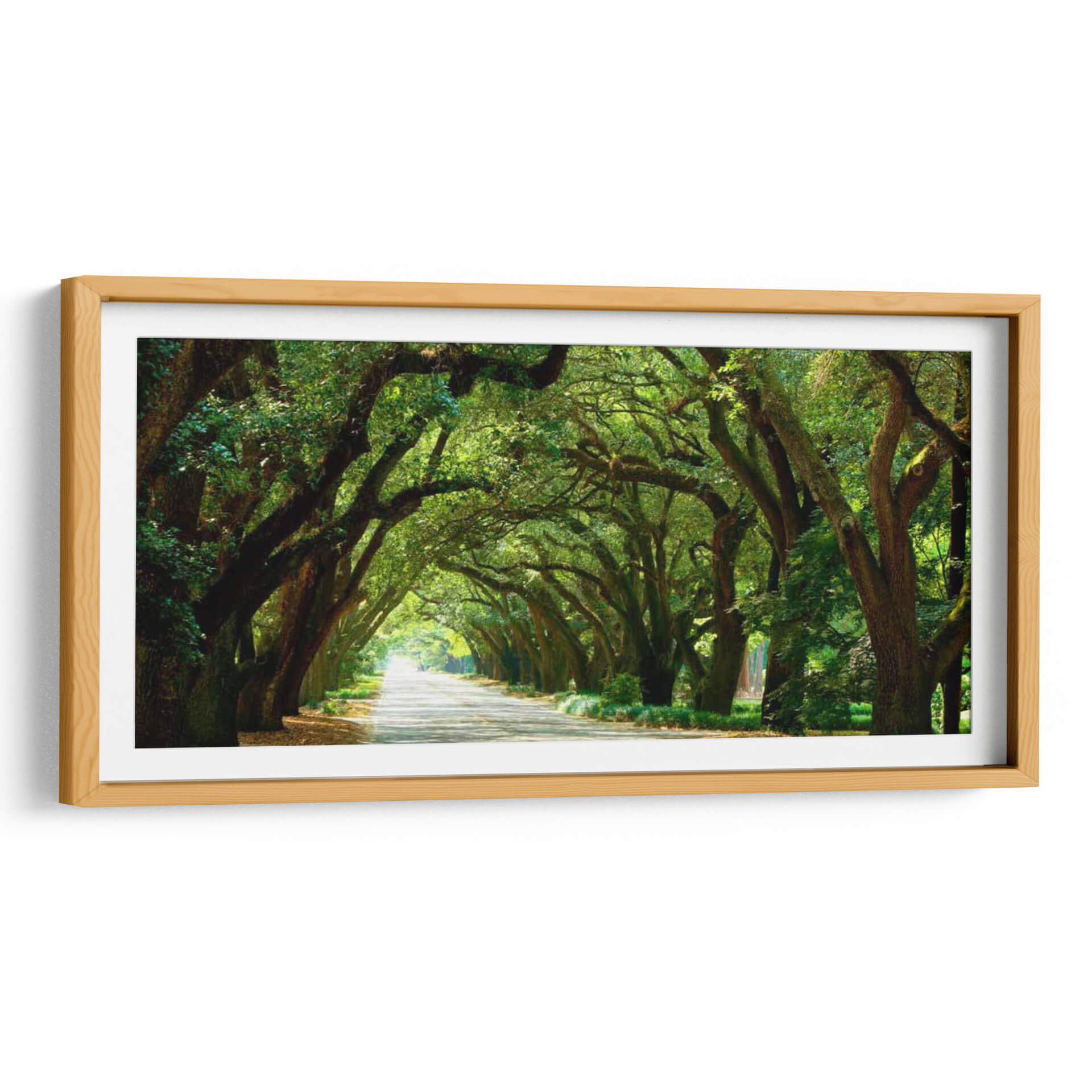 Sumérgete en la serena belleza de "Canopy Road Panorama I", una obra maestra de James McLoughlin que captura la majestuosidad de un camino arbolado bañado por la luz del sol. Este cuadro decorativo te transporta a un paseo idílico bajo un dosel de frondosos árboles, cuyas ramas se entrelazan creando un túnel natural de verdor exuberante. La paleta de colores se centra en una rica variedad de verdes, desde los tonos más profundos de las hojas hasta los brillantes destellos de la luz solar que se filtran, complementados por los tonos terrosos del camino y la corteza de los árboles. La composición panorámica ofrece una perspectiva inmersiva, invitando al espectador a recorrer el sendero hacia un futuro prometedor. Ideal para quienes buscan infundir calma y conexión con la naturaleza en su hogar u oficina, esta pieza evoca una sensación de paz y contemplación. Añade un toque de elegancia natural y serenidad a cualquier espacio con este impresionante cuadro decorativo, perfecto para salones, dormitorios o estudios que necesiten una ventana a la tranquilidad del campo.