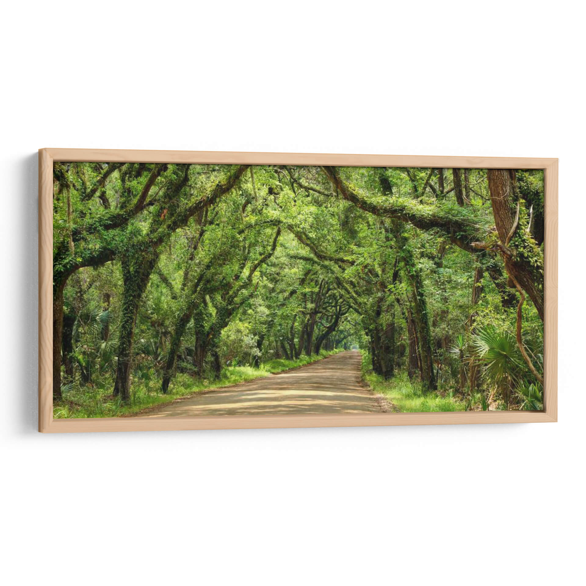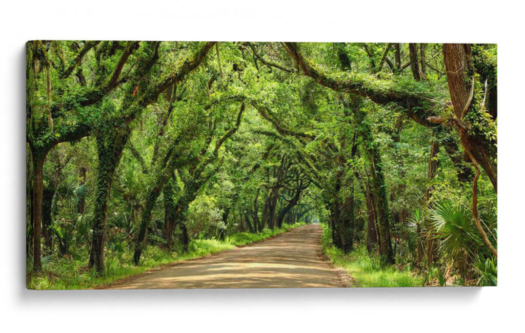 Sumérgete en la exuberante belleza natural de "Canopy Road Panorama III", una obra de arte que captura la magia de un camino serpenteante flanqueado por majestuosos árboles cubiertos de vegetación. Este cuadro decorativo transporta al espectador a un oasis de tranquilidad, donde la luz del sol se filtra a través del denso dosel verde, creando un juego de sombras y brillos sobre el camino de tierra. Los verdes vibrantes y las texturas ricas de la naturaleza se entrelazan, evocando una sensación de paz y aventura. Ideal para aquellos que buscan infundir calma y un toque de la naturaleza salvaje en su hogar u oficina, esta pieza es una invitación a la contemplación y al escapismo. Su composición panorámica ofrece una perspectiva envolvente, haciendo que cualquier espacio se sienta más amplio y sereno. Añade una dimensión de serenidad y conexión con la naturaleza a tu decoración con esta impresionante vista panorámica.