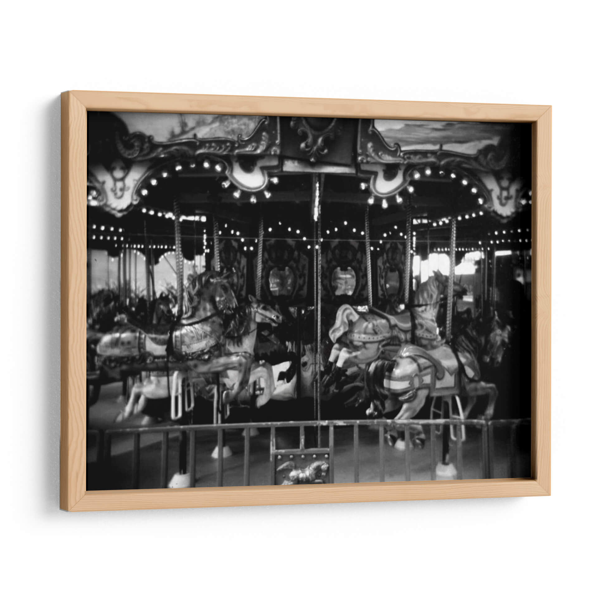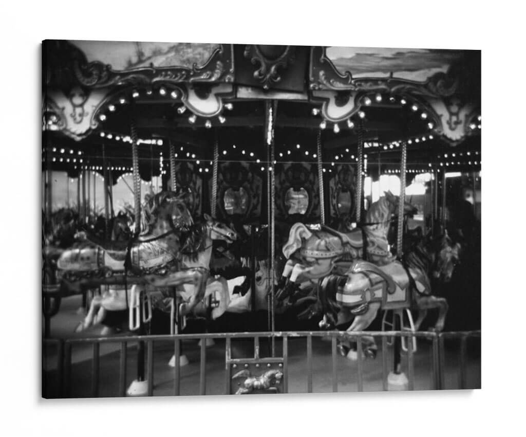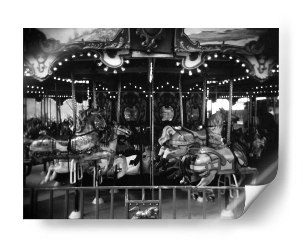Transporta tus sentidos a la nostalgia y la maravilla con "Carrusel II", una obra de arte en blanco y negro que captura la magia atemporal de un carrusel. Jim Christensen, con su ojo experto, inmortaliza la elegancia detallada de los caballos mecánicos, sus elaboradas decoraciones y la atmósfera festiva pero melancólica de estos icónicos paseos. La fotografía, ejecutada en una paleta monocromática, realza las texturas y las luces, creando un juego de sombras que evoca recuerdos de la infancia y sueños de antaño. Cada caballo parece cobrar vida, invitándote a imaginar el movimiento circular y la música alegre que una vez resonó. Este cuadro decorativo es una pieza versátil, perfecta para añadir un toque de sofisticación vintage o un punto de interés artístico a cualquier espacio, ya sea una sala de estar moderna, un estudio o incluso una habitación infantil con un aire chic. "Carrusel II" no es solo una imagen, es una invitación a revivir la alegría y la inocencia, convirtiendo tu hogar en un refugio de arte y emociones. Su composición dinámica y el tratamiento nostálgico lo hacen ideal para aquellos que buscan una decoración de pared que hable de historias y evoque sentimientos profundos, aportando carácter y un toque artístico único a tu decoración.
