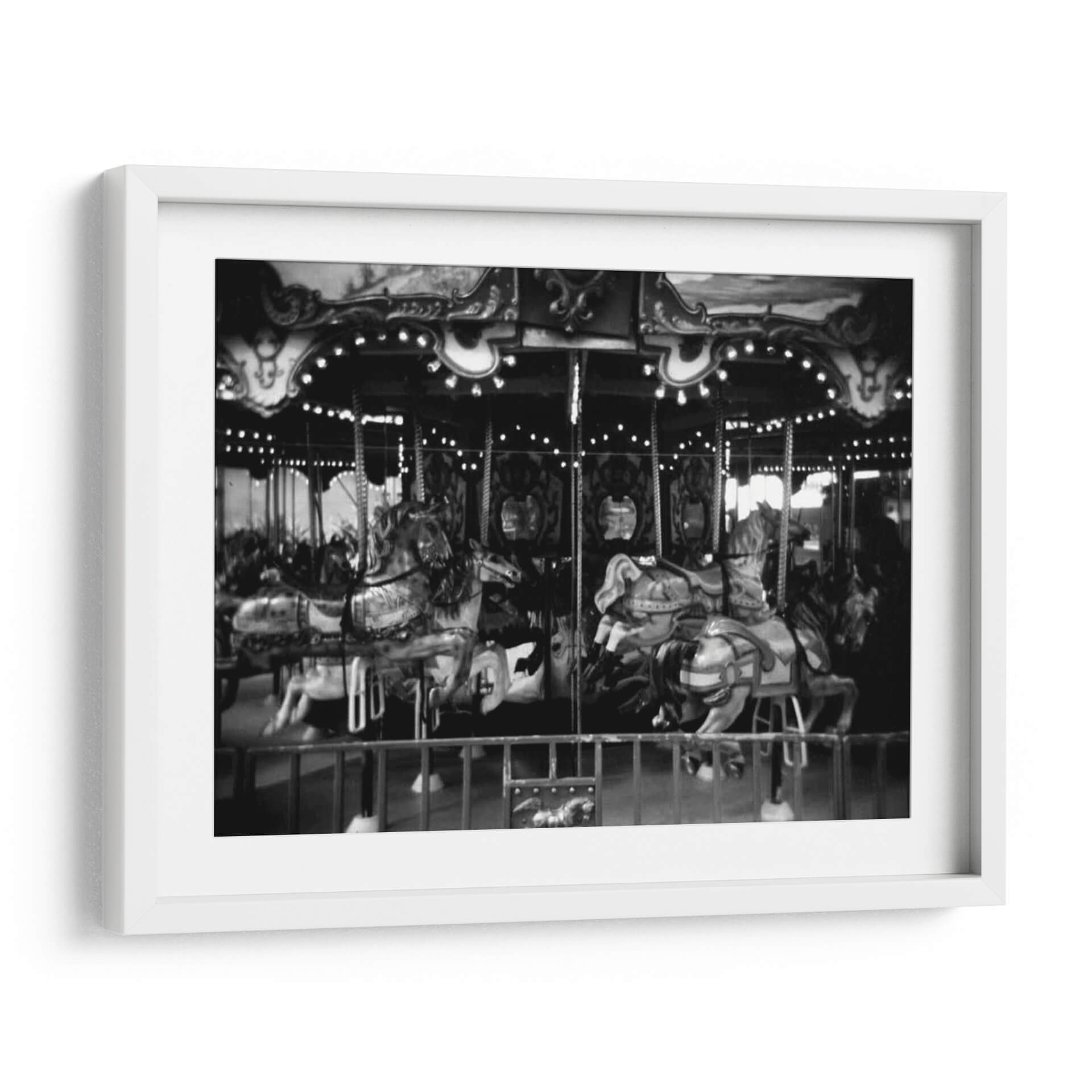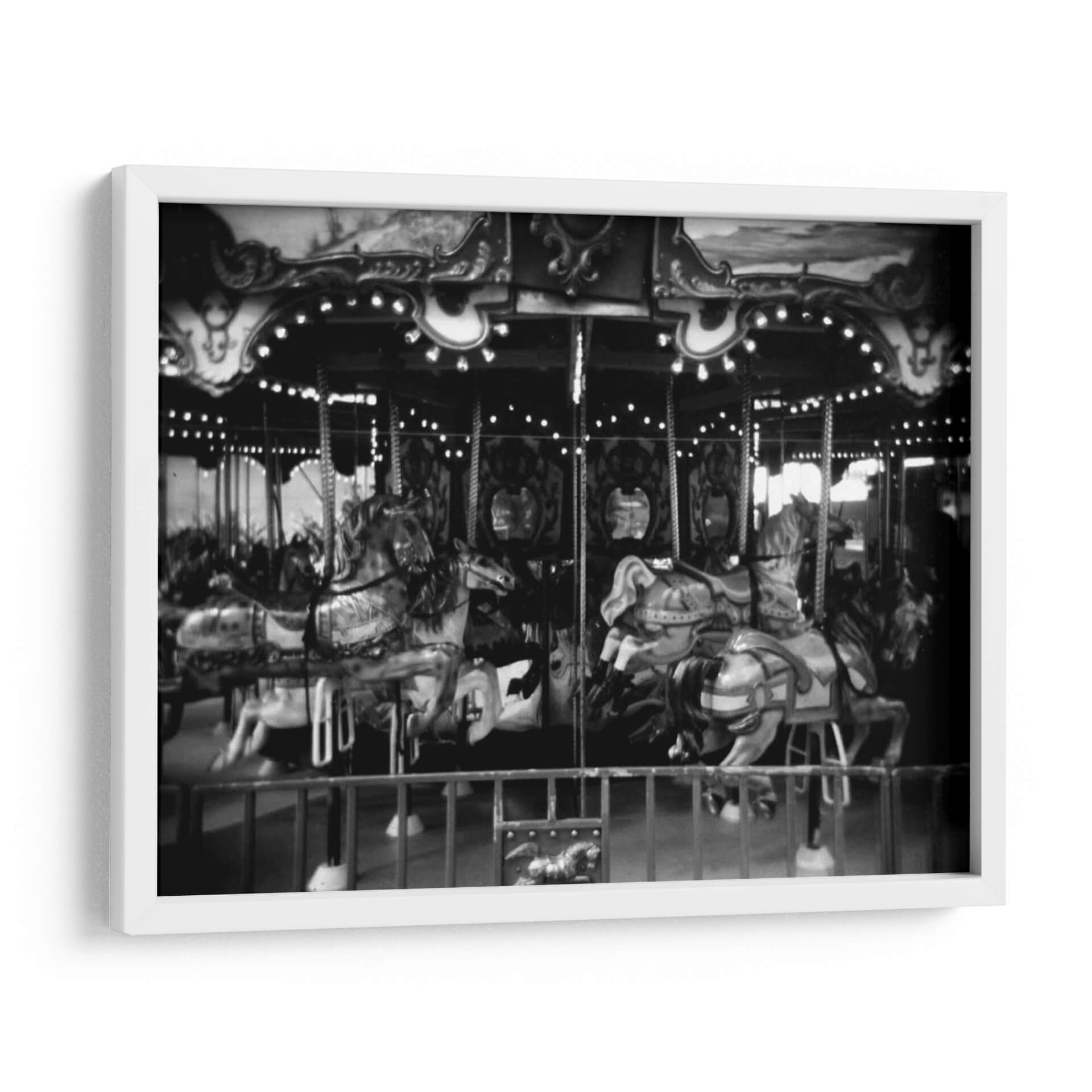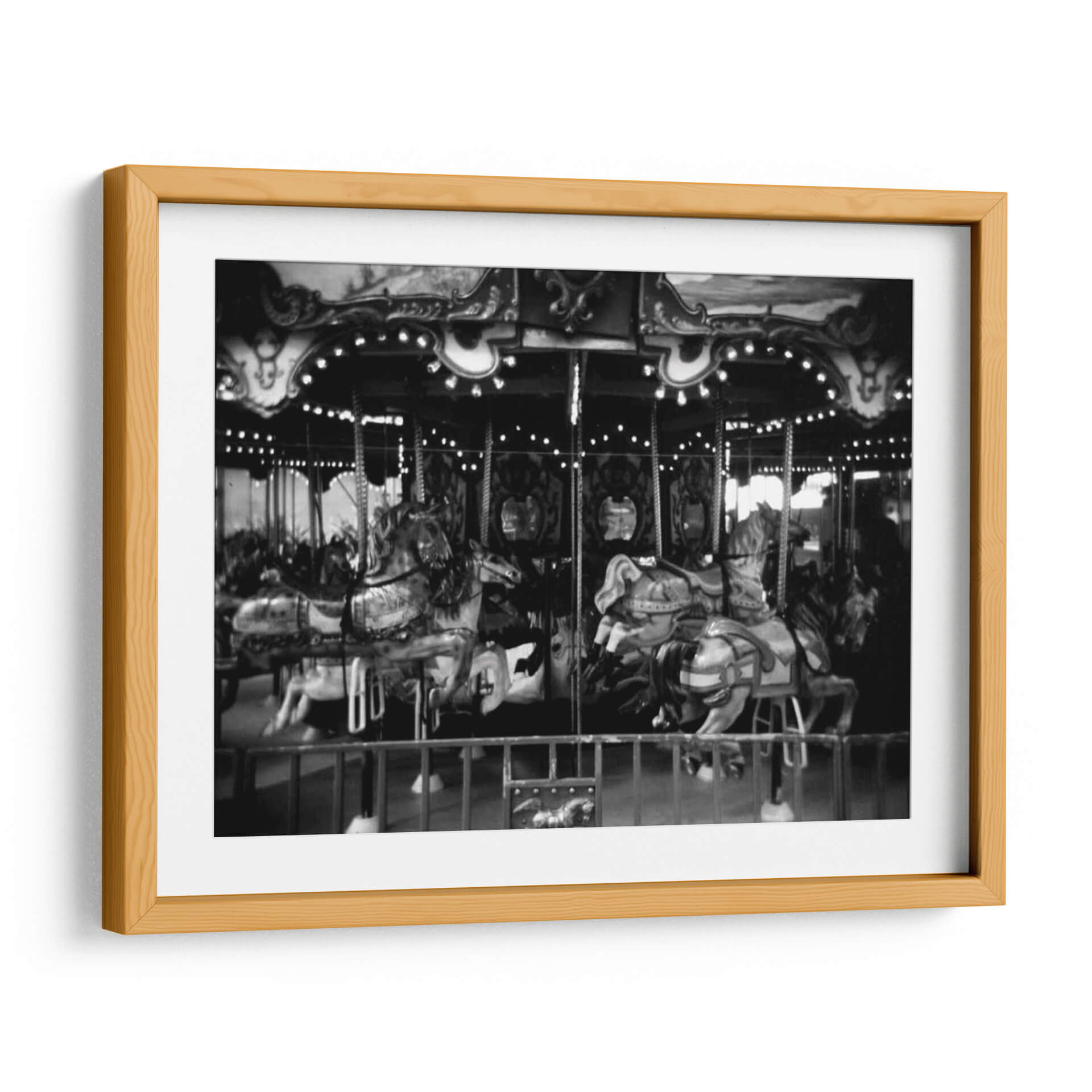 Transporta tus sentidos a la nostalgia y la maravilla con "Carrusel II", una obra de arte en blanco y negro que captura la magia atemporal de un carrusel. Jim Christensen, con su ojo experto, inmortaliza la elegancia detallada de los caballos mecánicos, sus elaboradas decoraciones y la atmósfera festiva pero melancólica de estos icónicos paseos. La fotografía, ejecutada en una paleta monocromática, realza las texturas y las luces, creando un juego de sombras que evoca recuerdos de la infancia y sueños de antaño. Cada caballo parece cobrar vida, invitándote a imaginar el movimiento circular y la música alegre que una vez resonó. Este cuadro decorativo es una pieza versátil, perfecta para añadir un toque de sofisticación vintage o un punto de interés artístico a cualquier espacio, ya sea una sala de estar moderna, un estudio o incluso una habitación infantil con un aire chic. "Carrusel II" no es solo una imagen, es una invitación a revivir la alegría y la inocencia, convirtiendo tu hogar en un refugio de arte y emociones. Su composición dinámica y el tratamiento nostálgico lo hacen ideal para aquellos que buscan una decoración de pared que hable de historias y evoque sentimientos profundos, aportando carácter y un toque artístico único a tu decoración.