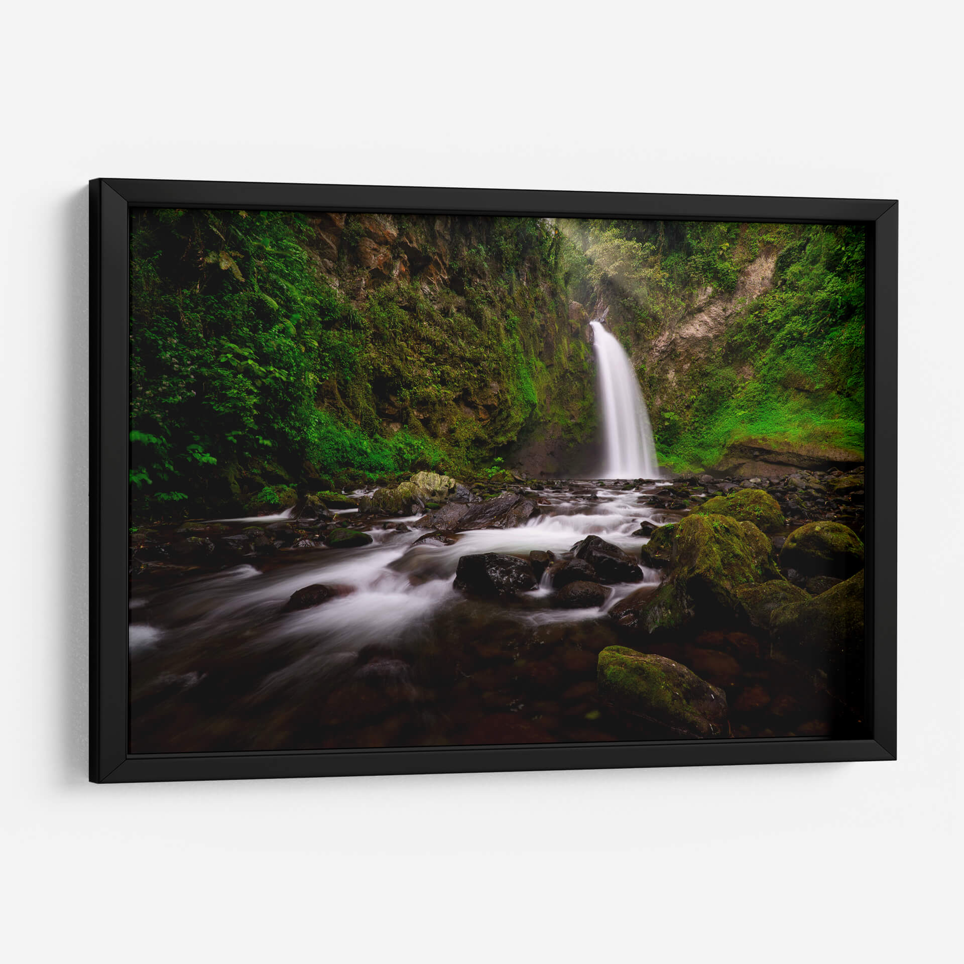 Sumérgete en la serenidad y la fuerza de la naturaleza con este cautivador cuadro decorativo que captura la majestuosidad de "Cascada la campana Mexico 2". La obra presenta una cascada imponente que se precipita elegantemente desde un acantilado exuberante, envuelto en una vegetación densa y vibrante. El agua, capturada en un movimiento etéreo gracias a una larga exposición, fluye sobre rocas cubiertas de musgo, creando un efecto sedoso y dinámico que invita a la contemplación. La paleta de colores se centra en los verdes profundos de la selva, los tonos tierra del acantilado y el blanco puro del agua en movimiento, evocando una sensación de paz y conexión con el entorno natural. La composición, que combina la verticalidad de la cascada con la horizontalidad del río rocoso, genera un equilibrio visual que atrae la mirada hacia el corazón de la escena. Este cuadro decorativo es ideal para añadir un toque de tranquilidad y belleza salvaje a cualquier espacio, transformando salones, dormitorios u oficinas en santuarios de calma y naturaleza. Su estilo fotográfico realista, con un toque artístico en el tratamiento del agua, lo convierte en una pieza única para amantes de los paisajes y la fotografía de naturaleza.