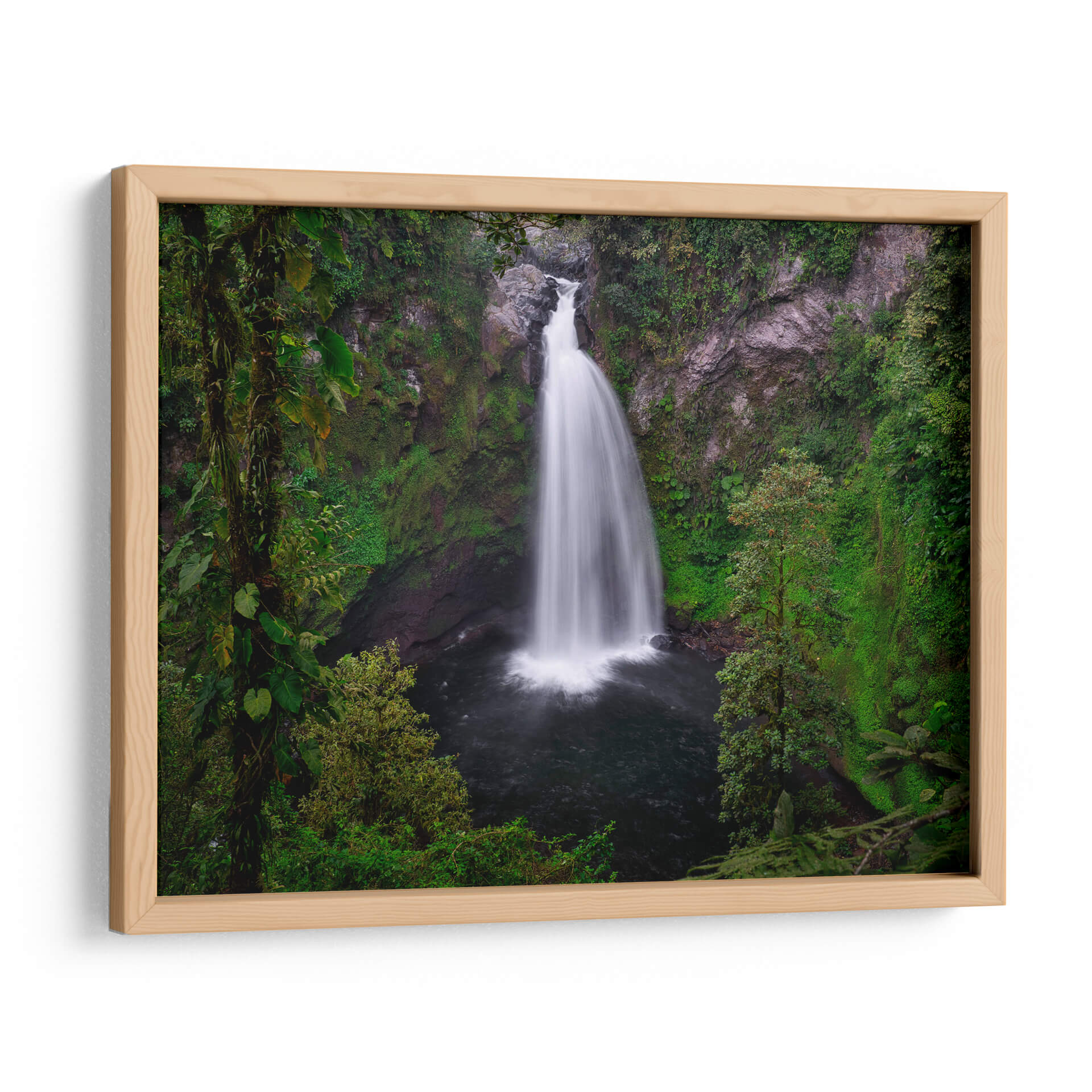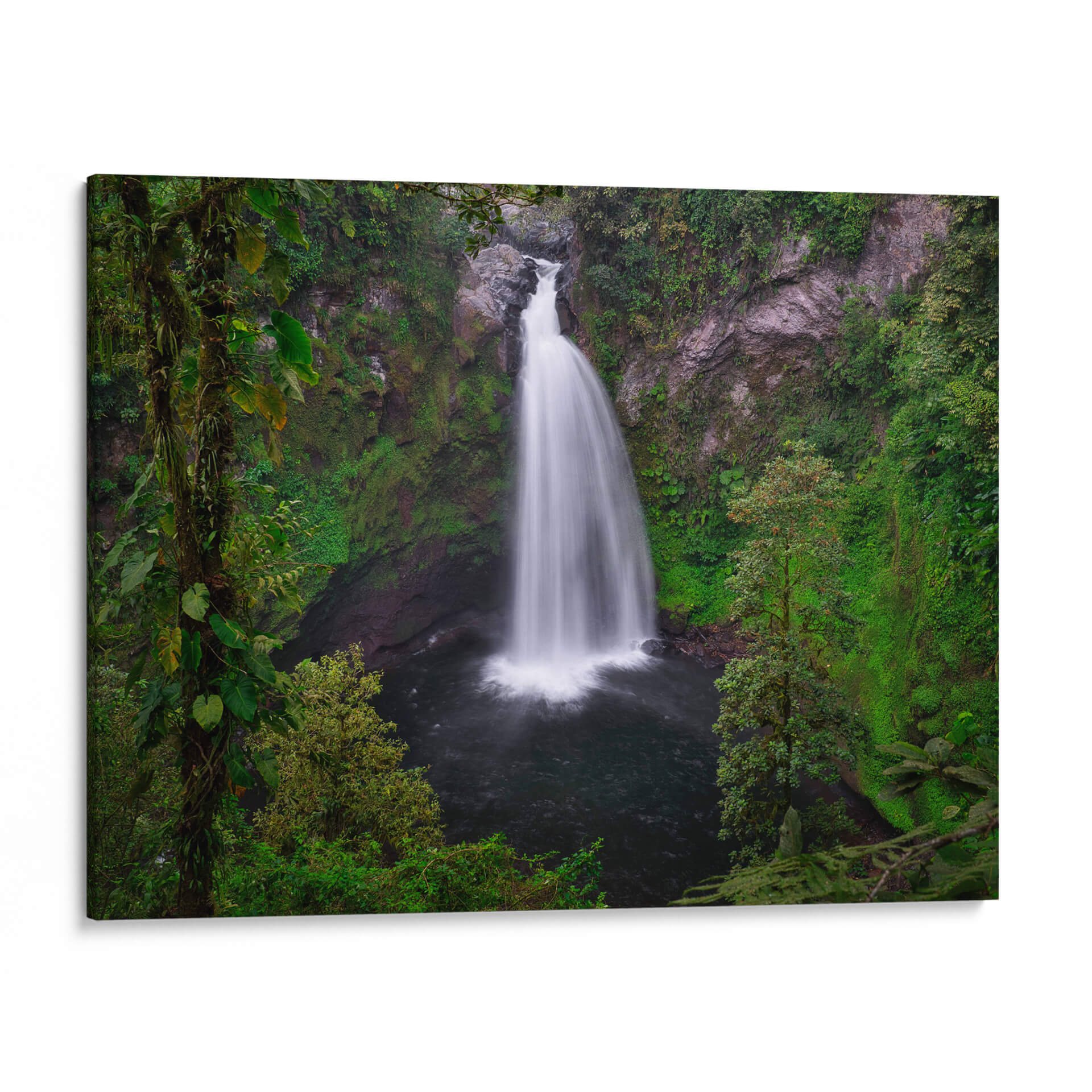 Sumérgete en la majestuosidad de la naturaleza con "Cascada la Campana, México", una obra de arte que captura la esencia de un paraíso tropical. Esta pieza evoca una profunda sensación de calma y asombro, transportándote directamente a un rincón sereno del mundo. La cascada, representada con un movimiento etéreo y sedoso gracias a la técnica de larga exposición, cae con fuerza controlada en una poza de aguas oscuras y profundas. El verde exuberante de la vegetación selvática que rodea la escena, con detalles intrincados de musgo y lianas colgantes sobre rocas escarpadas, crea un ambiente de misterio y vitalidad. La paleta de colores se centra en intensos verdes y tonos tierra, con el blanco puro del agua rompiendo la densidad del follaje, generando un contraste dinámico y refrescante. Este cuadro decorativo es perfecto para aquellos que buscan infundir sus espacios con la energía revitalizante de la naturaleza y un toque de aventura. Ideal para salas de estar, estudios o cualquier lugar donde se desee un escape visual hacia la tranquilidad y la belleza salvaje. Deja que esta impresionante vista natural transforme tu hogar en un santuario de paz y conexión con el entorno.