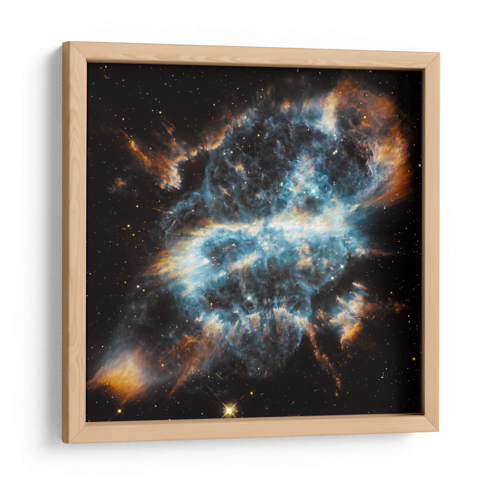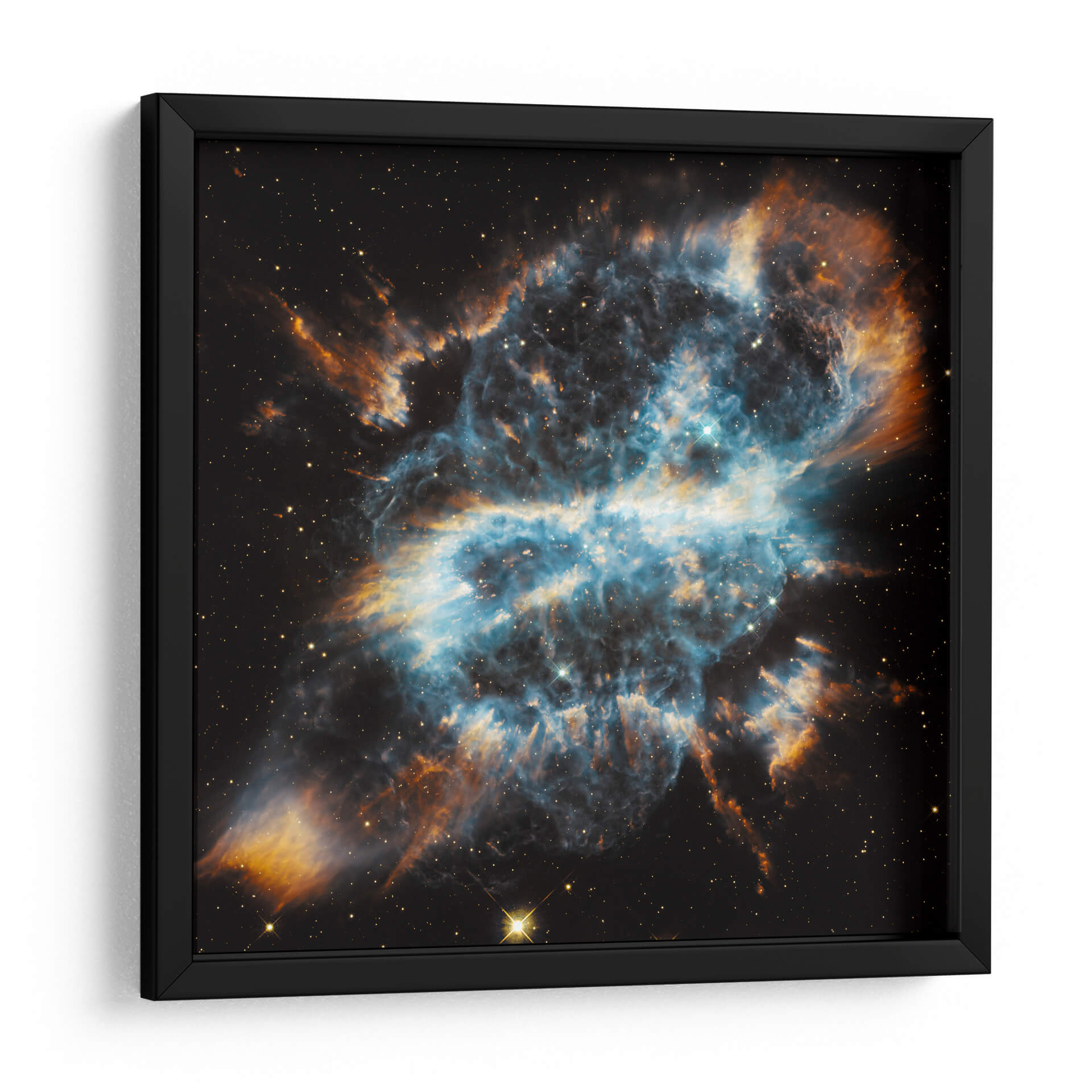 Sumérgete en la majestuosidad del cosmos con nuestro impresionante cuadro decorativo 'Celebración Cósmica'. Esta obra de arte, inspirada en la inmensidad del espacio, captura la belleza etérea de una nebulosa en plena ebullición. Las profundidades del espacio negro sirven de telón de fondo para un torbellino de colores vibrantes, donde los azules eléctricos y los dorados intensos se entrelazan en un espectáculo visual hipnótico. Las pinceladas, o más bien las formas etéreas, evocan la textura y la energía de las explosiones estelares y la formación de nuevas galaxias, creando una sensación de movimiento y dinamismo que cautiva la mirada. Este cuadro decorativo abstracto no es solo una pieza de arte, es una ventana a lo desconocido, invitando a la contemplación y al asombro. Su composición compleja y su paleta de colores audaz lo convierten en el punto focal perfecto para cualquier sala de estar moderna, estudio o incluso una oficina, añadiendo un toque de misterio y sofisticación celestial. Ideal para los amantes de la astronomía, la ciencia ficción o simplemente para aquellos que buscan una decoración de pared única y llena de significado.