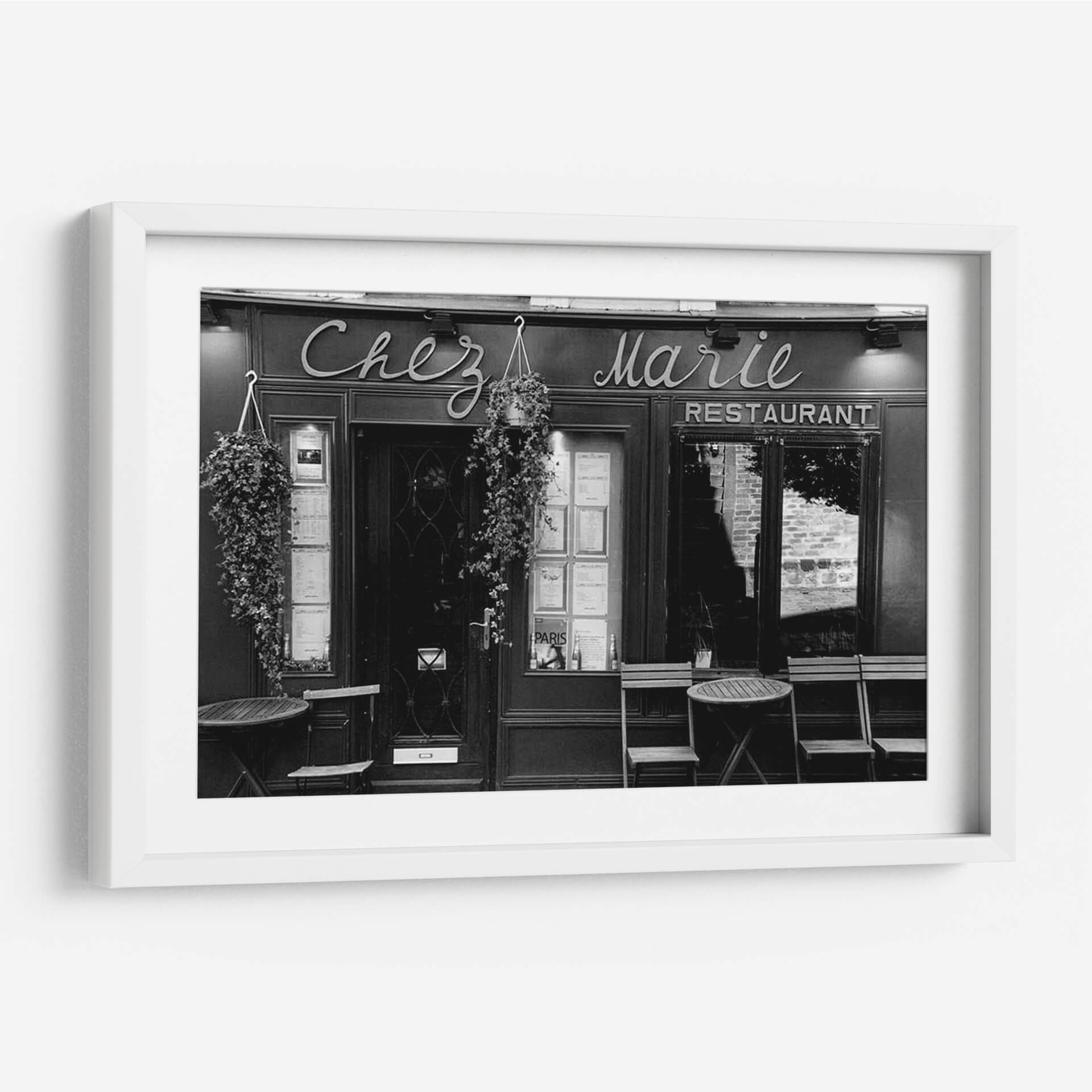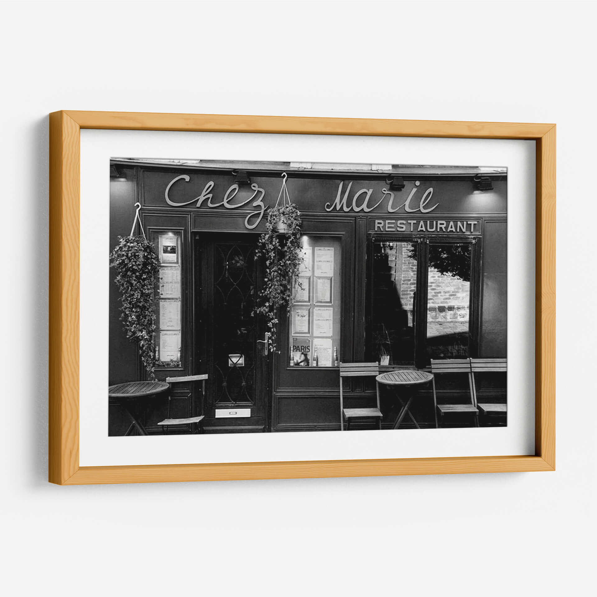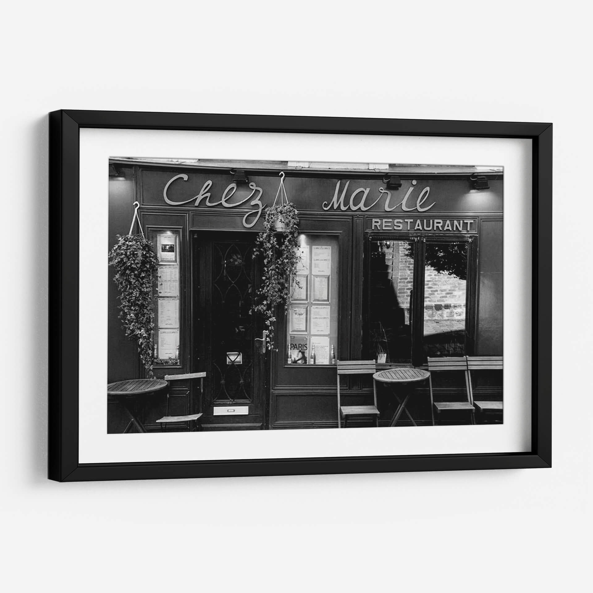 Sumérgete en el encanto atemporal de París con "Charm Cafe, Paris V", una cautivadora obra de arte de Laura DeNardo. Esta fotografía en blanco y negro captura la esencia de una típica cafetería parisina, invitándote a un viaje sensorial a las calles adoquinadas de la ciudad de la luz. La composición se centra en la fachada de un encantador restaurante, "Chez Marie", adornado con exuberantes plantas colgantes que añaden un toque de vida y color a la escena, a pesar de la estética monocromática. Las sillas y mesas dispuestas en la acera sugieren momentos de tertulia y disfrute, evocando una atmósfera de tranquilidad y nostalgia. La elegante tipografía del letrero y los detalles arquitectónicos sutiles invitan a la contemplación. "Charm Cafe, Paris V" es más que una simple imagen; es una invitación a sentir la atmósfera parisina, ideal para quienes buscan añadir un toque de sofisticación y romance a su hogar u oficina. Este cuadro decorativo transformará cualquier espacio en un refugio chic y lleno de historia, perfecto para salas de estar, comedores o estudios que anhelan un aire de elegancia europea. Deja que esta pieza transporte tus sentidos y despierte tu imaginación.