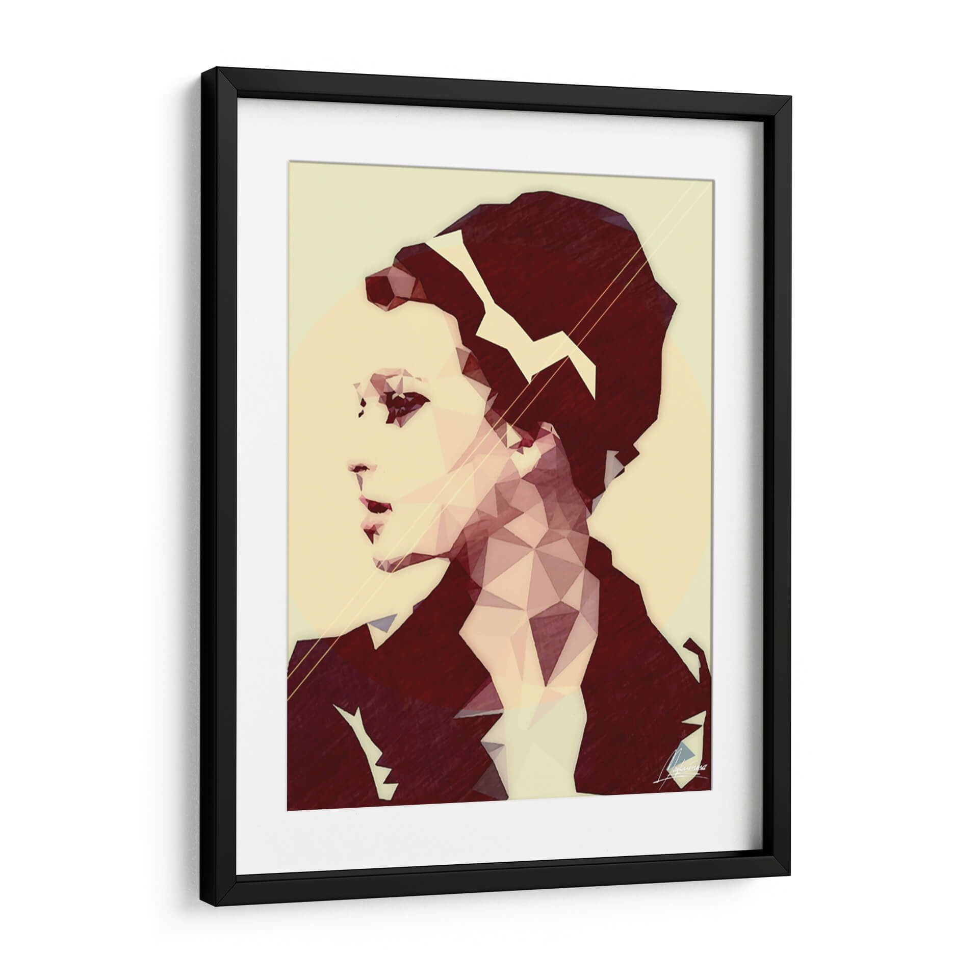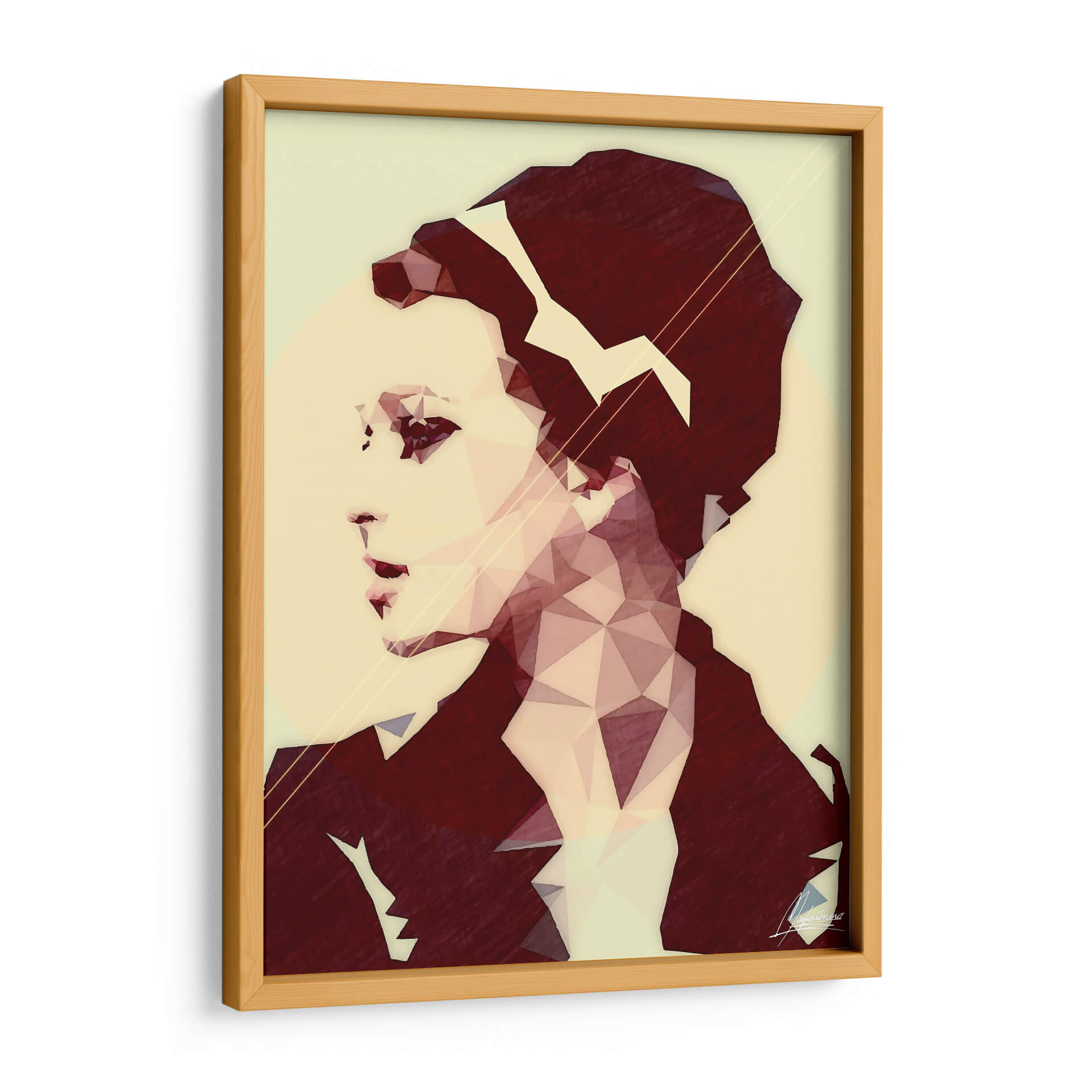 Sumérgete en la elegancia moderna con 'CHICMOOD', una obra de arte digital que redefine el retrato contemporáneo. Esta pieza, creada por Mayka Ienova, cautiva por su audaz interpretación geométrica de una figura femenina, utilizando un estilo de bajo poligonaje que aporta una textura única y un aire vanguardista. La paleta de colores, dominada por tonos cálidos y apagados como el beige, el rosa pálido y el borgoña intenso, crea una atmósfera sofisticada y enigmática. Las líneas geométricas sutiles y el uso de un círculo difuminado en el fondo añaden profundidad y un toque etéreo, complementando la composición nítida del rostro y el cabello. 'CHICMOOD' es más que un simple cuadro; es una declaración de estilo, ideal para espacios que buscan un toque de distinción y arte moderno. Su diseño versátil lo convierte en la elección perfecta para decorar salones, dormitorios o estudios, aportando un punto focal intrigante y lleno de personalidad. Descubre cómo esta pieza puede transformar tu hogar en una galería de arte personal, inspirando conversaciones y admiración.