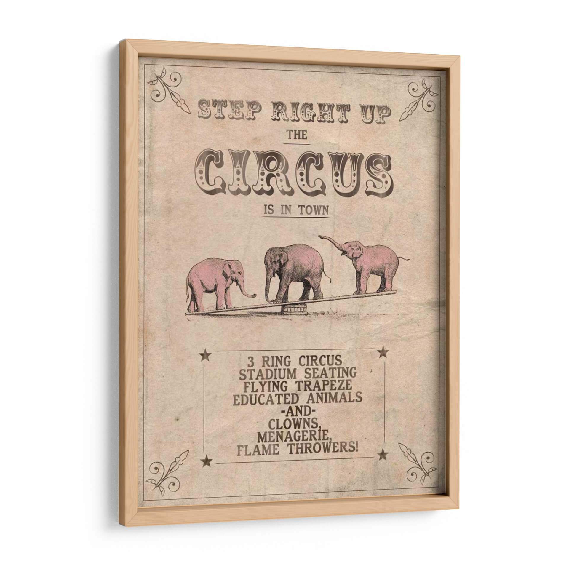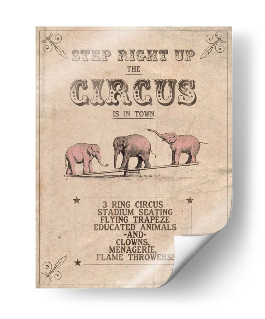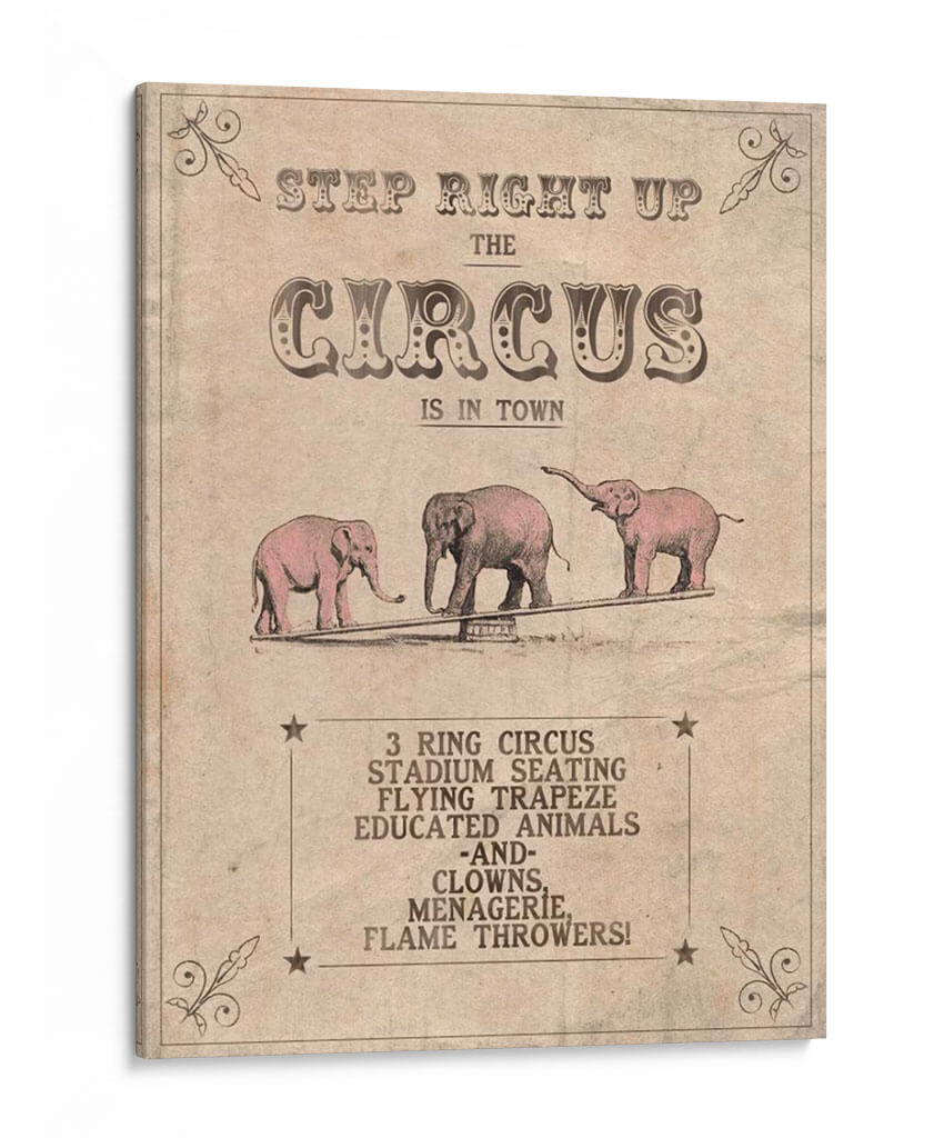 Sumérgete en la nostalgia y la emoción del circo con nuestro cautivador cuadro decorativo 'Circo Vintage I'. Esta obra de arte, creada por Grace Popp, evoca la magia de los espectáculos de antaño con una paleta de colores cálidos y un estilo gráfico distintivo. Tres elefantes rosados en un delicado equilibrio sobre una viga central capturan la atención, mientras que el texto desgastado que anuncia "THE CIRCUS IS IN TOWN" transporta al espectador a una época de maravillas y entretenimiento. La composición, con sus detalles ornamentales y su textura similar al papel antiguo, confiere un aire auténtico y retro. Este cuadro es perfecto para añadir un toque de encanto y carácter a cualquier espacio, desde una sala de estar con un estilo ecléctico hasta un estudio o una habitación infantil. Su capacidad para evocar recuerdos y despertar la imaginación lo convierte en una pieza única que no solo decora, sino que también cuenta una historia. El 'Circo Vintage I' es una elección ideal para quienes buscan una decoración de pared que sea a la vez llamativa y llena de personalidad, invitando a soñar con aventuras y espectáculos inolvidables. Ideal para amantes del arte vintage, decoradores de interiores y cualquiera que desee infundir un espíritu lúdico y nostálgico en su hogar u oficina.