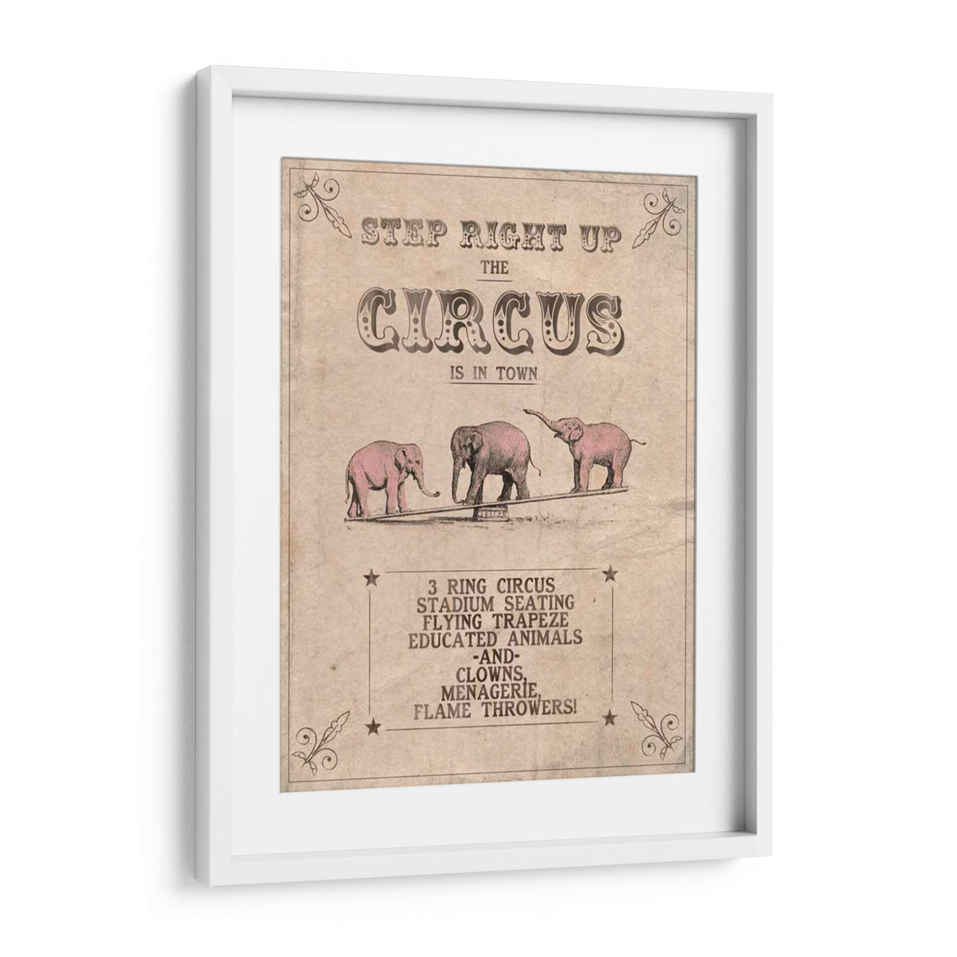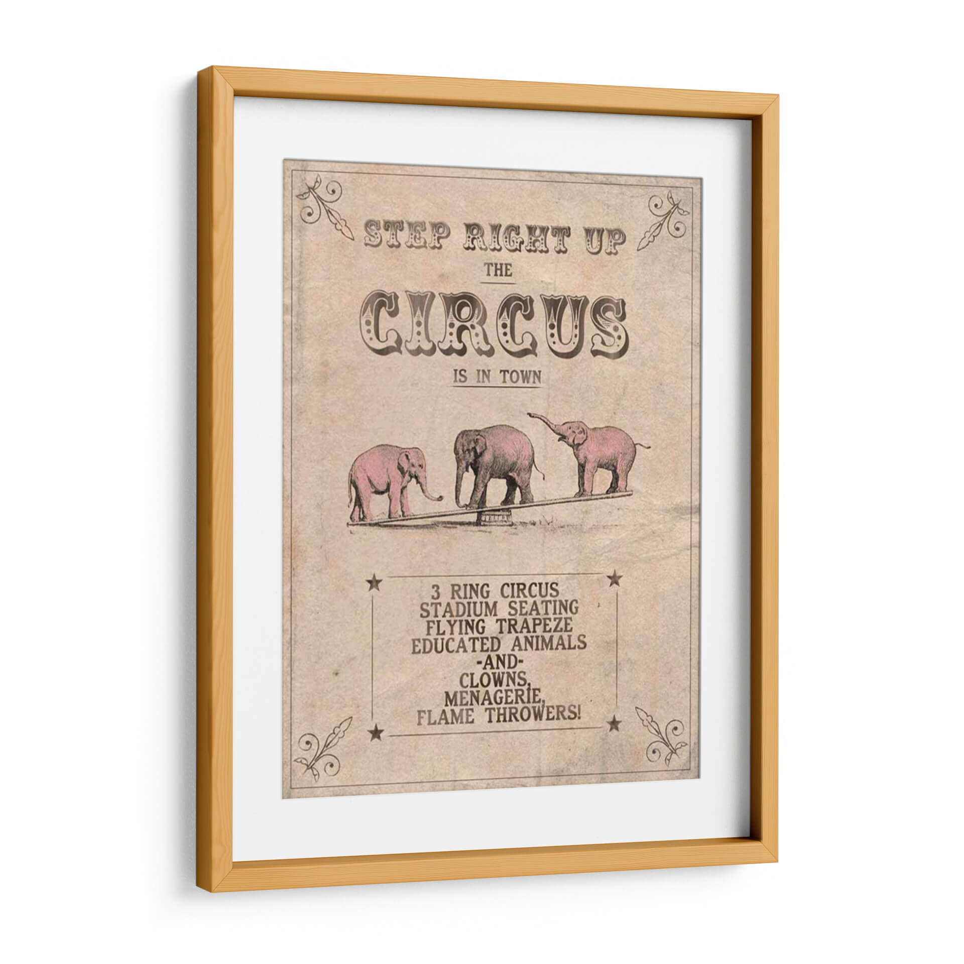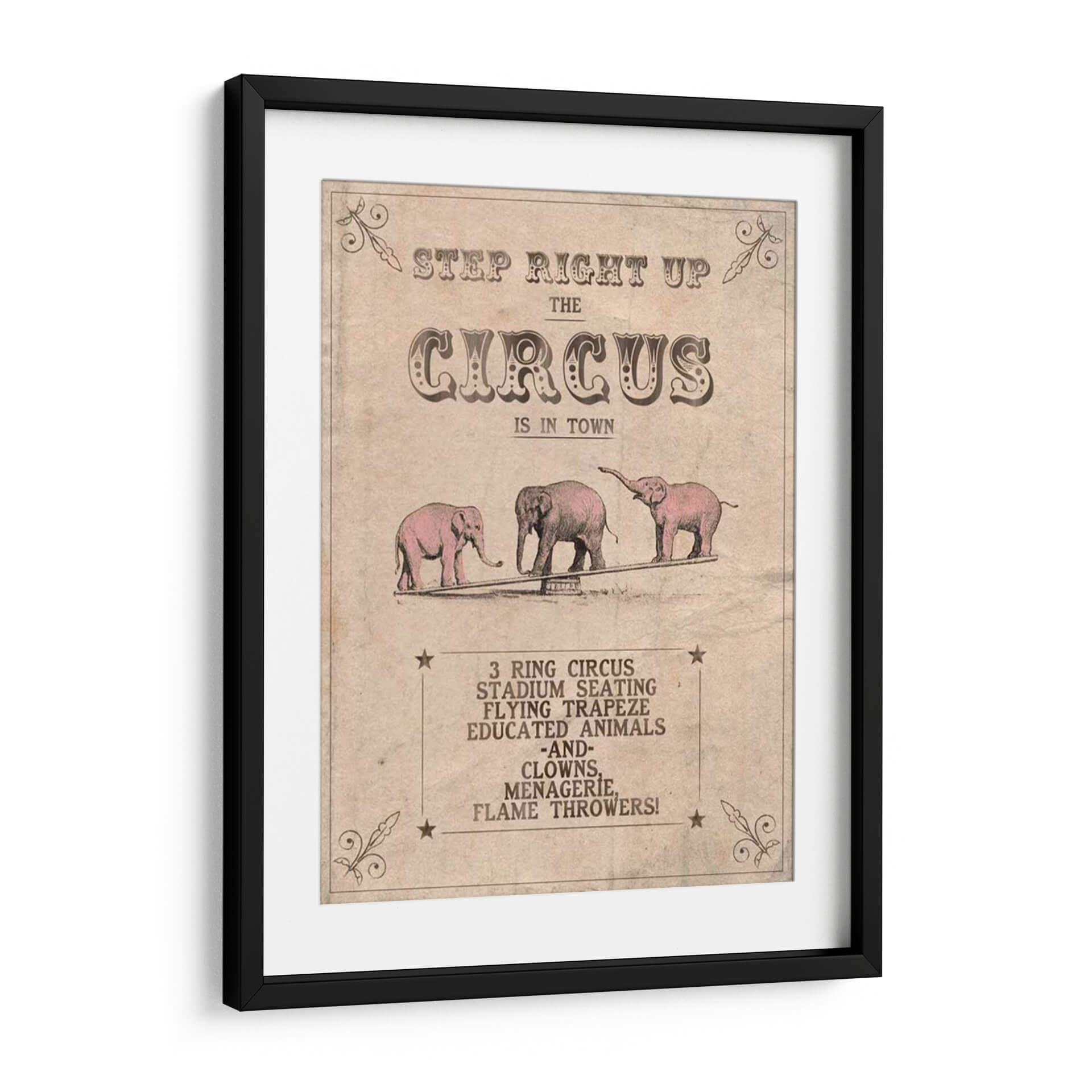 Sumérgete en la nostalgia y la emoción del circo con nuestro cautivador cuadro decorativo 'Circo Vintage I'. Esta obra de arte, creada por Grace Popp, evoca la magia de los espectáculos de antaño con una paleta de colores cálidos y un estilo gráfico distintivo. Tres elefantes rosados en un delicado equilibrio sobre una viga central capturan la atención, mientras que el texto desgastado que anuncia "THE CIRCUS IS IN TOWN" transporta al espectador a una época de maravillas y entretenimiento. La composición, con sus detalles ornamentales y su textura similar al papel antiguo, confiere un aire auténtico y retro. Este cuadro es perfecto para añadir un toque de encanto y carácter a cualquier espacio, desde una sala de estar con un estilo ecléctico hasta un estudio o una habitación infantil. Su capacidad para evocar recuerdos y despertar la imaginación lo convierte en una pieza única que no solo decora, sino que también cuenta una historia. El 'Circo Vintage I' es una elección ideal para quienes buscan una decoración de pared que sea a la vez llamativa y llena de personalidad, invitando a soñar con aventuras y espectáculos inolvidables. Ideal para amantes del arte vintage, decoradores de interiores y cualquiera que desee infundir un espíritu lúdico y nostálgico en su hogar u oficina.
