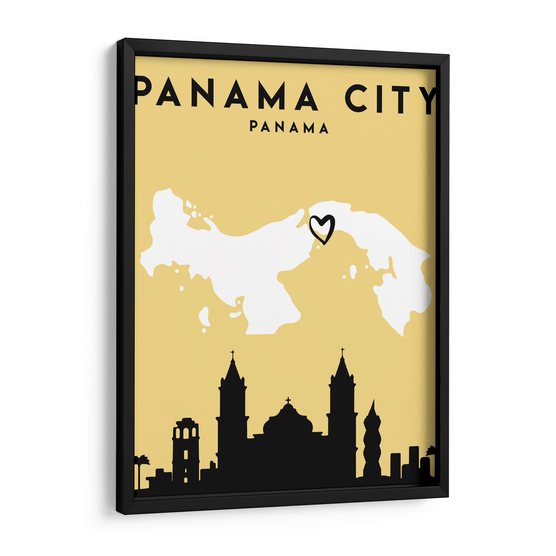 Celebra la vibrante energía de la capital panameña con este cautivador cuadro decorativo de la Ciudad de Panamá. La obra presenta un mapa estilizado del país, destacando la ubicación de la ciudad con un delicado corazón negro, evocando un sentido de pertenencia y afecto. En la base, una silueta urbana minimalista en negro representa los icónicos edificios y la arquitectura distintiva de la metrópoli, creando un contraste visual impactante sobre un fondo de color dorado cálido y suave. Esta paleta de colores, con el contraste entre el dorado, el blanco del mapa y el negro de los detalles, aporta una atmósfera de sofisticación y modernidad. El estilo gráfico y limpio de la pieza la convierte en una adición versátil para cualquier espacio, ideal para infundir un toque de cosmopolitismo y calidez a tu sala de estar, estudio u oficina. Un recordatorio visual del encanto de una ciudad en crecimiento, perfecta para quienes aman viajar o buscan una conexión especial con Panamá. Añade este toque de estilo único a tu decoración y deja que la esencia de Panamá ilumine tu hogar.