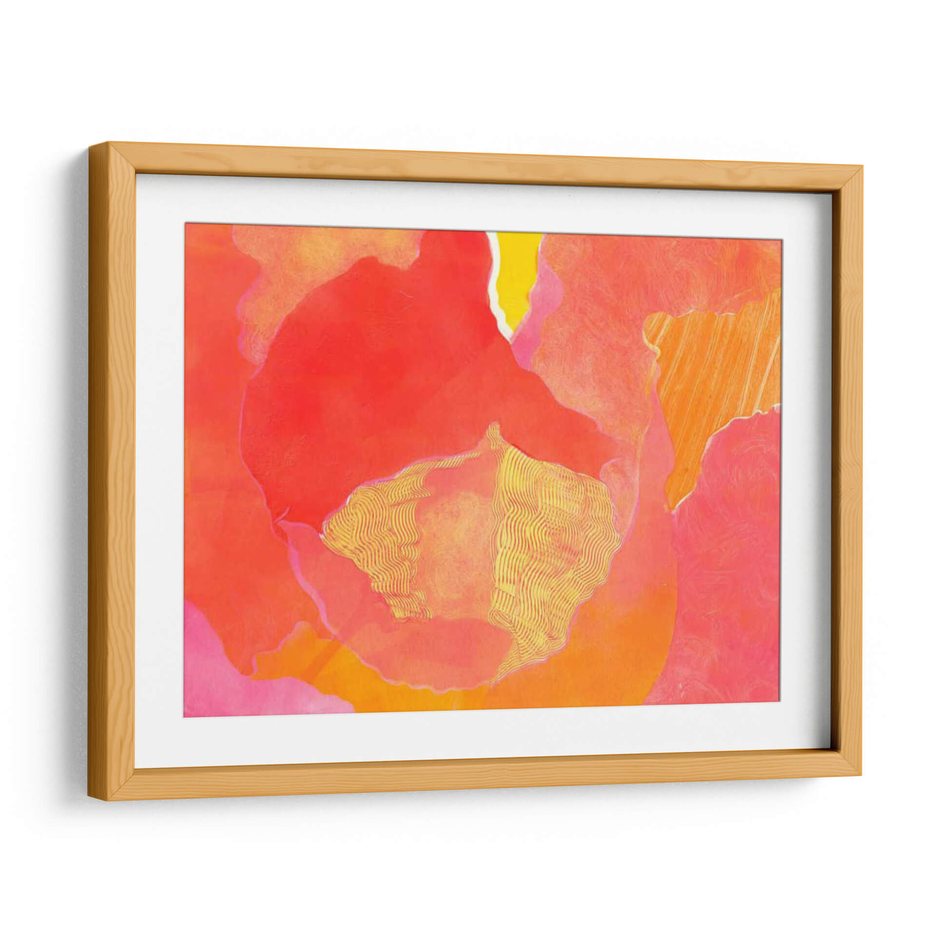 Sumérgete en la vibrante calidez de "Col Rosa Ii", una obra de arte contemporáneo que irradia energía y pasión. Carolyn Roth nos presenta una composición abstracta donde las formas orgánicas y fluidas se entrelazan en una explosión de tonos rojizos, naranjas y rosados, con toques luminosos de amarillo. La textura visual, rica y dinámica, evoca la delicadeza de los pétalos de una flor o las suaves olas de un atardecer cálido. Cada pincelada y capa de color invita a la contemplación, creando una atmósfera de alegría y vitalidad. Este cuadro decorativo es perfecto para añadir un punto focal audaz y sofisticado a tu sala de estar, estudio u oficina. Su diseño abstracto y su audaz paleta de colores lo convierten en una pieza versátil, capaz de complementar tanto decoraciones modernas como eclécticas. "Col Rosa Ii" no es solo una imagen, es una experiencia sensorial que transformará cualquier espacio en un lienzo de emociones positivas y estilo inconfundible. Añade esta pieza única a tu colección y deja que su fuerza expresiva eleve tu entorno diario.