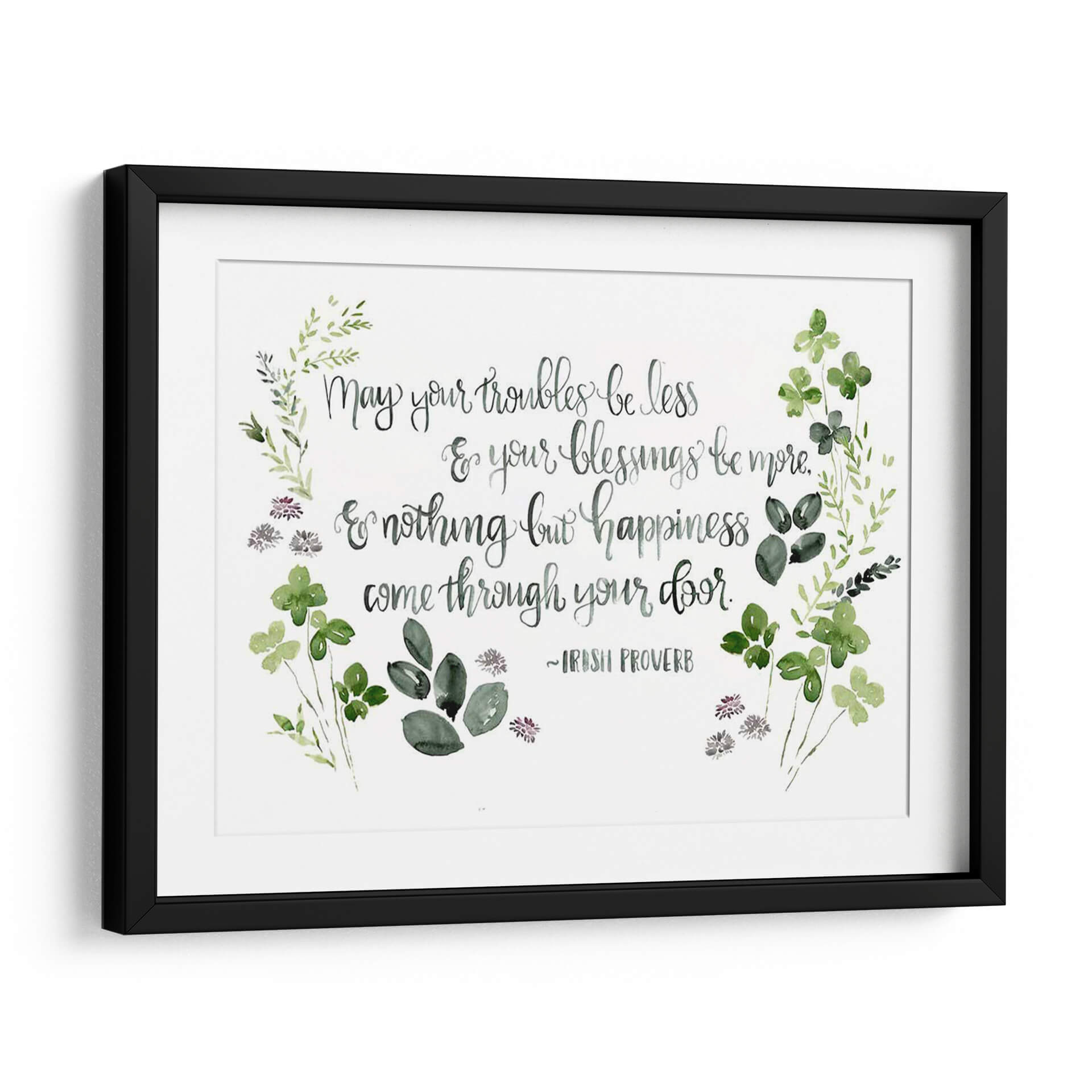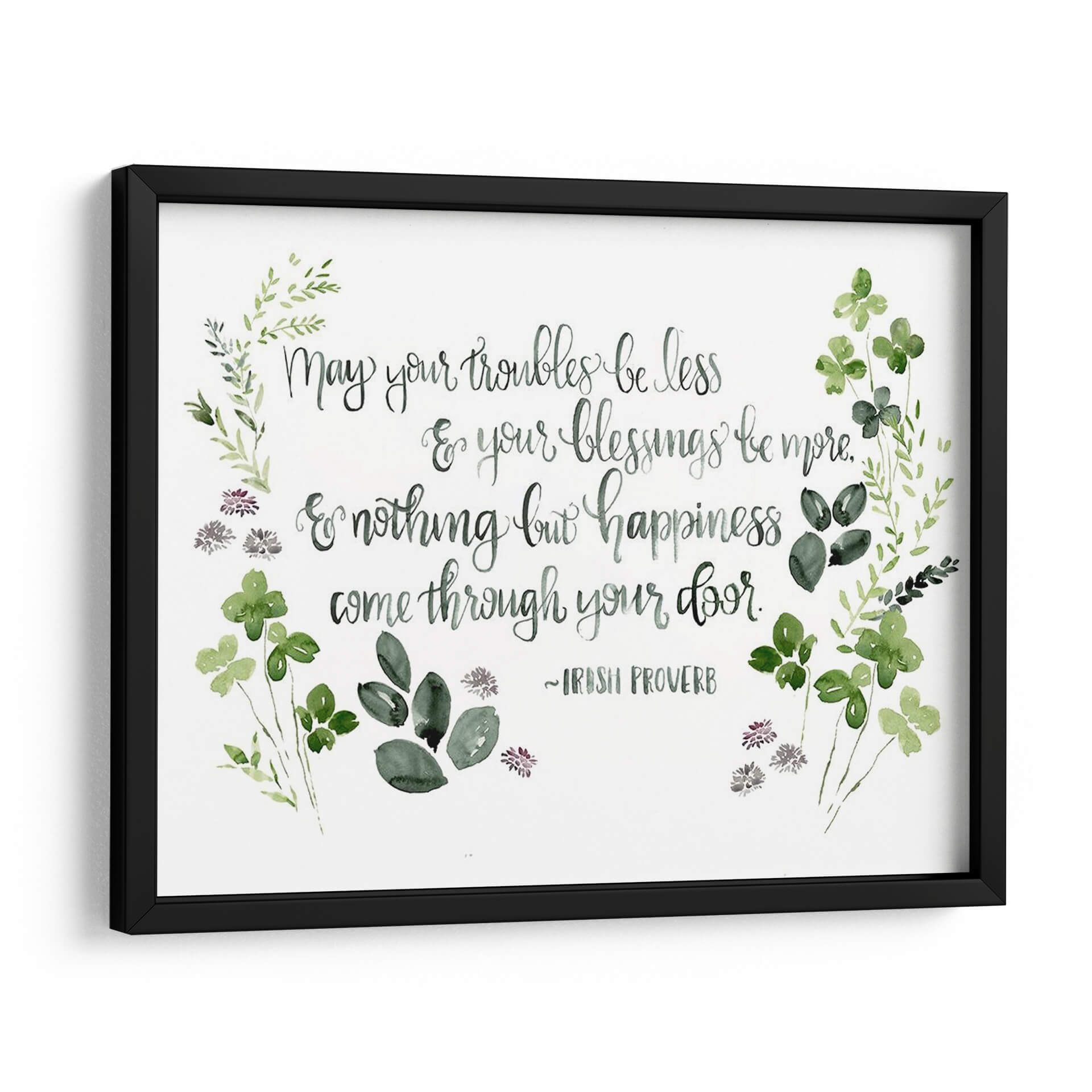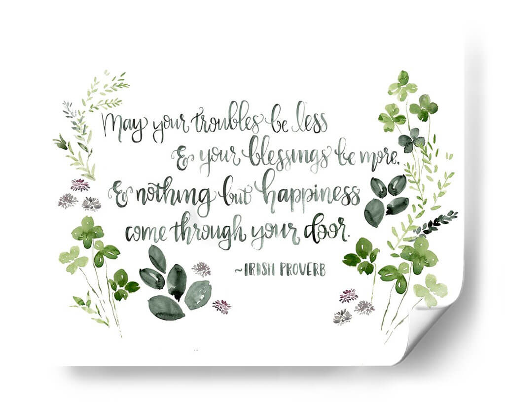 Inunda tu hogar con positividad y encanto con este inspirador cuadro decorativo "Colección De Dichos De Trébol A" de Jennifer Paxton Parker. Esta obra captura un proverbio irlandés clásico, "May your troubles be less & your blessings be more, & nothing but happiness come through your door", con una caligrafía elegante y delicada que evoca serenidad y esperanza. La acuarela se complementa con un motivo de tréboles y vegetación en tonos verdes y violáceos, creando una atmósfera fresca y natural. Ideal para añadir un toque de buena suerte y alegría a tu sala de estar, dormitorio, pasillo o incluso a tu espacio de trabajo. Este cuadro decorativo no solo embellece tus paredes, sino que también actúa como un recordatorio diario de la abundancia y la felicidad. Su estilo suave y contemporáneo lo hace versátil, integrándose perfectamente en decoraciones rústicas, bohemias o modernas. Transforma cualquier rincón en un santuario de paz y bienestar con esta pieza única que irradia optimismo y calidez. Es el regalo perfecto para cualquier ocasión especial, transmitiendo los mejores deseos a tus seres queridos.