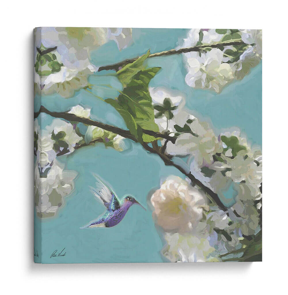 Sumérgete en la delicadeza y el movimiento capturado en "Colibrí Florales II", una obra de arte que evoca la serenidad de la naturaleza con un toque vibrante. Este cuadro decorativo presenta un colibrí iridiscente en pleno vuelo, posándose cerca de exuberantes flores blancas y ramas frondosas contra un sereno fondo azul cielo. La técnica pictórica, con pinceladas visibles y una paleta de colores que oscila entre los tonos púrpuras, azules y verdes del colibrí y el blanco luminoso de las flores, crea una atmósfera de ensueño y vitalidad. Es una pieza ideal para infundir calma y un toque de color orgánico en cualquier espacio, desde una sala de estar moderna hasta un dormitorio acogedor o una oficina que busque inspiración natural. "Colibrí Florales II" no es solo una decoración de pared, sino una ventana a la belleza efímera de la naturaleza, invitando a la contemplación y al disfrute de los pequeños detalles. Añade esta obra maestra de Rick Novak a tu colección y transforma tu hogar en un oasis de tranquilidad y estilo contemporáneo, perfecto para quienes aprecian el arte con alma y la delicadeza de la vida silvestre.