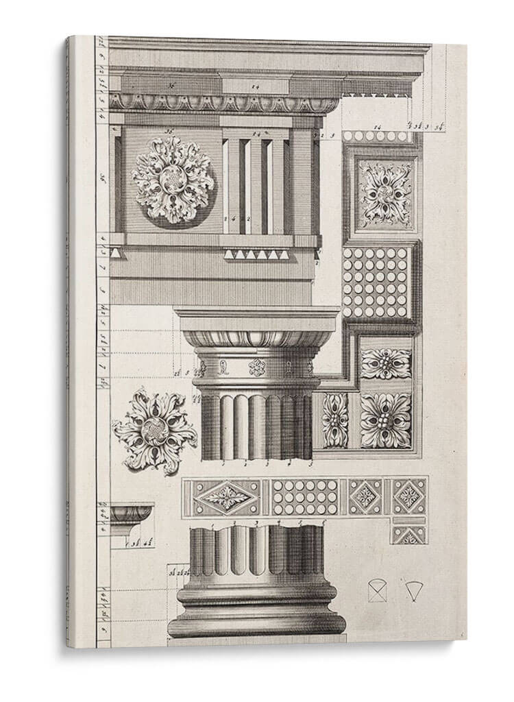 Embellezca su espacio con la elegancia atemporal del cuadro decorativo "Columna Y Rosetones" del artista Abraham Swan. Esta obra maestra visual captura la complejidad y la belleza de la arquitectura clásica, presentando detallados estudios de columnas dóricas, capiteles ornamentados y delicados rosetones. La paleta de colores monocromática, en tonos sepia y negros, evoca una sensación de historia y sofisticación, perfecta para añadir un toque de distinción a cualquier ambiente. Su composición, que emula un grabado arquitectónico, ofrece una perspectiva única y educativa sobre los elementos decorativos que han definido estilos a lo largo de los siglos. Ideal para salones, estudios o bibliotecas, este cuadro decorativo no solo es una pieza de arte, sino también una declaración de buen gusto y aprecio por la historia del arte y la arquitectura. Incorpore esta pieza única para infundir a su hogar u oficina un aire de refinamiento y un encanto clásico que nunca pasa de moda. Una elección perfecta para amantes del arte clásico, la arquitectura o quienes buscan una decoración con carácter.