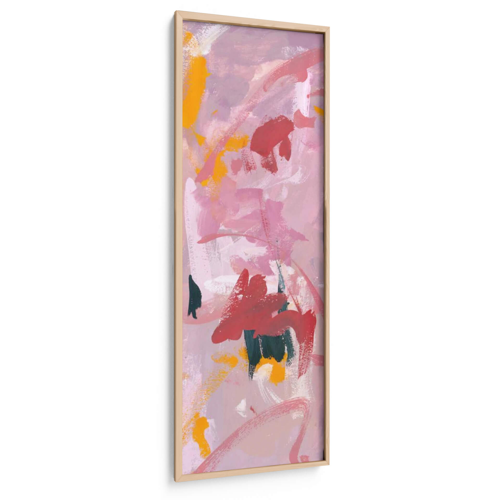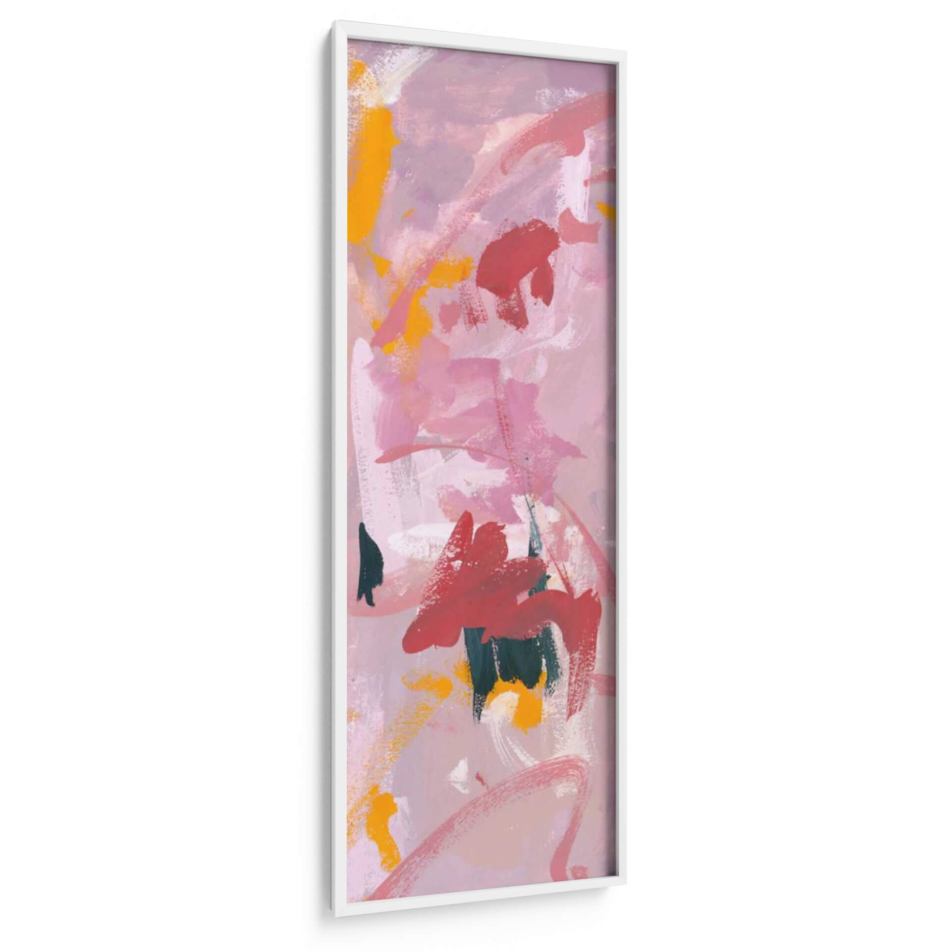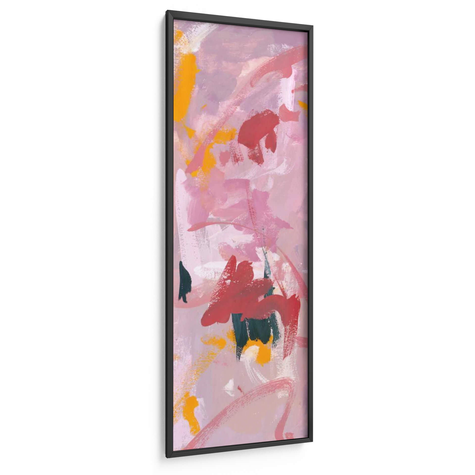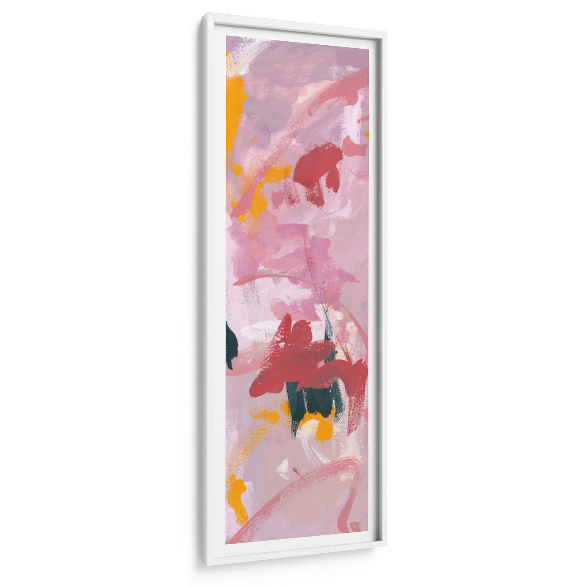 Sumérgete en la vibrante y enérgica "Composición 1A" de Melissa Wang, una obra de arte contemporáneo que irradia alegría y dinamismo. Esta pieza vertical se caracteriza por su audaz pincelada abstracta, donde pinceladas expresivas en tonos rojos intensos y amarillos vibrantes interactúan con un fondo suave en lavanda y rosa pálido. Los contrastes de color y textura crean una composición visualmente cautivadora que invita a la interpretación personal. Los trazos audaces y gestuales sugieren un movimiento espontáneo, aportando una sensación de vitalidad y optimismo al espacio que decora. "Composición 1A" es ideal para aquellos que buscan añadir un toque de color y carácter a sus interiores, ya sea en una sala de estar moderna, un estudio creativo o un dormitorio contemporáneo. Su formato alargado la hace perfecta para pasillos estrechos o como un acento vertical en paredes más amplias. Esta obra de arte abstracto moderno es una excelente manera de expresar individualidad y crear un punto focal que estimule la conversación y la admiración. Descubre cómo la maestría de Melissa Wang puede transformar tu hogar en un espacio lleno de arte y personalidad, inyectando energía y sofisticación a través de formas y colores cautivadores.