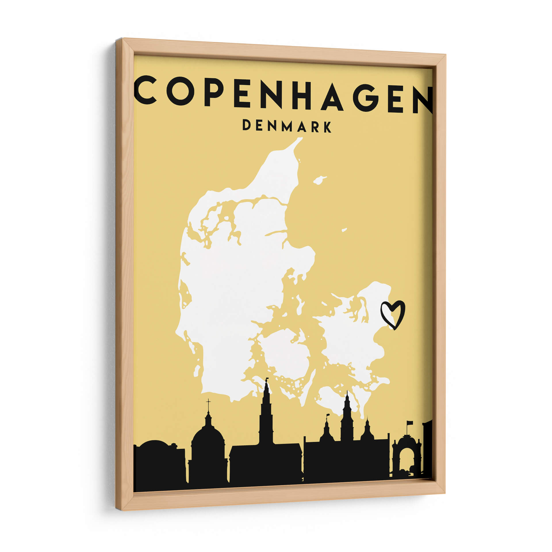 Celebra el encanto de la capital danesa con este cautivador cuadro decorativo de "Copenhagen - Mapas de amor de la ciudad 23". La obra presenta una silueta de la ciudad de Copenhague, destacando su icónico horizonte arquitectónico sobre un fondo de un mapa estilizado de Dinamarca. El uso de una paleta de colores cálida y minimalista, con un fondo dorado suave y la silueta en negro intenso, crea una atmósfera sofisticada y acogedora. Un pequeño corazón dibujado a mano añade un toque personal y romántico, sugiriendo una conexión especial con esta vibrante ciudad. Este cuadro decorativo es perfecto para evocar recuerdos de viajes, sueños de exploración o simplemente para añadir un toque de elegancia escandinava a cualquier espacio. Su diseño limpio y moderno lo hace ideal para salones, oficinas o dormitorios, aportando un aire de inspiración y aventura. Incorpora un estilo gráfico contemporáneo que atraerá a los amantes de la decoración minimalista y de viajes. Añade esta pieza única a tu colección y deja que Copenhague inspire tu día a día.