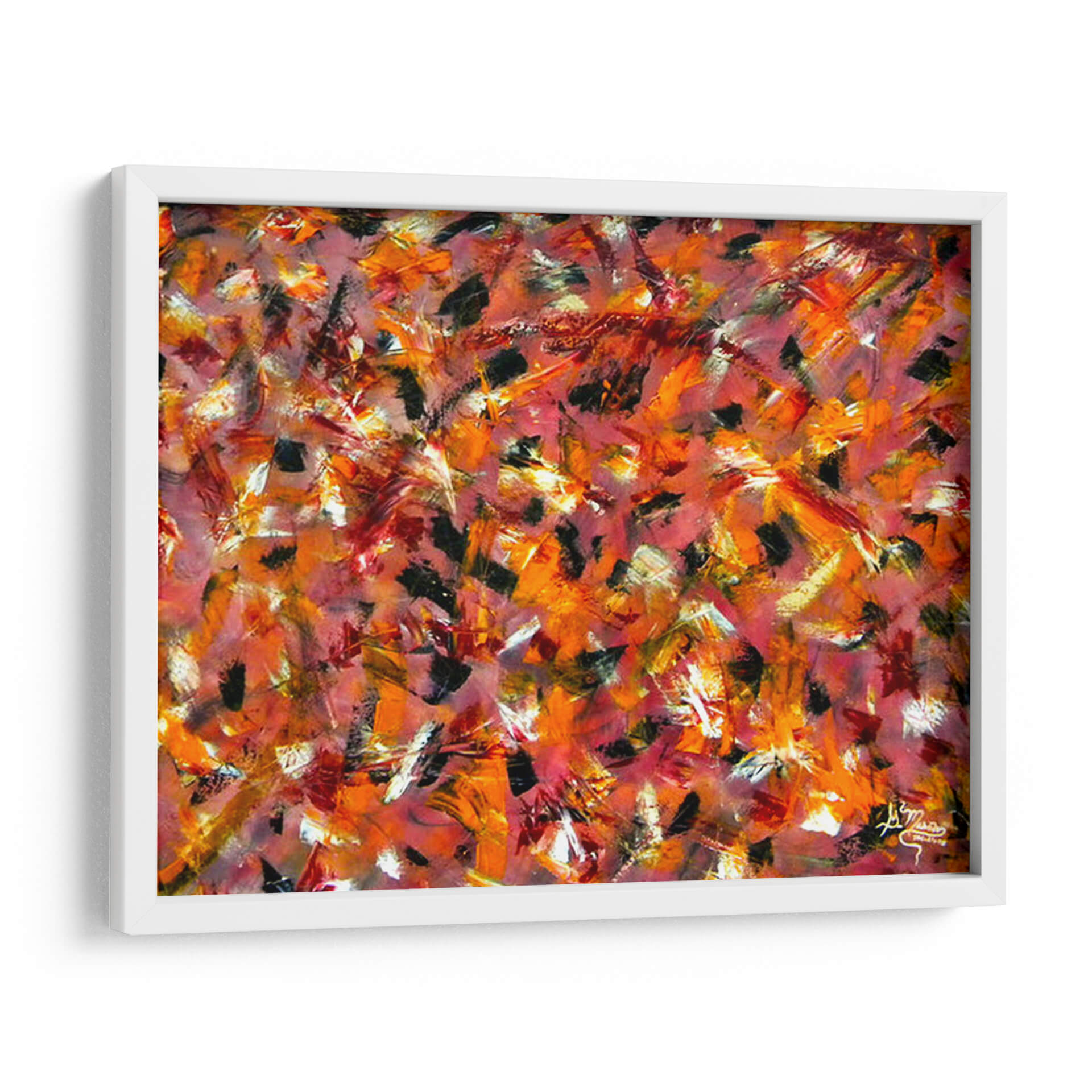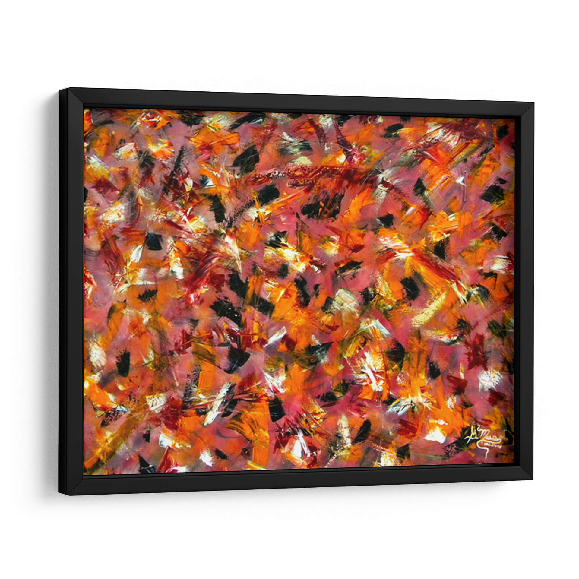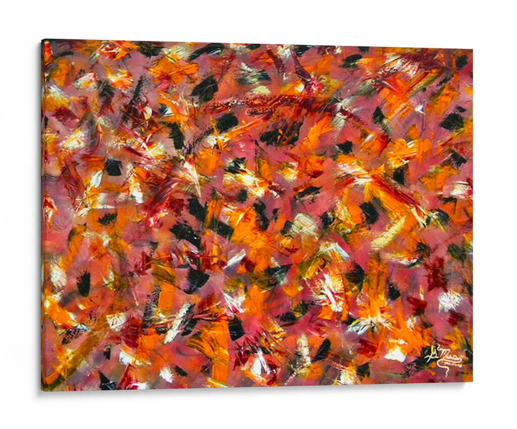 Experimenta la fuerza y la pasión con "Coraje", una obra de arte abstracto vibrante del artista Mason. Este cuadro decorativo es una explosión de energía visual, dominado por pinceladas audaces y una paleta de colores cálidos que evocan un torbellino de emociones. Tonos intensos de rojo, naranja y toques de negro se entrelazan con destellos de blanco y amarillo, creando una composición dinámica que captura la mirada y estimula la imaginación. La técnica expresiva y gestual sugiere movimiento y profundidad, invitando a una interpretación personal y profunda. Ideal para espacios que buscan un punto focal audaz y lleno de carácter, como una sala de estar moderna, un despacho profesional o un recibidor contemporáneo. "Coraje" no es solo una pieza decorativa, sino una declaración de intenciones, perfecta para infundir vitalidad y un espíritu indomable en tu hogar u oficina. Transforma tu ambiente con este impactante cuadro de arte abstracto que habla de fuerza interior y audacia.
