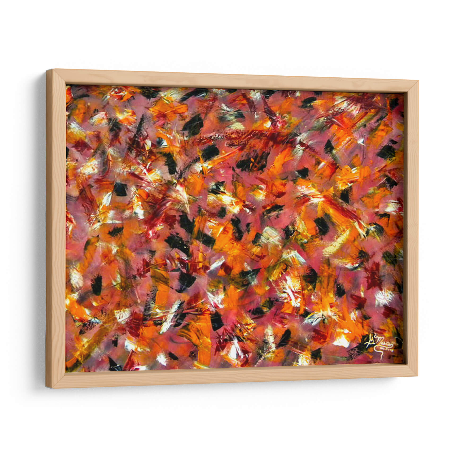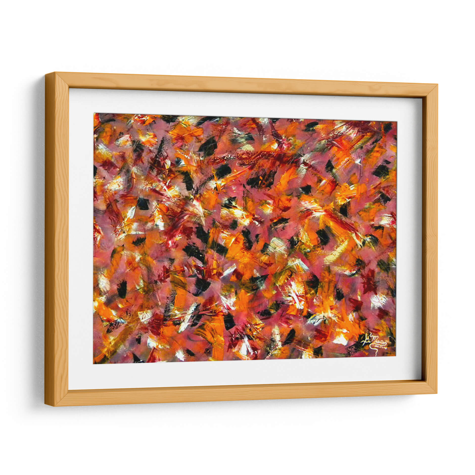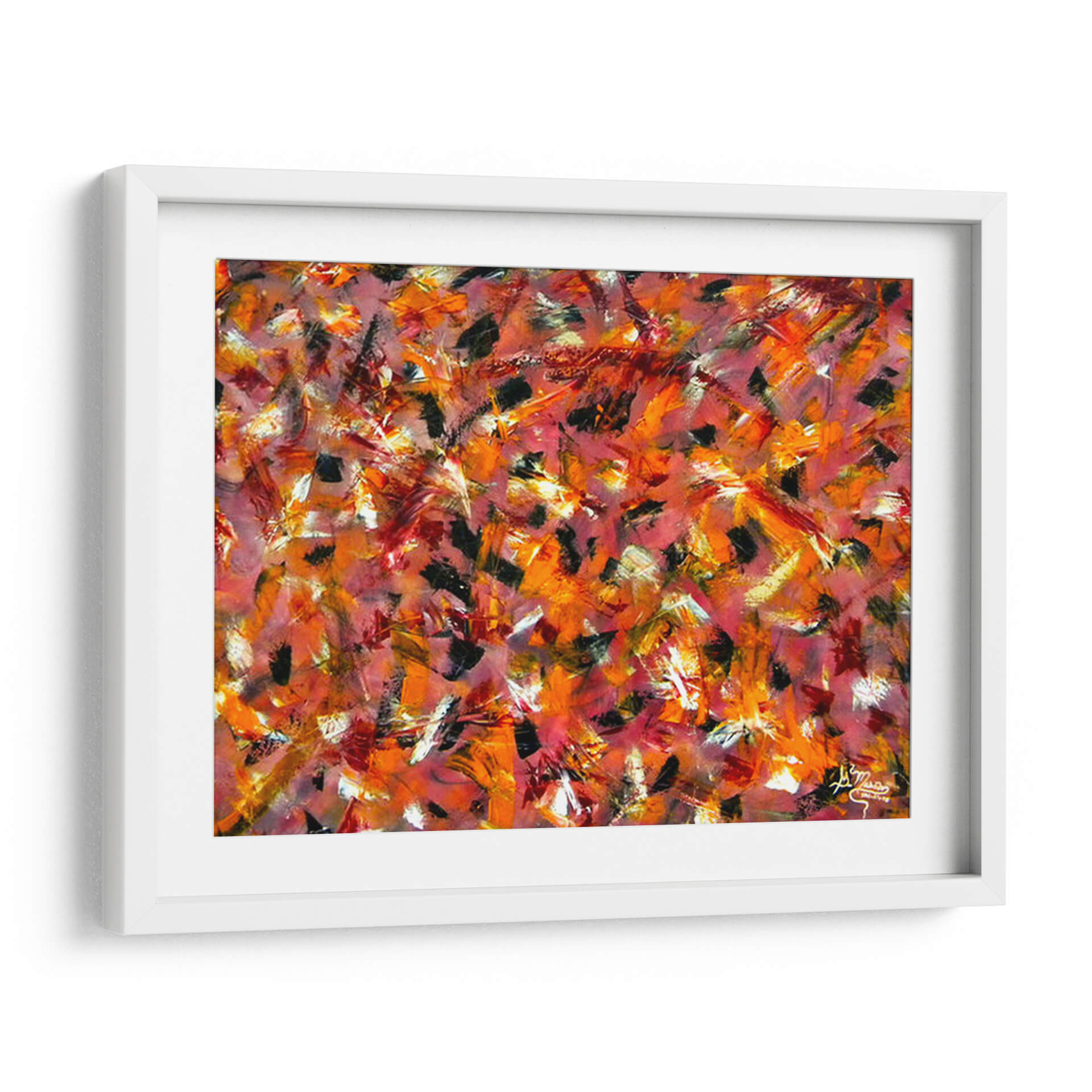 Experimenta la fuerza y la pasión con "Coraje", una obra de arte abstracto vibrante del artista Mason. Este cuadro decorativo es una explosión de energía visual, dominado por pinceladas audaces y una paleta de colores cálidos que evocan un torbellino de emociones. Tonos intensos de rojo, naranja y toques de negro se entrelazan con destellos de blanco y amarillo, creando una composición dinámica que captura la mirada y estimula la imaginación. La técnica expresiva y gestual sugiere movimiento y profundidad, invitando a una interpretación personal y profunda. Ideal para espacios que buscan un punto focal audaz y lleno de carácter, como una sala de estar moderna, un despacho profesional o un recibidor contemporáneo. "Coraje" no es solo una pieza decorativa, sino una declaración de intenciones, perfecta para infundir vitalidad y un espíritu indomable en tu hogar u oficina. Transforma tu ambiente con este impactante cuadro de arte abstracto que habla de fuerza interior y audacia.