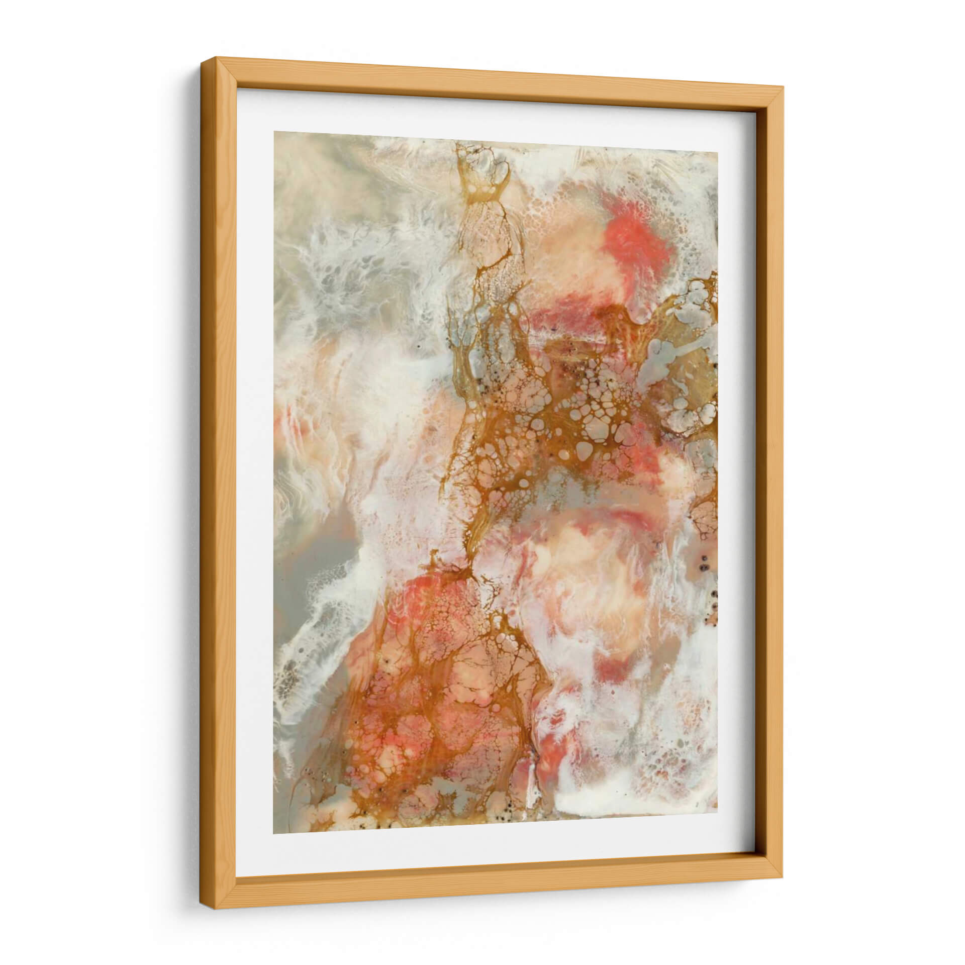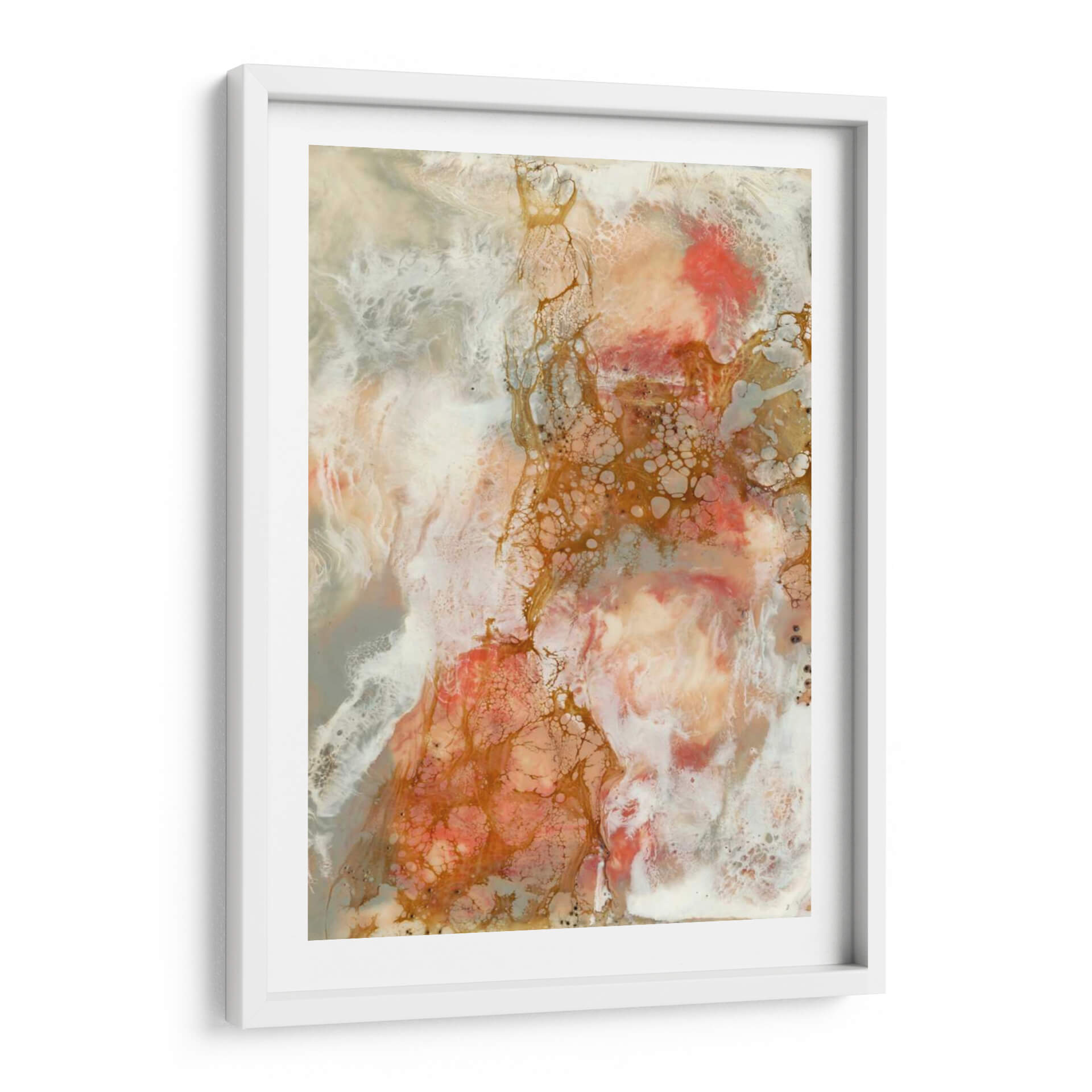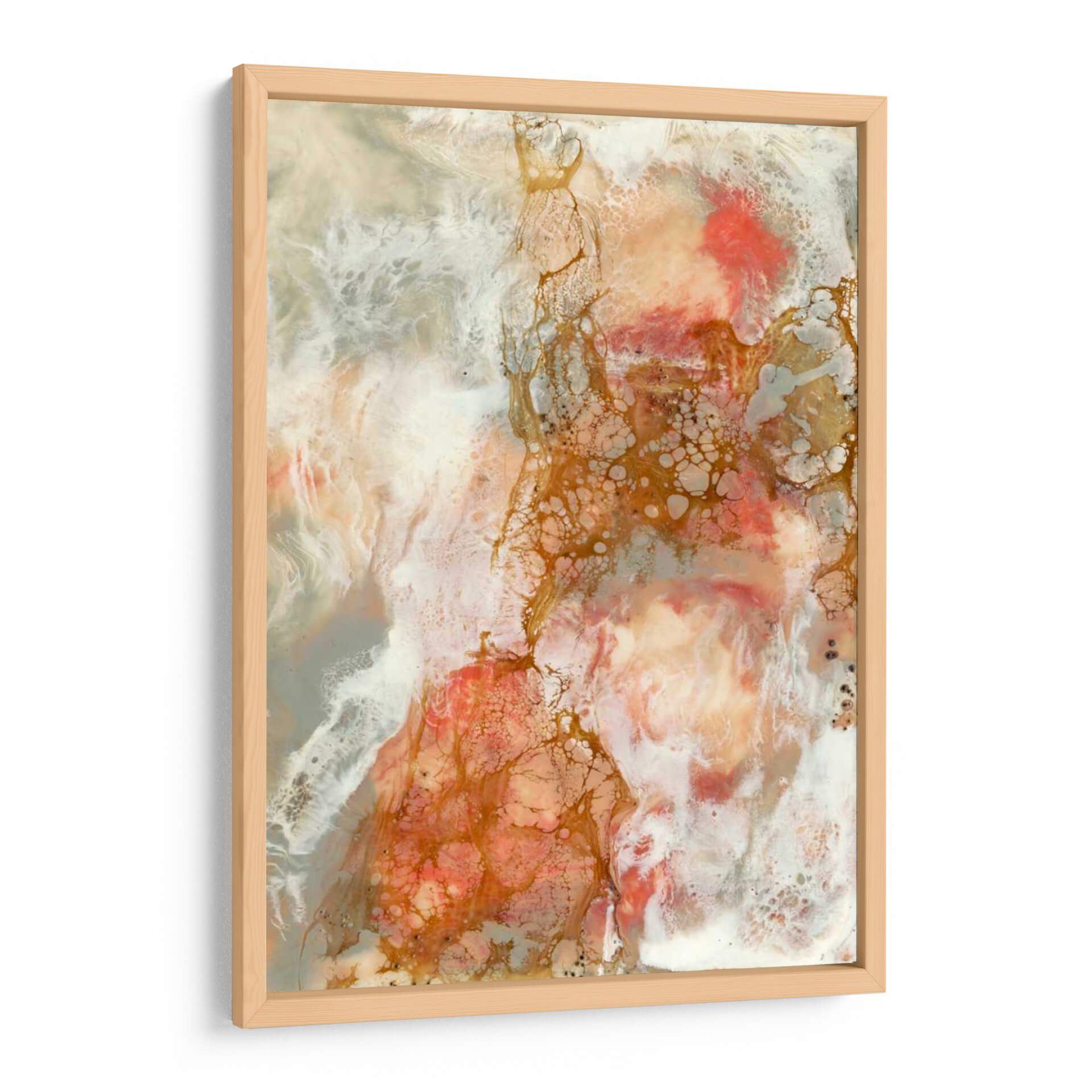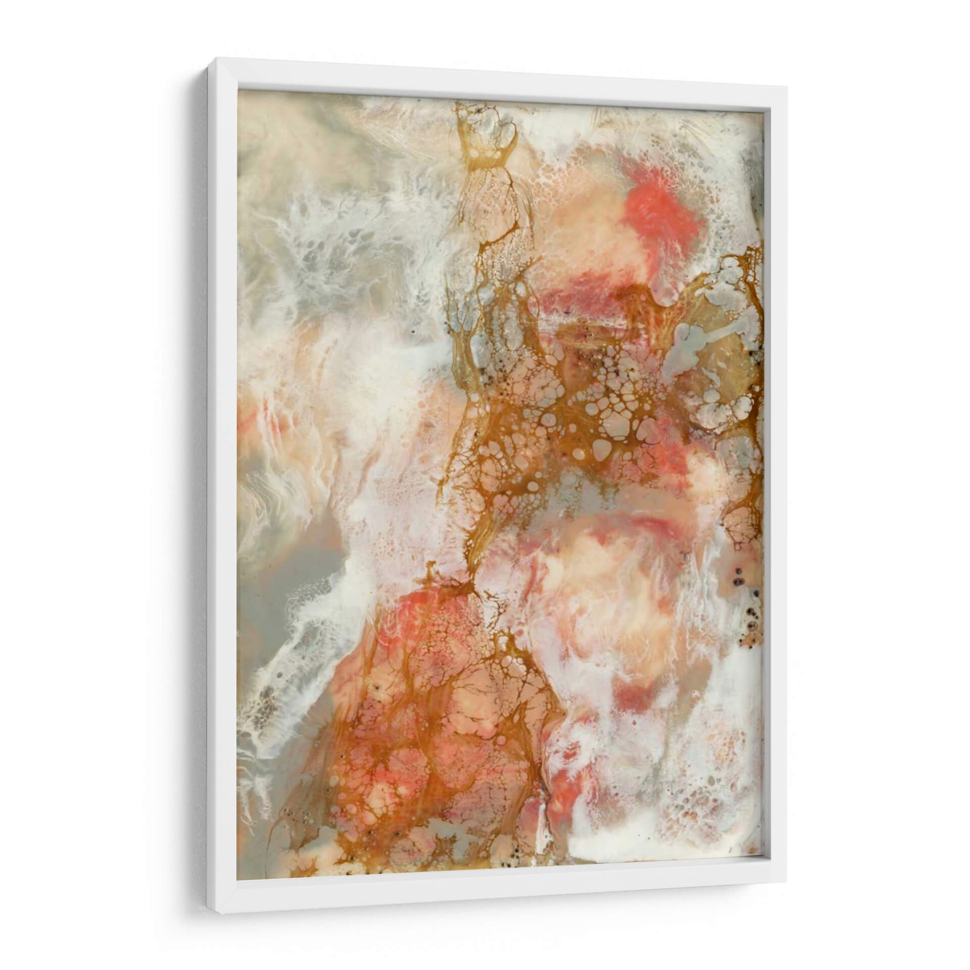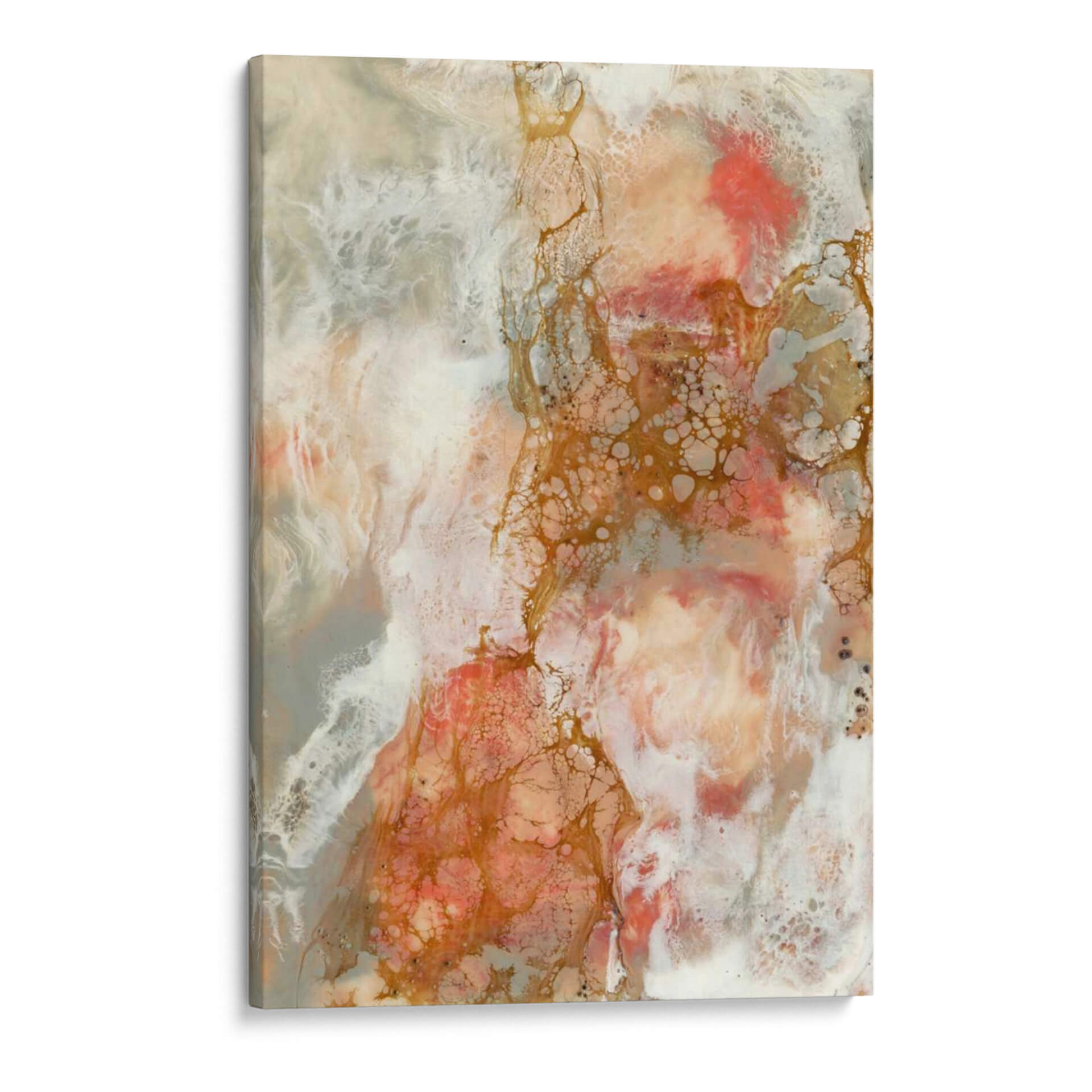 Sumérgete en la delicadeza y el movimiento orgánico de "Coral de Encaje II", una obra maestra abstracta de Jennifer Goldberger que evoca las maravillas del mundo submarino. Esta pieza cautivadora presenta una paleta de colores suave pero impactante, donde los tonos coral y melocotón se entrelazan con blancos etéreos y sutiles acentos dorados. Las texturas ricas y las formas fluidas invitan a la contemplación, creando una sensación de calma y serenidad que transformará cualquier espacio. El estilo abstracto y la composición dinámica hacen de este cuadro decorativo un punto focal impresionante, ideal para añadir un toque de sofisticación naturalista a tu hogar u oficina. Imagina las corrientes marinas cobrando vida en tus paredes, aportando una atmósfera de tranquilidad y belleza etérea. "Coral de Encaje II" no es solo arte, es una invitación a la relajación y a la conexión con la naturaleza.