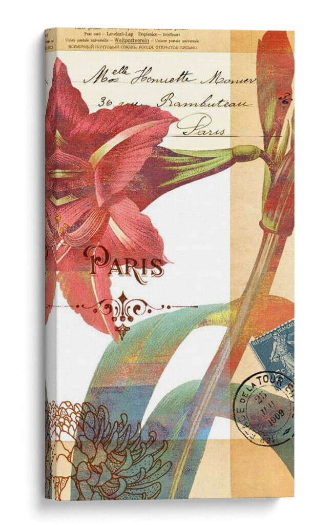 Embellezca su espacio con "Coronando Gloria III", una obra de arte digital que evoca la elegancia del París de antaño. Este cuadro decorativo fusiona una vibrante amaryllis roja con elementos de ephemera postal, creando una composición nostálgica y sofisticada. Los tonos cálidos y terrosos del fondo, junto con los verdes frescos de las hojas, complementan la intensidad del rojo de la flor principal, generando un equilibrio visual cautivador. La textura superpuesta de cartas manuscritas y sellos postales añade una dimensión de historia y autenticidad, transportando al espectador a una época de correspondencia íntima y belleza botánica. El estilo collage digital, con su mezcla de elementos gráficos y florales, otorga a esta pieza una modernidad que contrasta maravillosamente con su inspiración vintage. "Coronando Gloria III" es ideal para añadir un toque de romanticismo y refinamiento a salones, estudios u oficinas, sirviendo como un punto focal que inspira conversaciones y admiración. Su diseño versátil la hace perfecta para complementar decoraciones clásicas, shabby chic o incluso eclécticas, aportando un aire de distinción atemporal. Descubra la fusión de arte, historia y naturaleza en esta pieza única.