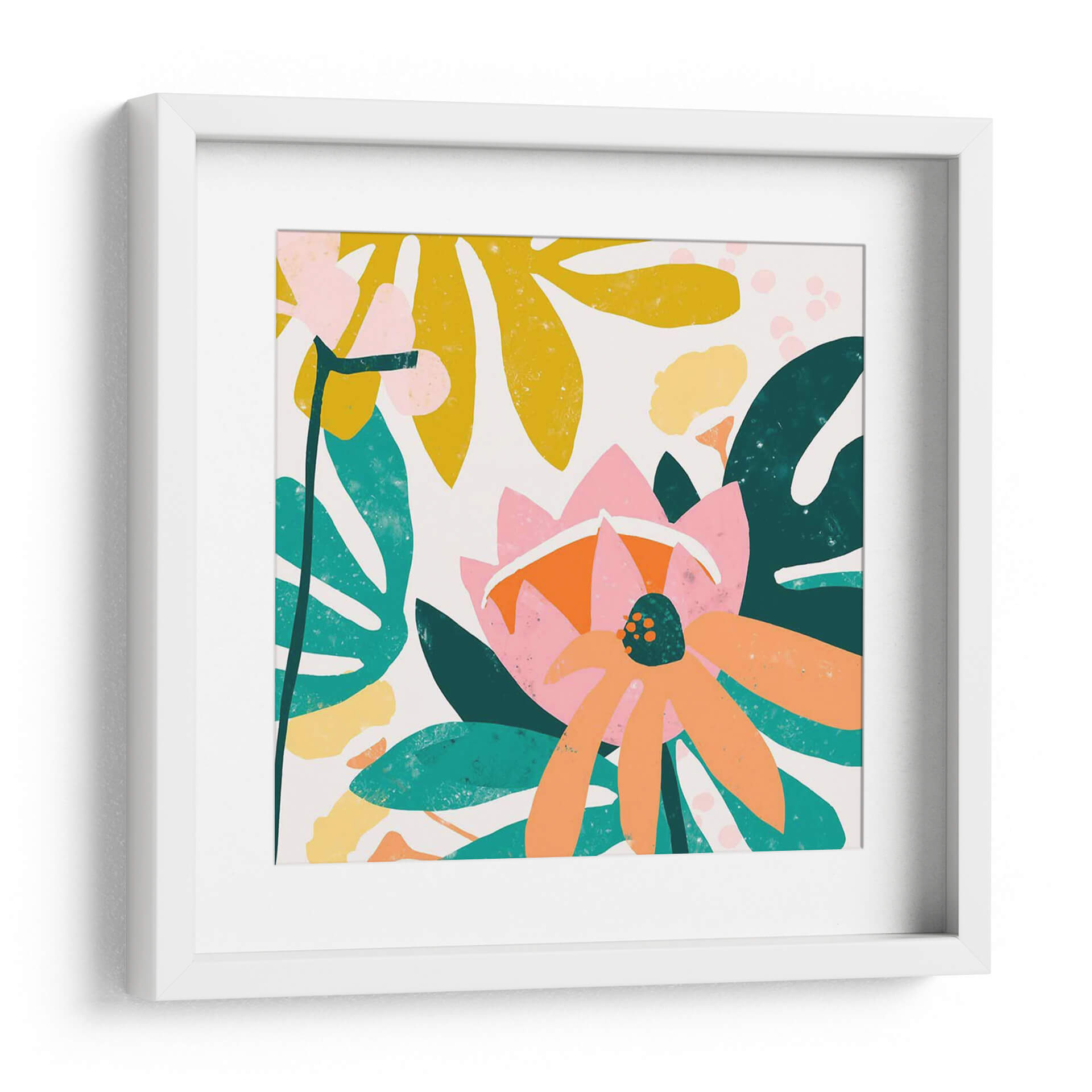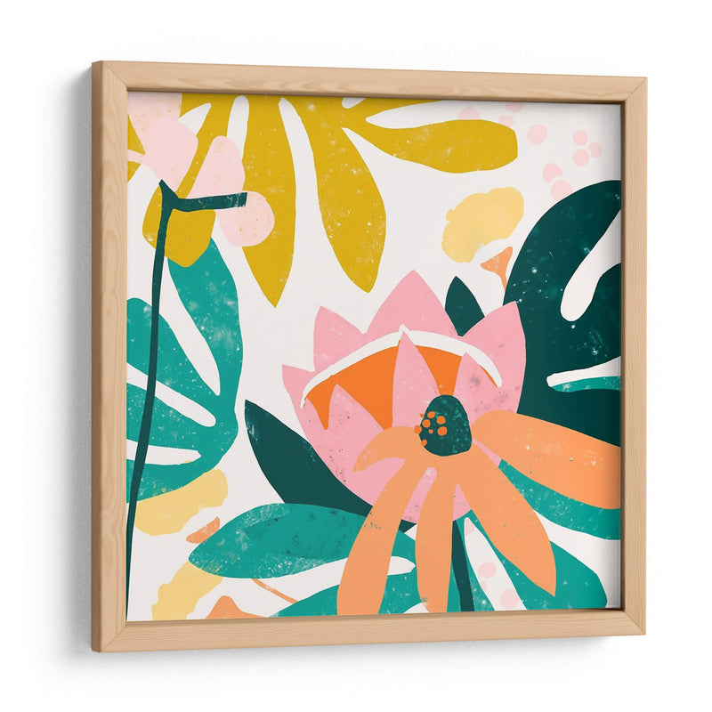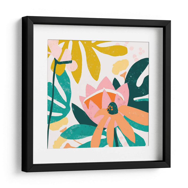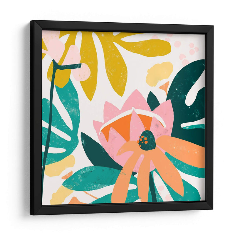 Sumérgete en la vibrante explosión floral de "Corte Papel Jardín III" de June Erica Vess. Esta obra de arte contemporáneo captura la esencia de un jardín exuberante con un estilo audaz y abstracto. Las formas orgánicas y las siluetas de hojas y flores se entrelazan en una composición dinámica, dominada por una paleta de colores vivos que incluye rosas intensos, naranjas cálidos, amarillos alegres y verdes profundos, todo sobre un fondo claro y luminoso. La textura visual, lograda a través de trazos y superposiciones de color, evoca la técnica del corte de papel, aportando un aire artesanal y moderno a la pieza. "Corte Papel Jardín III" es ideal para quienes buscan infundir alegría y vitalidad en sus espacios, ya sea un salón moderno, un comedor luminoso o una oficina creativa. Su diseño audaz y su energía positiva lo convierten en un punto focal cautivador que celebra la belleza de la naturaleza con una perspectiva fresca y artística. Transforma tu hogar u oficina en un oasis de color y diseño con este cuadro decorativo único.