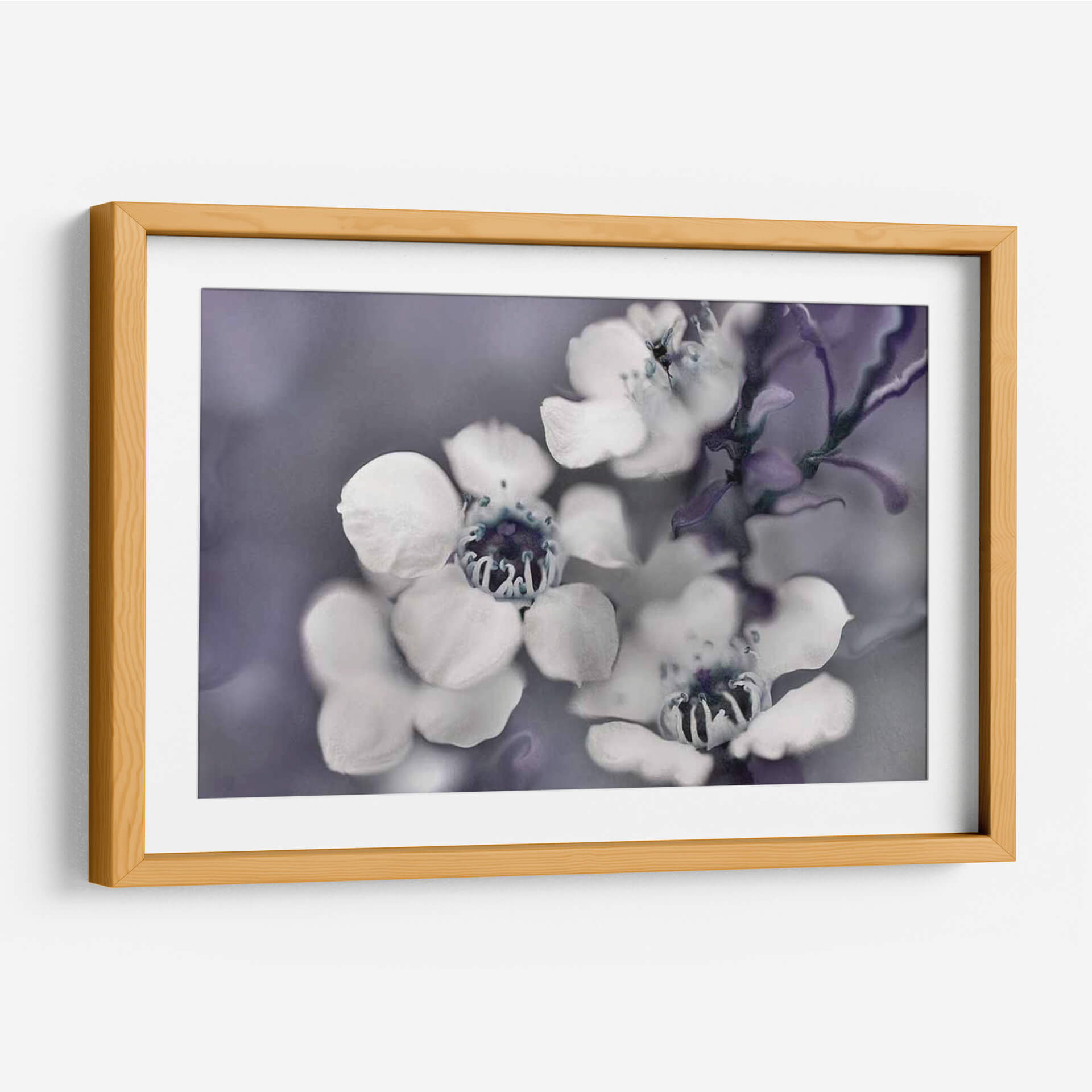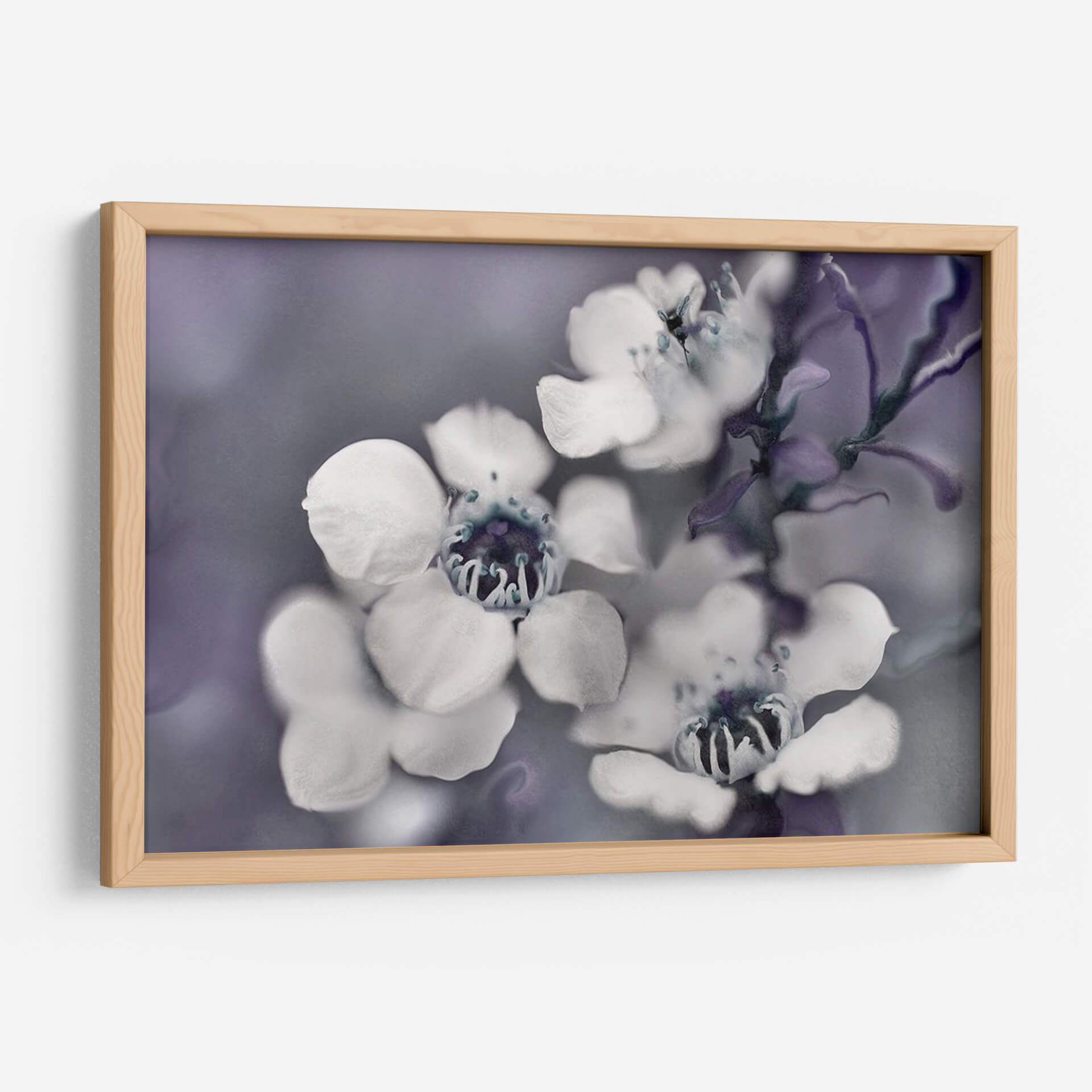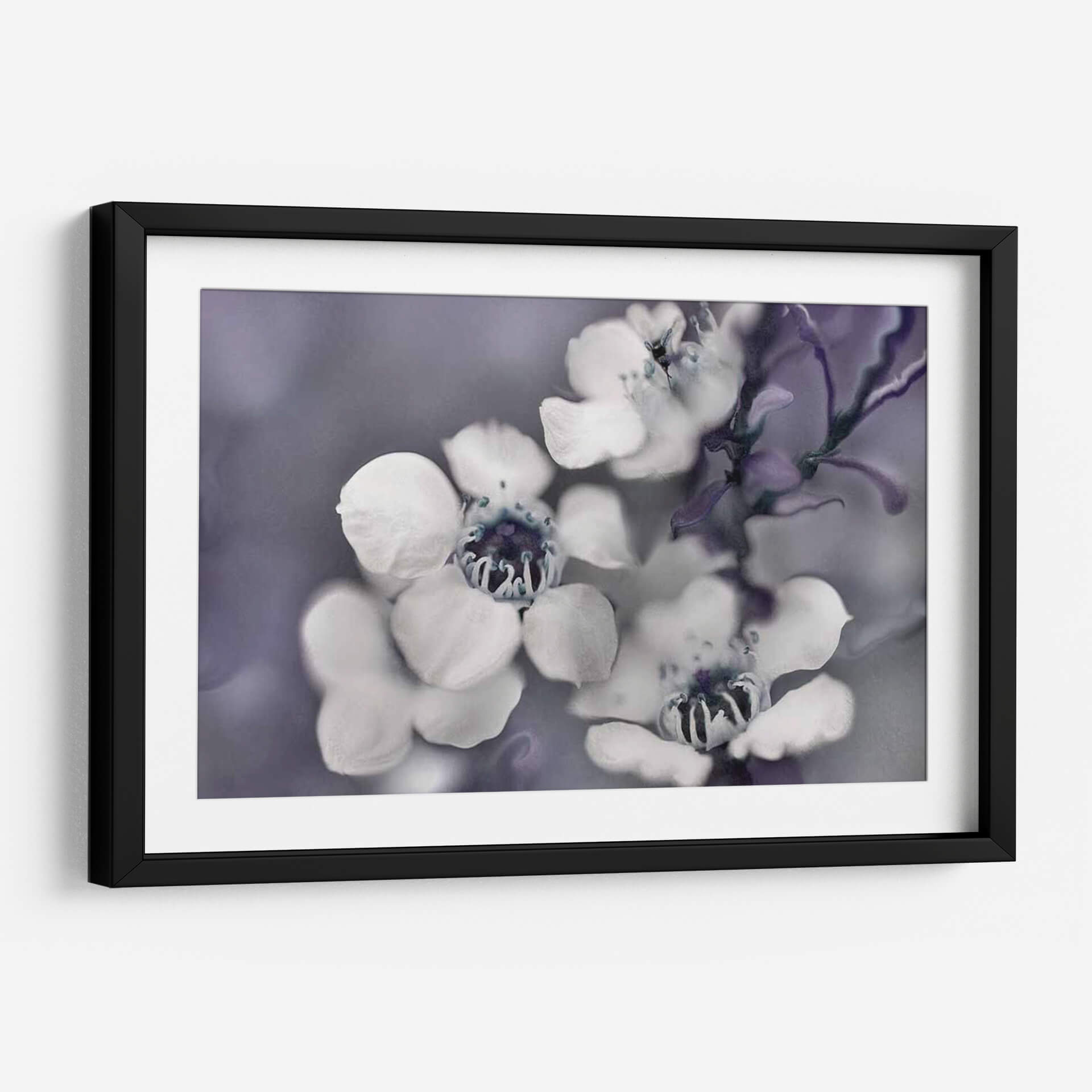 Sumérgete en la delicadeza etérea de "Cuentos de una Glen II Encantada", una obra maestra floral que captura la esencia efímera de la naturaleza. Este cuadro decorativo presenta un primer plano íntimo de flores delicadas, con pétalos blancos que contrastan suavemente contra un fondo de tonos grises y púrpuras apagados. La composición se centra en la belleza intrincada de los centros de las flores, con detalles en azul profundo que añaden un toque de misterio. El estilo fotográfico, con un enfoque suave y una atmósfera de ensueño, evoca una sensación de calma y serenidad, ideal para crear un oasis de paz en tu hogar u oficina. Las sutiles variaciones de color y la textura sutil invitan a la contemplación, haciendo de esta pieza un punto focal sereno para cualquier espacio. Perfecta para quienes buscan añadir un toque de elegancia natural y un aire de misterio encantador a su decoración.