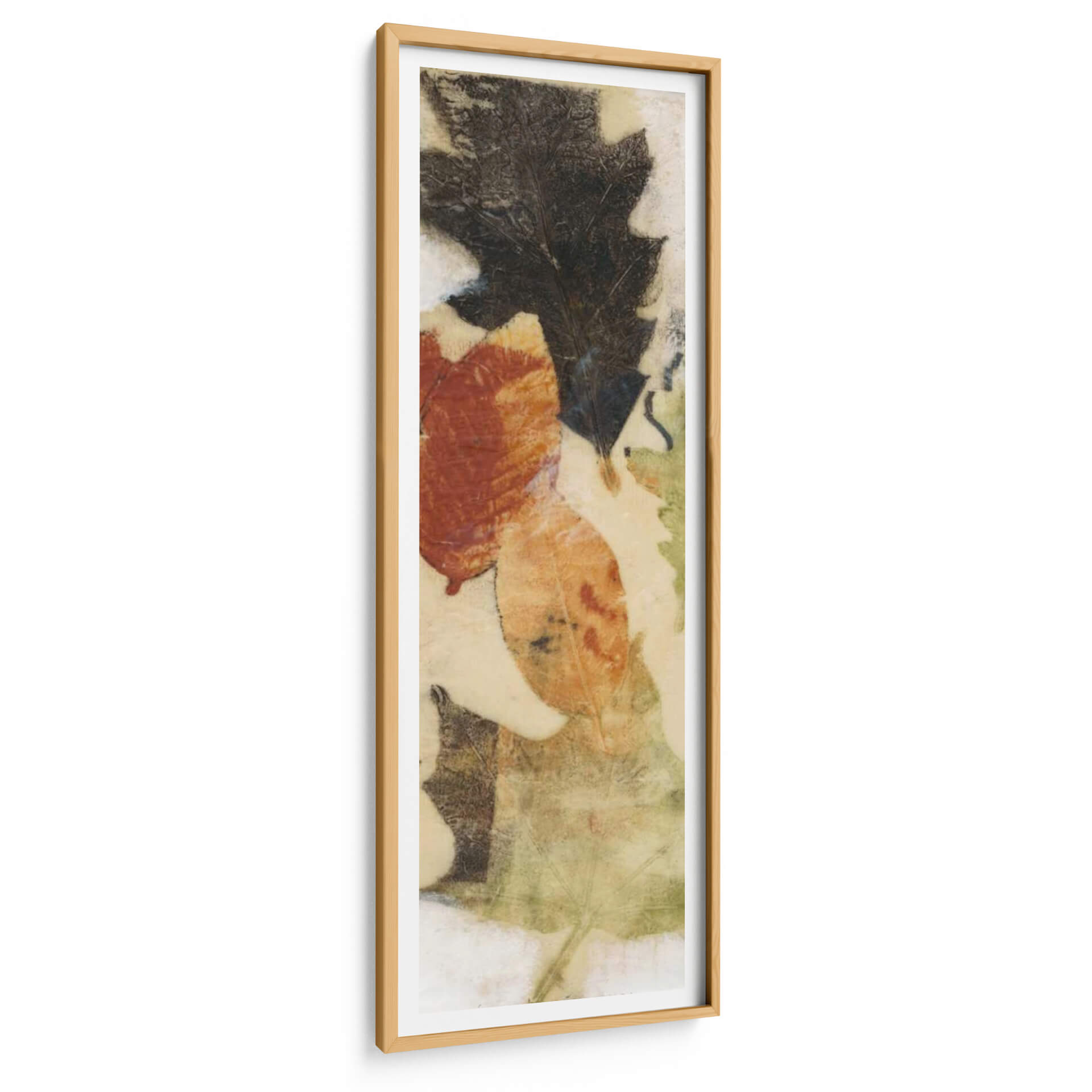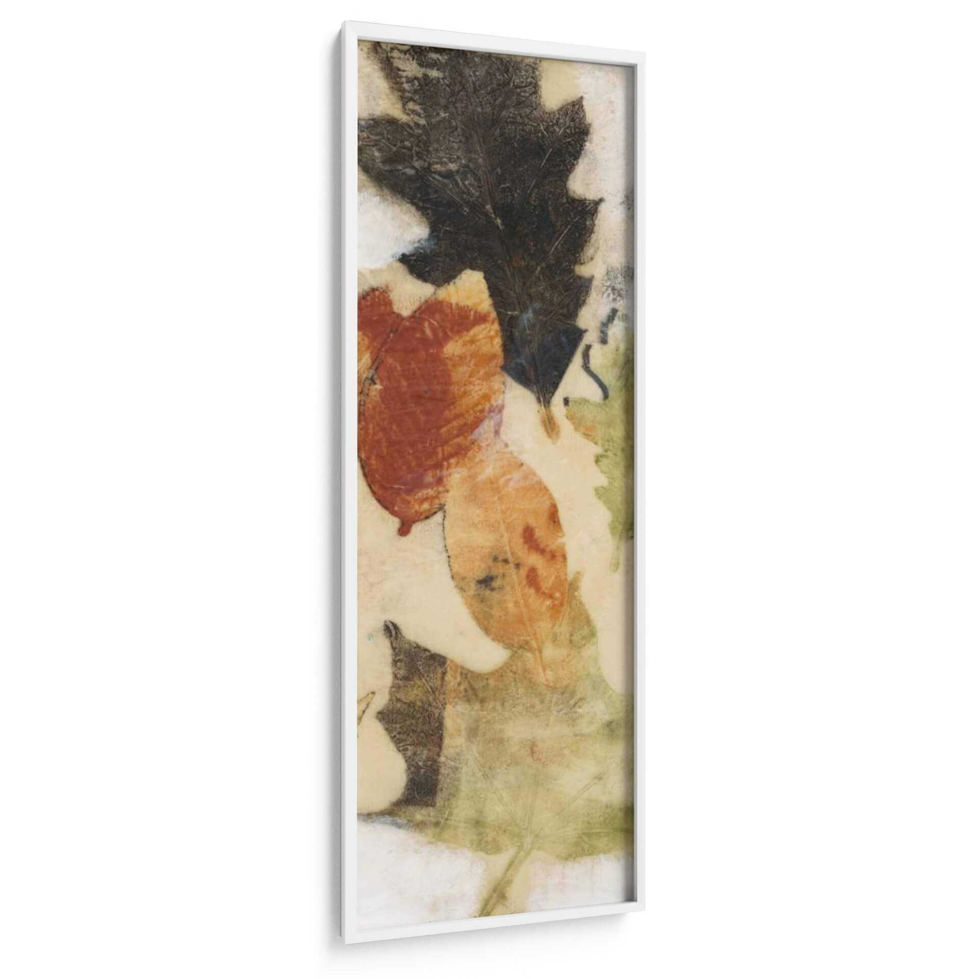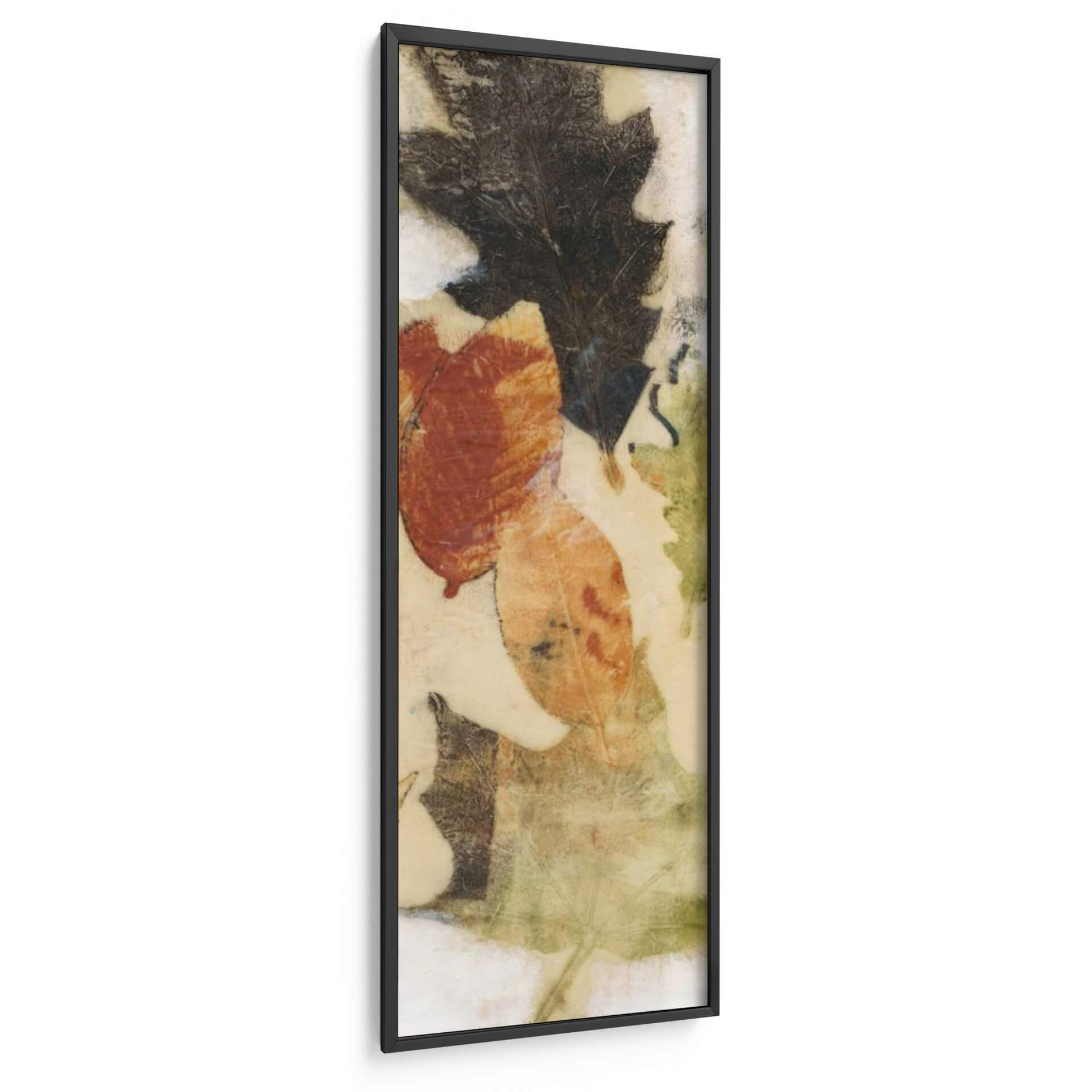 Sumérgete en la delicadeza de la naturaleza con "Danza de la Hoja IV", una obra de arte decorativo de Jennifer Goldberger. Este cuadro abstracto captura la esencia efímera de las hojas otoñales a través de una paleta de colores cálidos y terrosos, con toques de óxido, verde musgo y marrones profundos. La composición vertical, con superposiciones texturizadas y un estilo evocador, invita a la contemplación y aporta una sensación de calma y conexión con el ciclo natural. Las formas orgánicas y las sutiles variaciones de tono crean una profundidad visual intrigante, haciendo de esta pieza un elemento decorativo versátil. Es ideal para añadir un toque de sofisticación y serenidad a cualquier espacio, desde una sala de estar moderna hasta un acogedor rincón de lectura o una oficina que busque inspiración. Este cuadro decorativo es perfecto para quienes aprecian la belleza sutil de la botánica y el arte contemporáneo, transformando tu hogar u oficina en un santuario de estilo y tranquilidad.