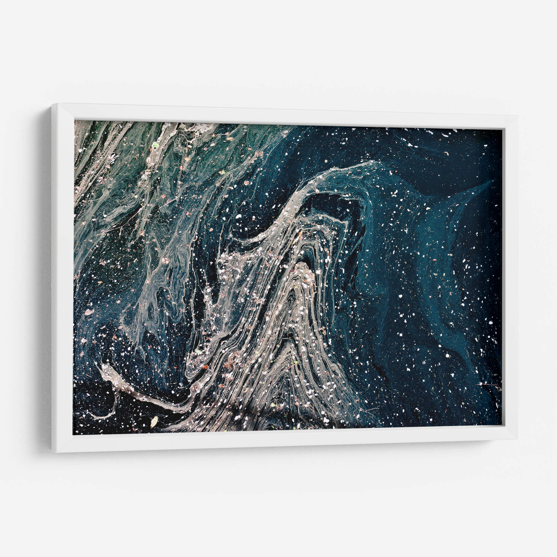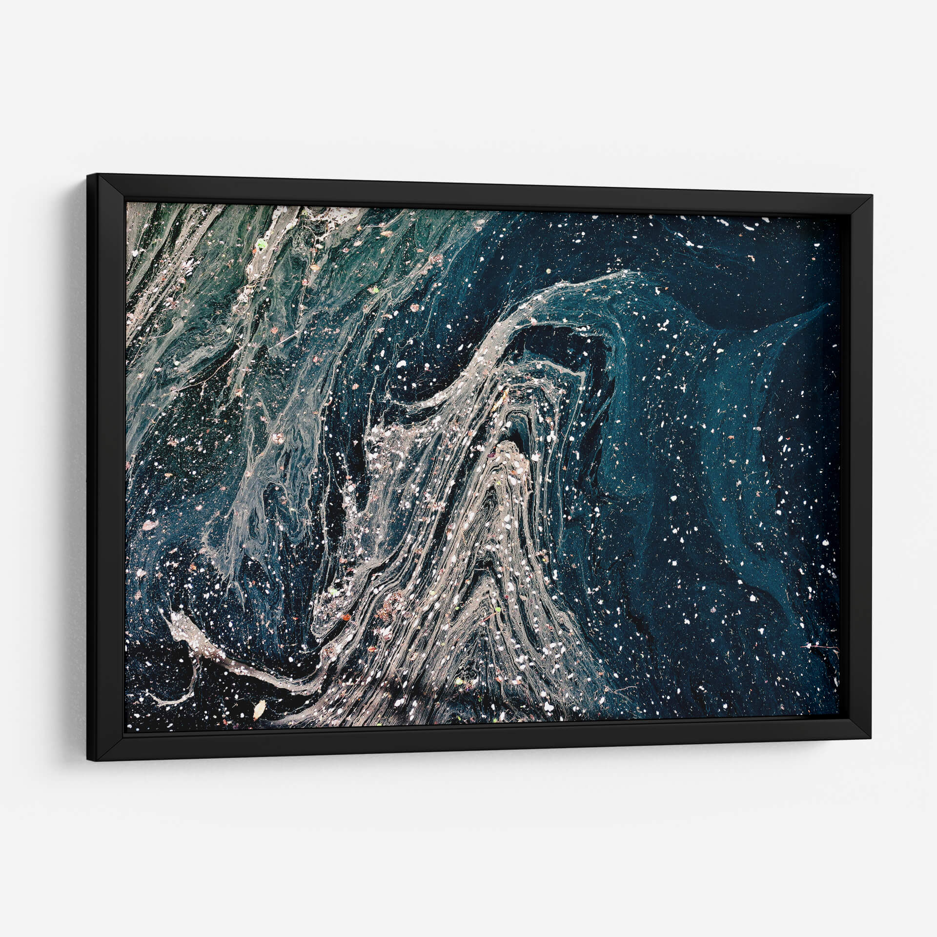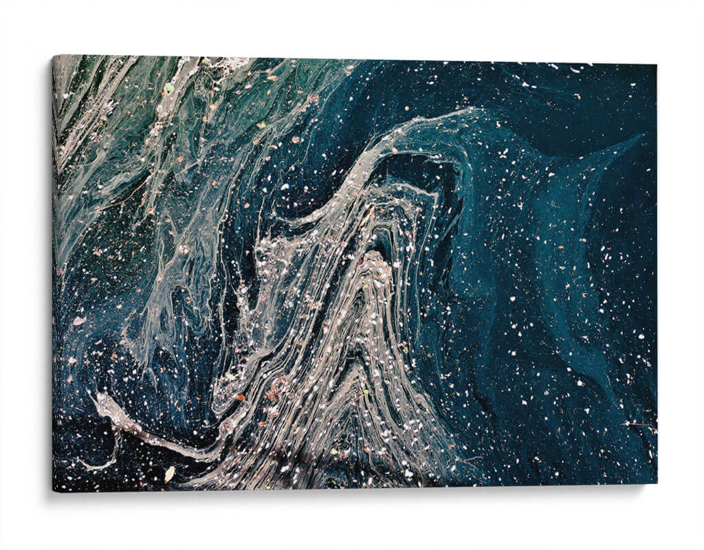 Sumérgete en la profundidad del océano o la vastedad del cosmos con "Destellos sobre el azul", una obra de arte abstracta que cautiva la imaginación. Esta pieza evoca la majestuosidad de las nebulosas espaciales o las corrientes marinas profundas, con un juego dinámico de texturas y tonalidades. El azul profundo domina la composición, salpicado por intrincadas vetas blancas y grises que simulan remolinos o el reflejo de la luz estelar. Pequeños puntos brillantes, como estrellas distantes o plancton luminoso, añaden un toque de magia y misterio. Ideal para espacios que buscan un toque de sofisticación y contemplación, como salas de estar modernas, oficinas ejecutivas o dormitorios serenos. Su naturaleza abstracta permite que dialogue con diversos estilos decorativos, desde el contemporáneo hasta el minimalista, aportando un elemento de intriga y belleza etérea. Este cuadro decorativo es una invitación a perderse en sus detalles y encontrar nuevas interpretaciones en cada mirada, transformando cualquier pared en una ventana a lo desconocido y lo sublime. Una elección perfecta para quienes aprecian el arte contemporáneo con un toque de profundidad emocional y visual.