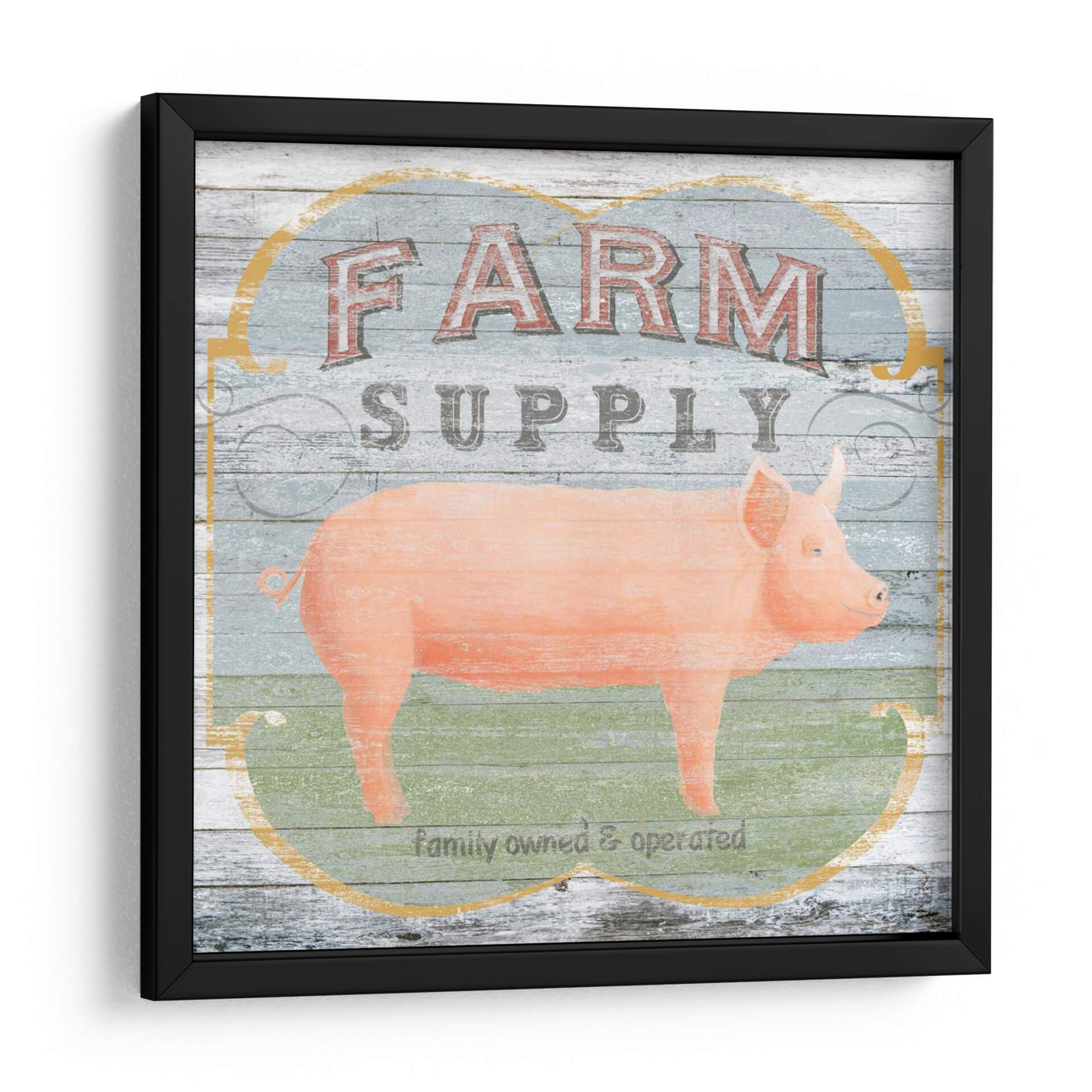 Aporta un toque rústico y encantador a tu hogar con este cuadro decorativo "Día De La Nieve Ii" de June Erica Vess. La obra presenta una ilustración estilizada de un cerdo en tonos coral vibrantes, destacándose sobre un fondo que evoca tablones de madera desgastada en tonos grises y azules, con detalles en verde que simulan pasto. Un semicírculo amarillo y un óvalo azul pálido enmarcan la escena, con el texto "FARM SUPPLY" en letras vintage y "family owned & operated" en la parte inferior, añadiendo un aire nostálgico y auténtico. Este cuadro es perfecto para cocinas, comedores o cualquier espacio donde se desee infundir calidez y un estilo campestre o de granja. Su composición sencilla pero llamativa lo convierte en un punto focal ideal para salas de estar rústicas o rústico-modernas. Ideal para amantes de la vida rural y la decoración con personalidad.
