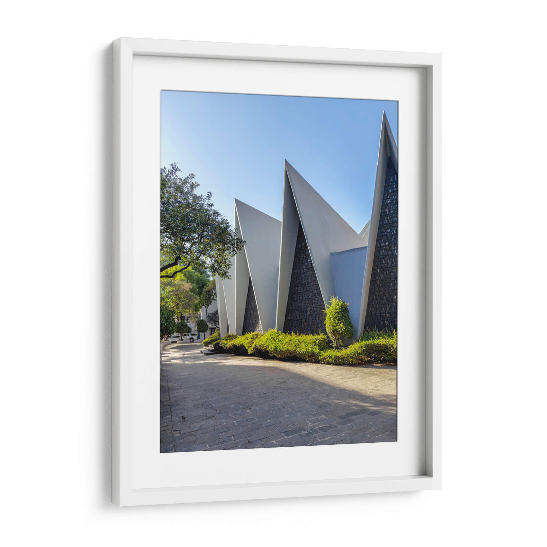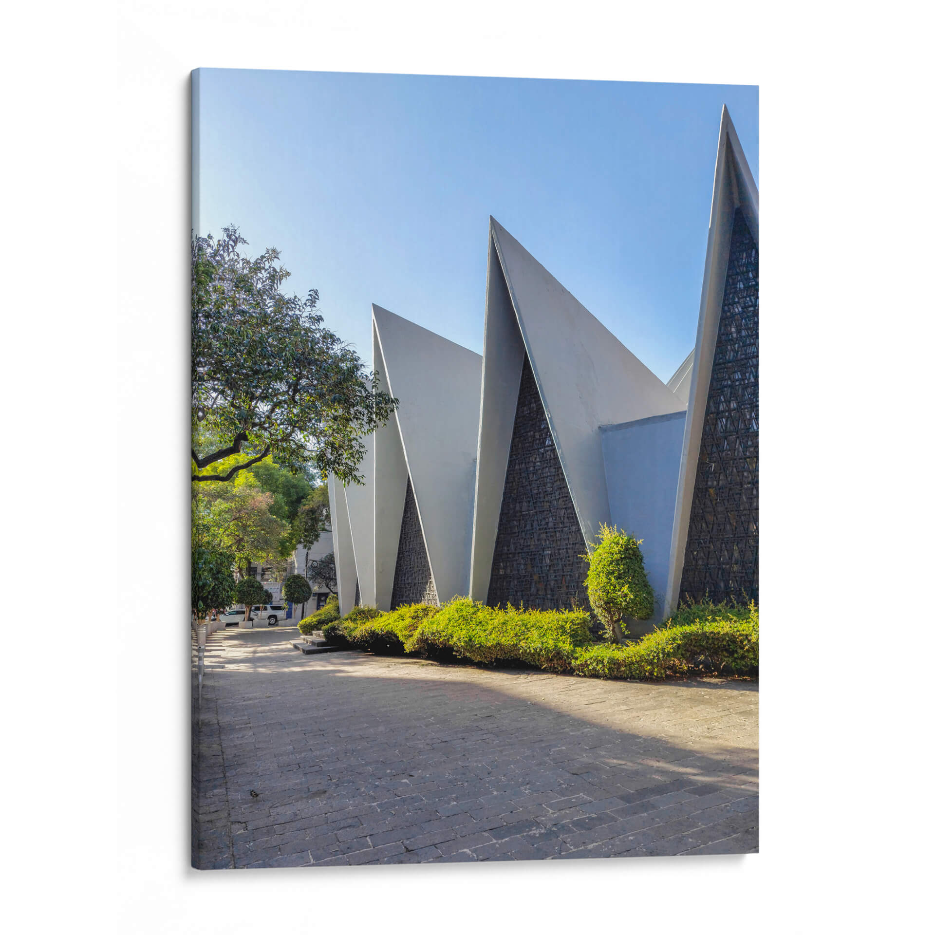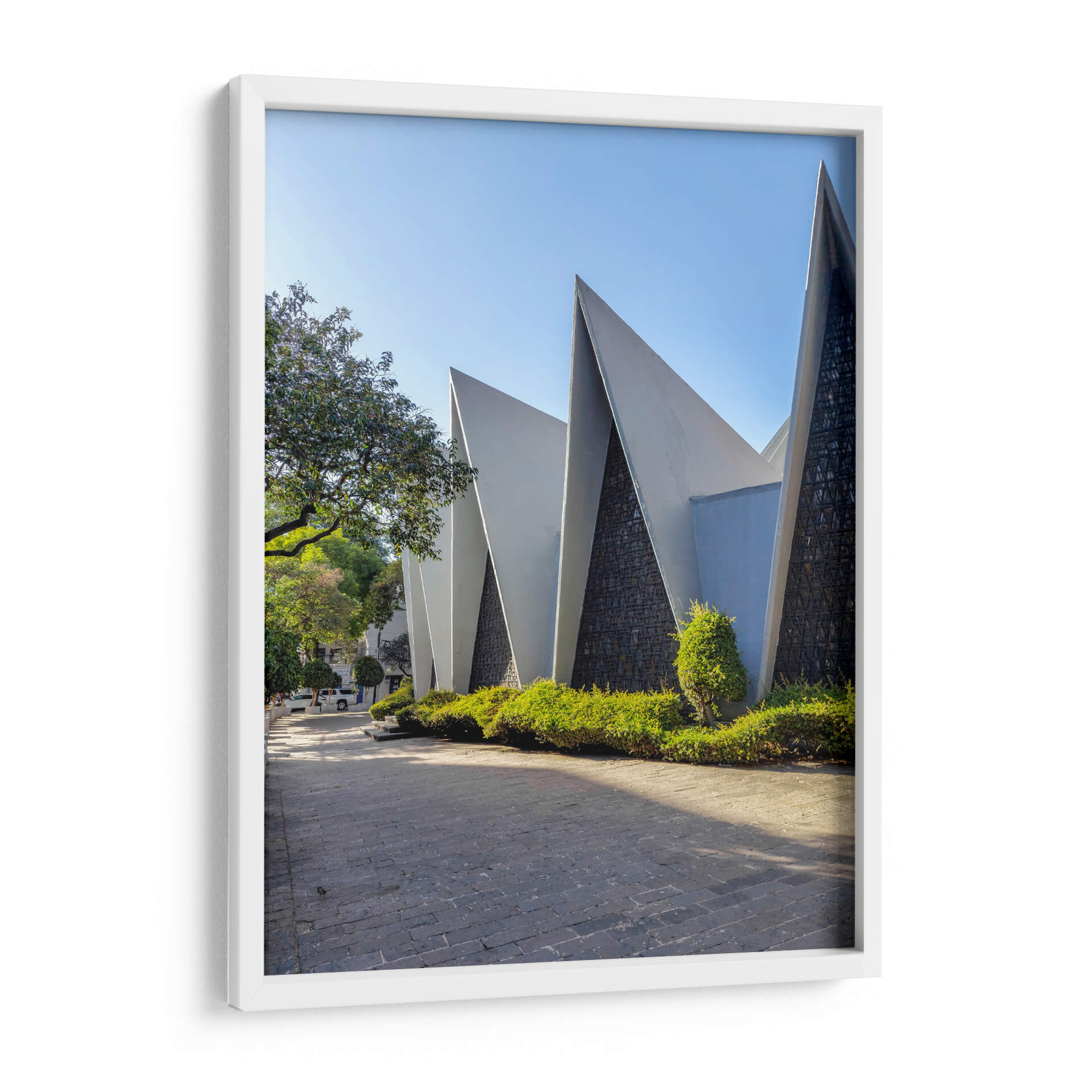 Sumérgete en la arquitectura moderna y la serenidad urbana con "Divina Providencia II" de Bernardo Miranda. Este cuadro decorativo captura la majestuosidad de una estructura arquitectónica con líneas agudas y geométricas, contrastando con la suavidad de la vegetación circundante y el cielo despejado. La paleta de colores, dominada por grises neutros, blancos puros y el azul vibrante del cielo, crea una atmósfera de calma y sofisticación. Las texturas ricas de la fachada, que incluyen detalles en piedra y superficies lisas, añaden profundidad y un interés visual cautivador. Ideal para espacios que buscan un toque de elegancia contemporánea y un punto focal inspirador, esta obra es perfecta para salones modernos, oficinas de diseño o cualquier ambiente que valore la estética vanguardista. "Divina Providencia II" no es solo una imagen, es una invitación a contemplar la armonía entre la forma y el entorno, añadiendo carácter y una sensación de orden a tu decoración.
