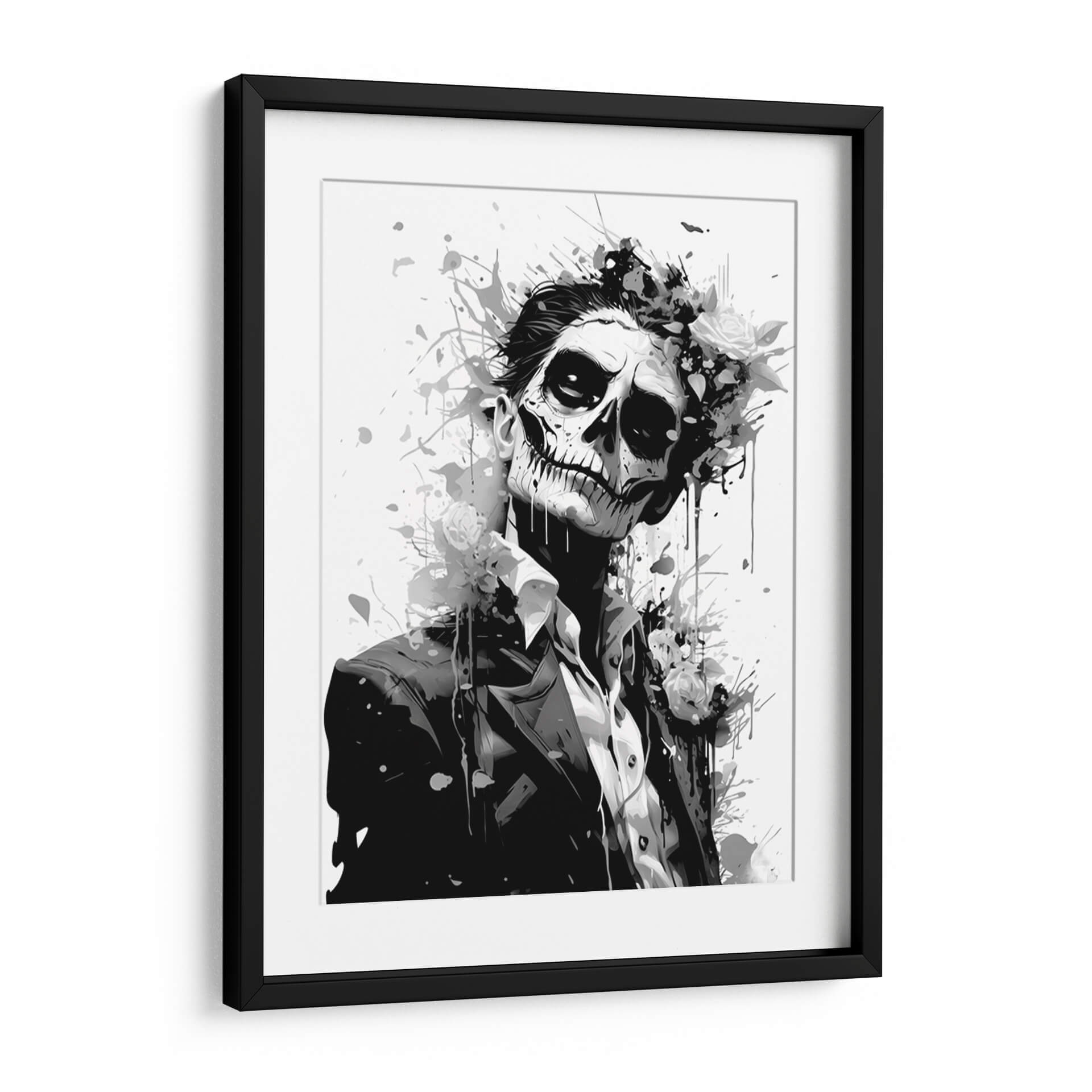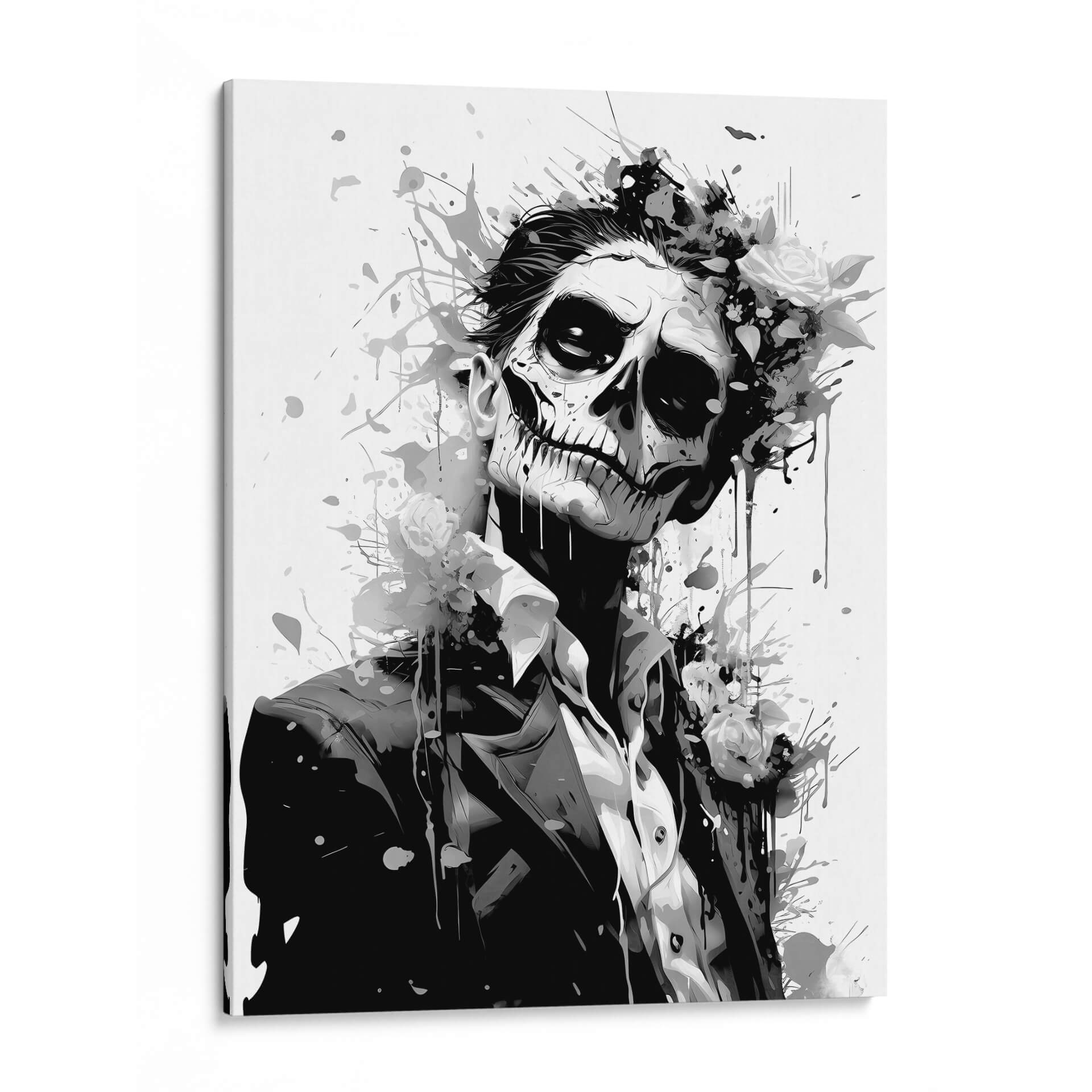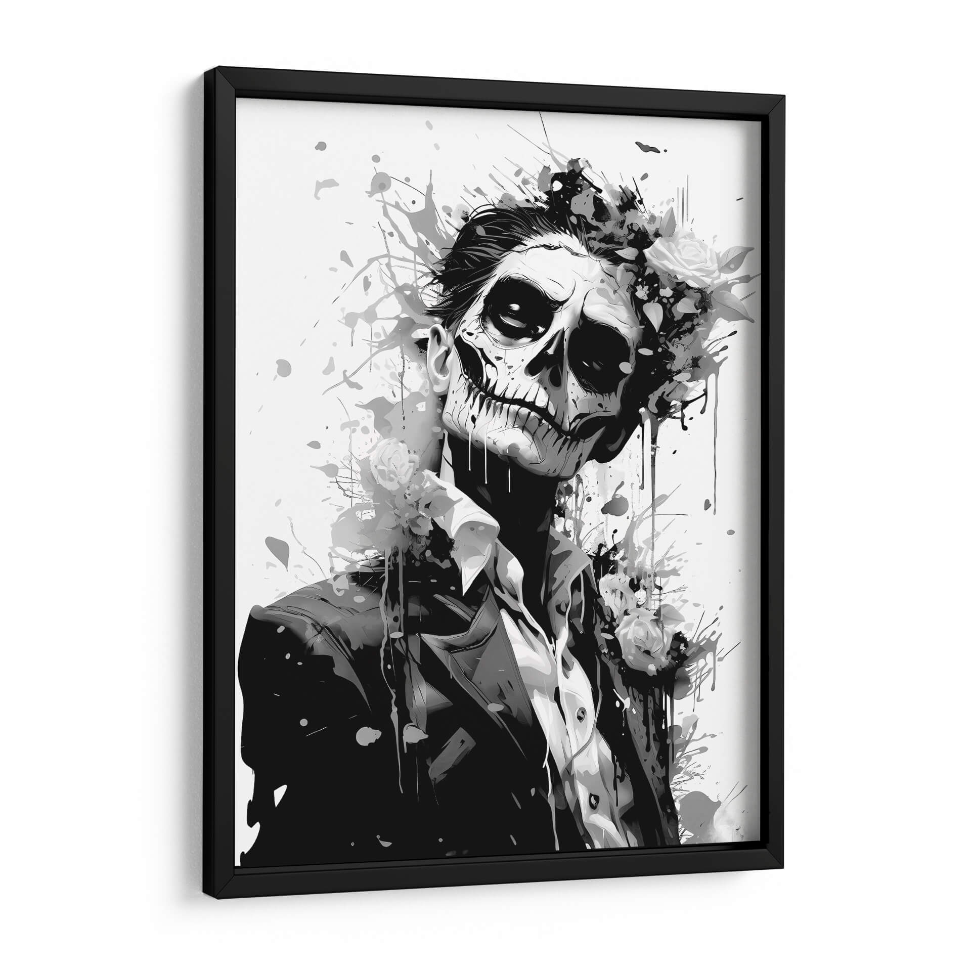 Sumérgete en la enigmática celebración del Día de Muertos con "El Catrín - Día de Muertos - 5", una obra de arte digital que desafía las convenciones. Este cuadro decorativo captura la esencia de la tradición mexicana con un giro contemporáneo y audaz. La pieza presenta una figura masculina estilizada con rasgos de calavera, adornada con delicadas flores y salpicaduras de tinta que evocan tanto la elegancia como la efímera naturaleza de la vida. La paleta monocromática en blanco, negro y grises crea una atmósfera dramática y sofisticada, permitiendo que los detalles de la composición resalten con una intensidad cautivadora. El estilo, que fusiona elementos realistas con una ejecución abstracta y expresiva, otorga a la obra una profundidad única. "El Catrín" es ideal para espacios que buscan un toque de carácter y un diálogo visual intrigante, como salas de estar modernas, estudios o incluso espacios comerciales que deseen proyectar una imagen vanguardista. Su impacto visual lo convierte en un punto focal garantizado, invitando a la reflexión sobre la dualidad entre la vida y la muerte, la belleza y lo macabro. Añade una pieza de arte que trasciende lo ordinario y celebra la rica herencia cultural con un diseño impactante.